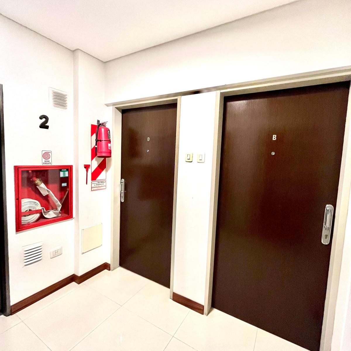 Studio apartment on the 2nd floor, courtyard-facing (north orientation), with a combined living-sleeping area of 6.80 x 3 m. It includes 2 built-in wardrobes, cold/heat air-conditioning, an integrated electric kitchen, and a full bathroom with a bathtub. There is a balcony. Covered area is 27.21 m², semi-covered area is 2.13 m², for a total of 29.34 m². The building is suitable for professional use, 11 years old, with 6 floors, 4 units per floor, 1 elevator, a covered BBQ area, a small pool, sol