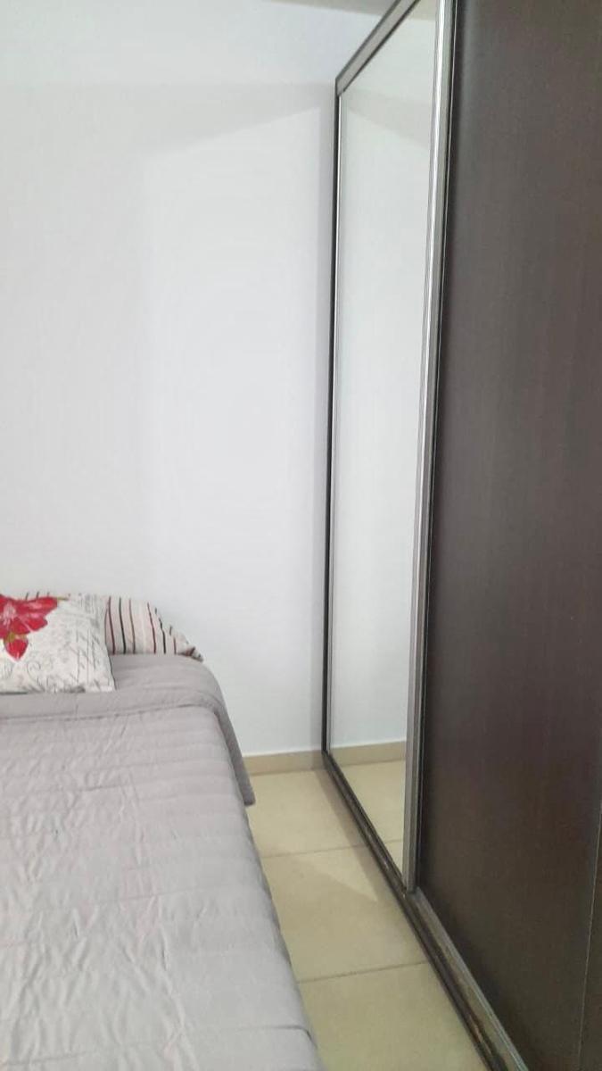 Studio apartment available from mid-April. Fully equipped with an electric hotplate, electric oven, and fridge with freezer, plus a TV, a table with three chairs, and a desk. Full bathroom; the building has a laundry room and a pool. Building fees and utilities are paid by the tenant.