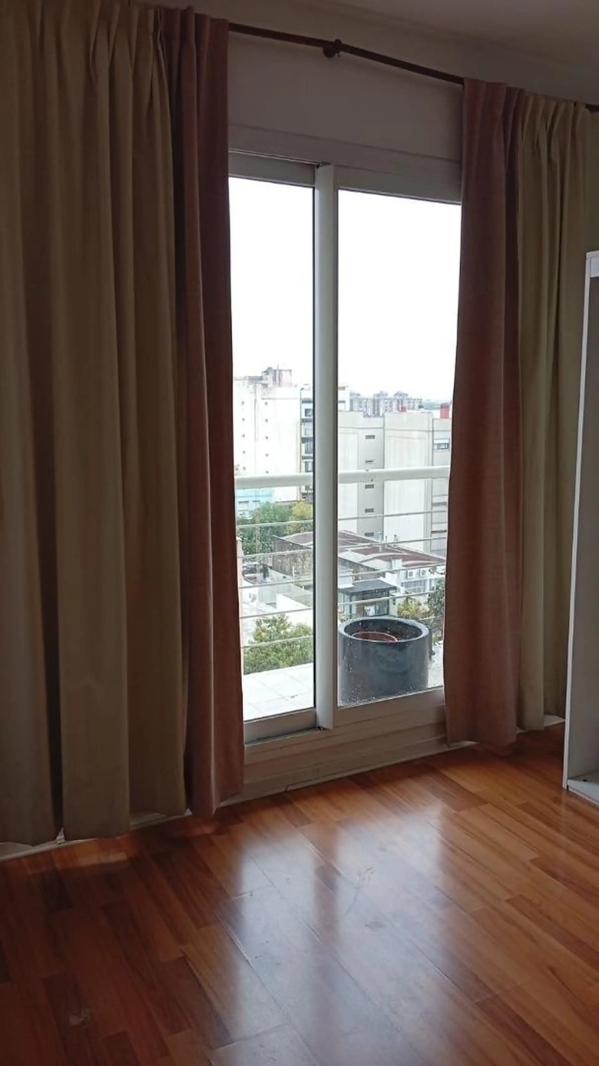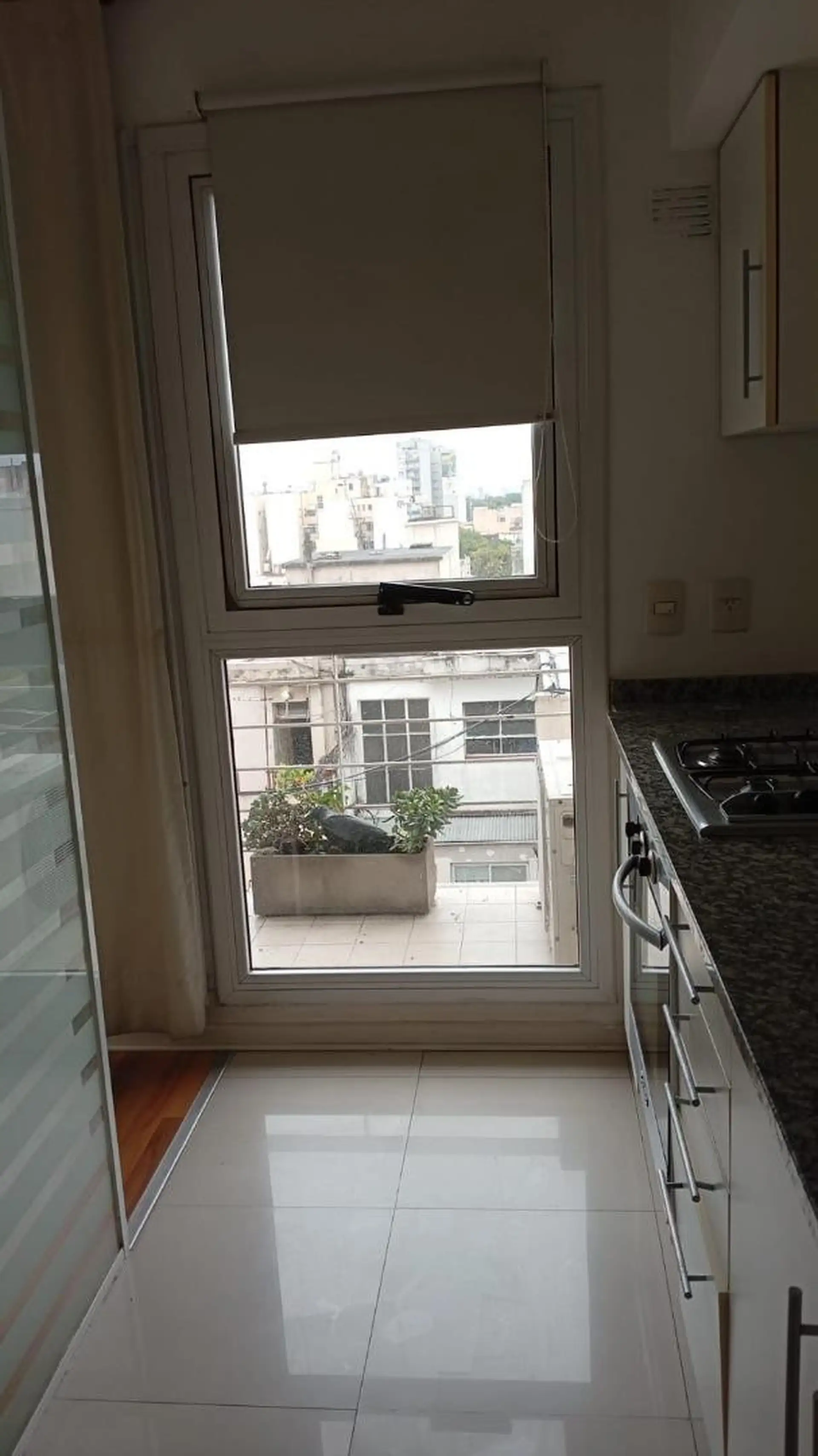 Studio apartment with separate kitchen and a full bathroom. The unit is in very good condition and includes built-in lighting; a white furniture piece is present in the room and can be removed. The building offers amenities and has 24-hour security. Rental requirements include a property guarantee in CABA or a rental guarantee insurance, proof of real income, and IDs for the tenant and guarantor.