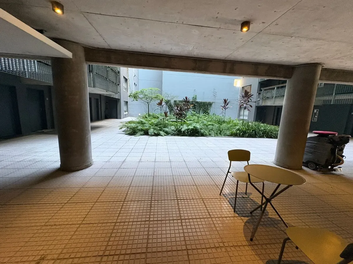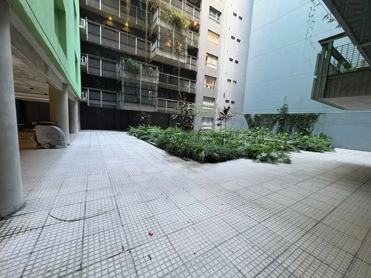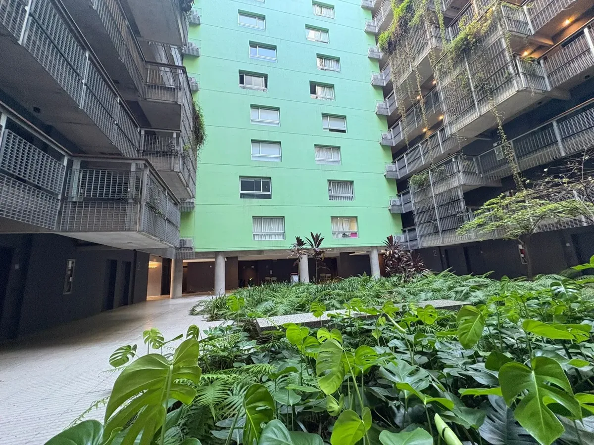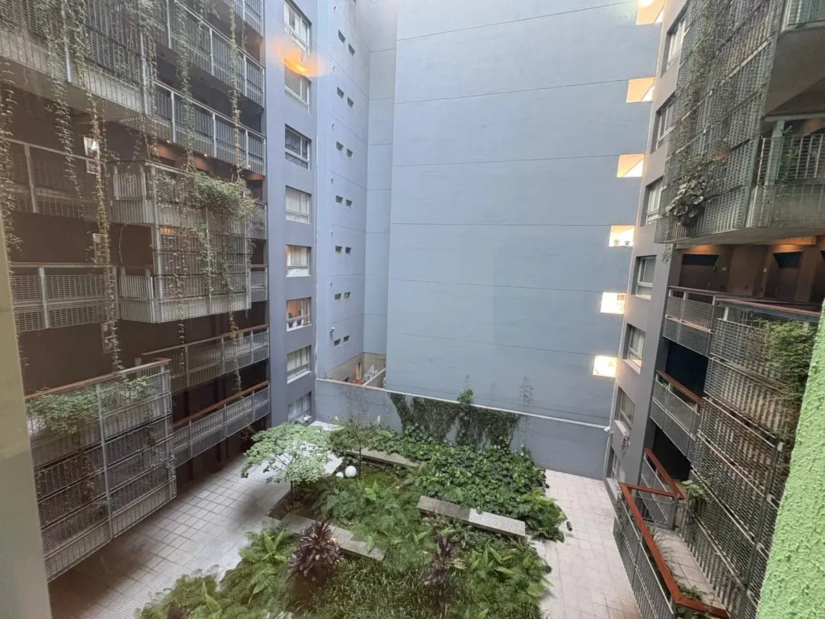 Studio apartment of 25 m² on the north side, located on an interior level with views of the building’s garden. It has a complete bathroom with a window and an integrated electric kitchen with no gas, plus central hot water. The building offers 24-hour security, three street-facing façades, five elevators (including one for moving furniture/ambulances), a communal room with independent entrance, laundry facilities, a gym, a residents’ lounge on the 15th floor with open views, a heated pool on the