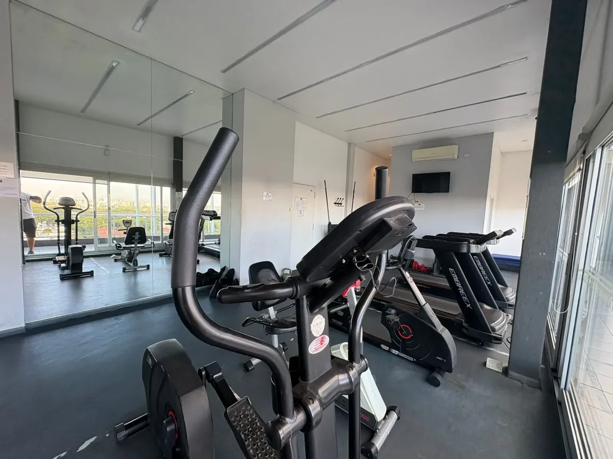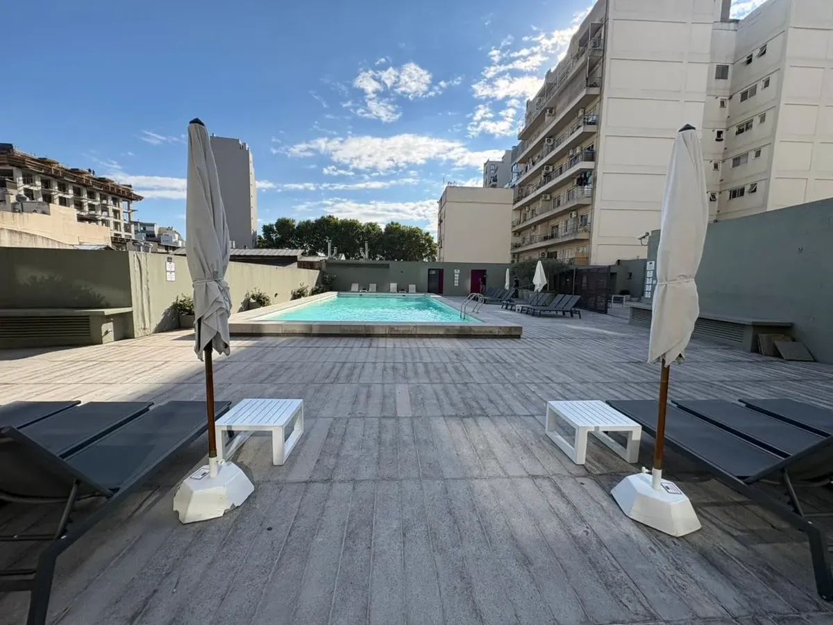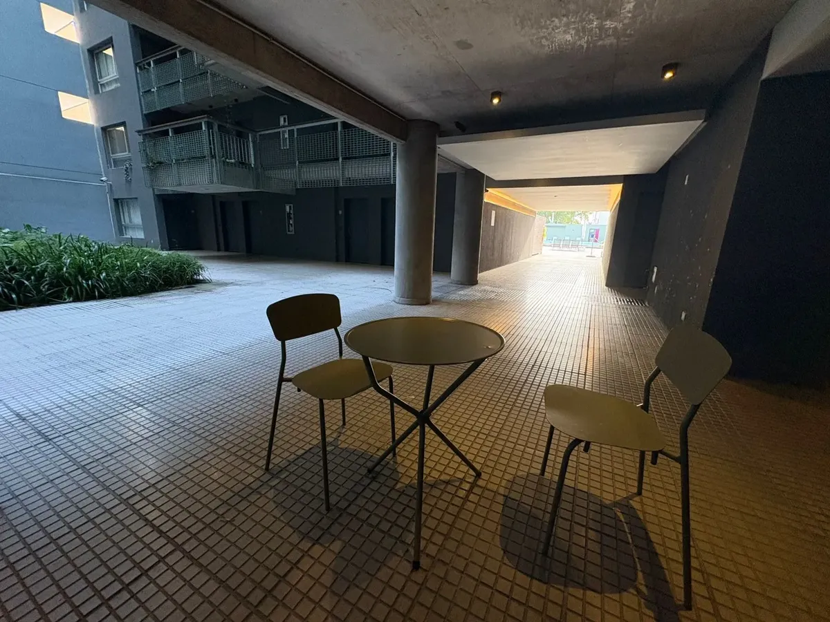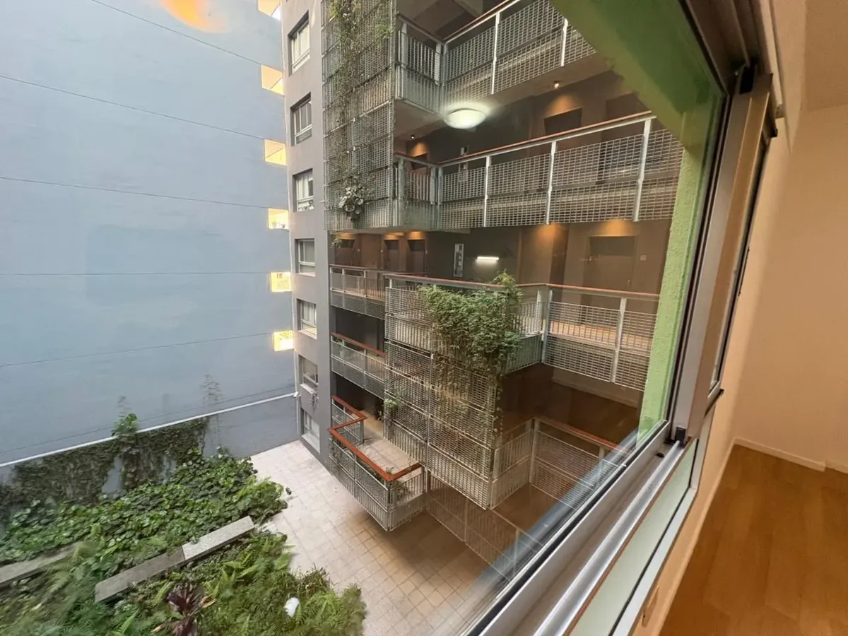 Studio apartment of 25 m² on the north side, located on an interior level with views of the building’s garden. It has a complete bathroom with a window and an integrated electric kitchen with no gas, plus central hot water. The building offers 24-hour security, three street-facing façades, five elevators (including one for moving furniture/ambulances), a communal room with independent entrance, laundry facilities, a gym, a residents’ lounge on the 15th floor with open views, a heated pool on the