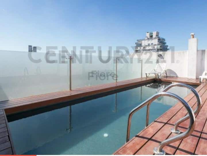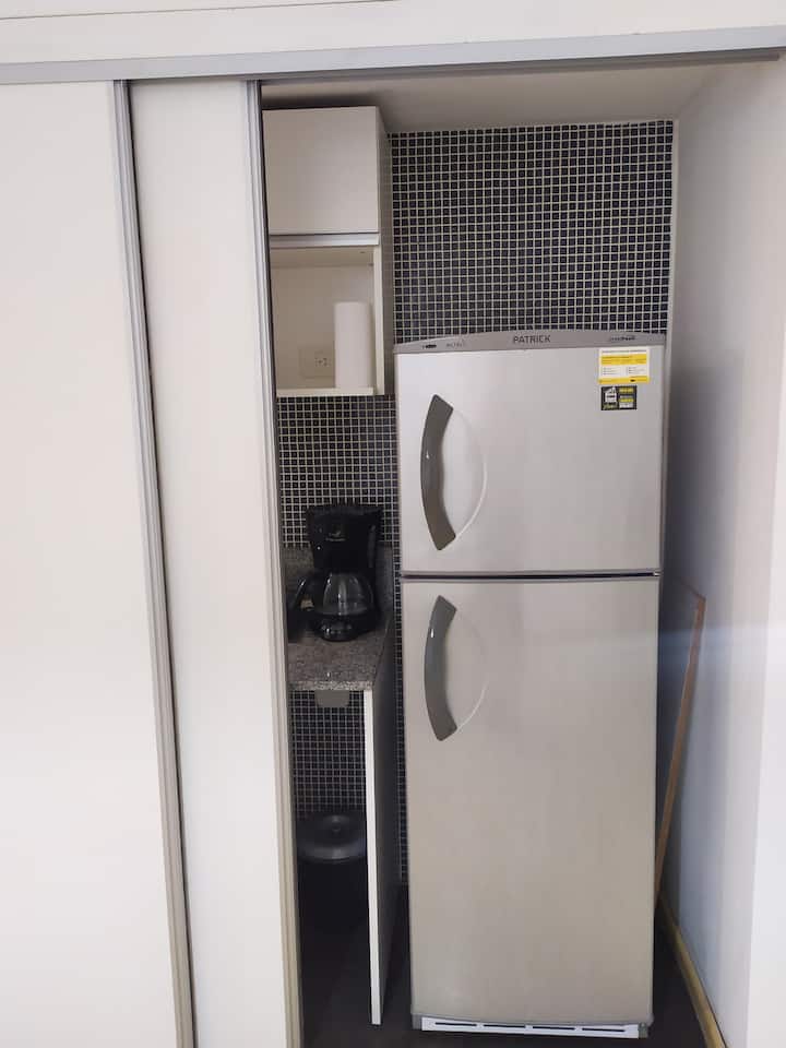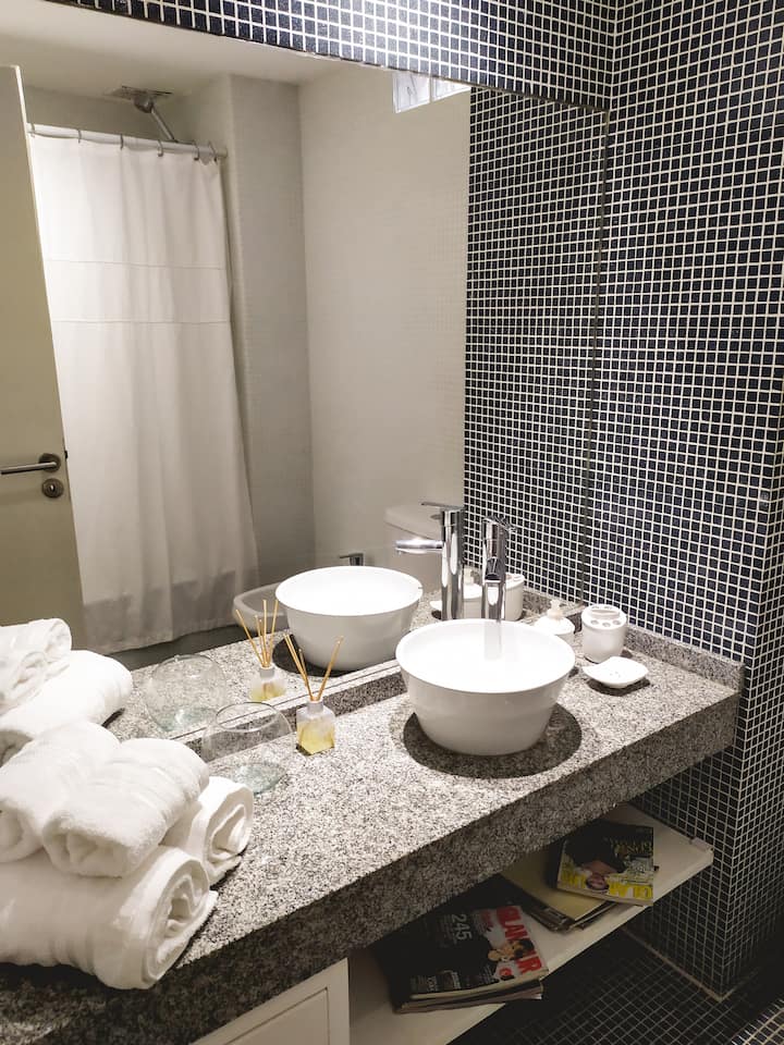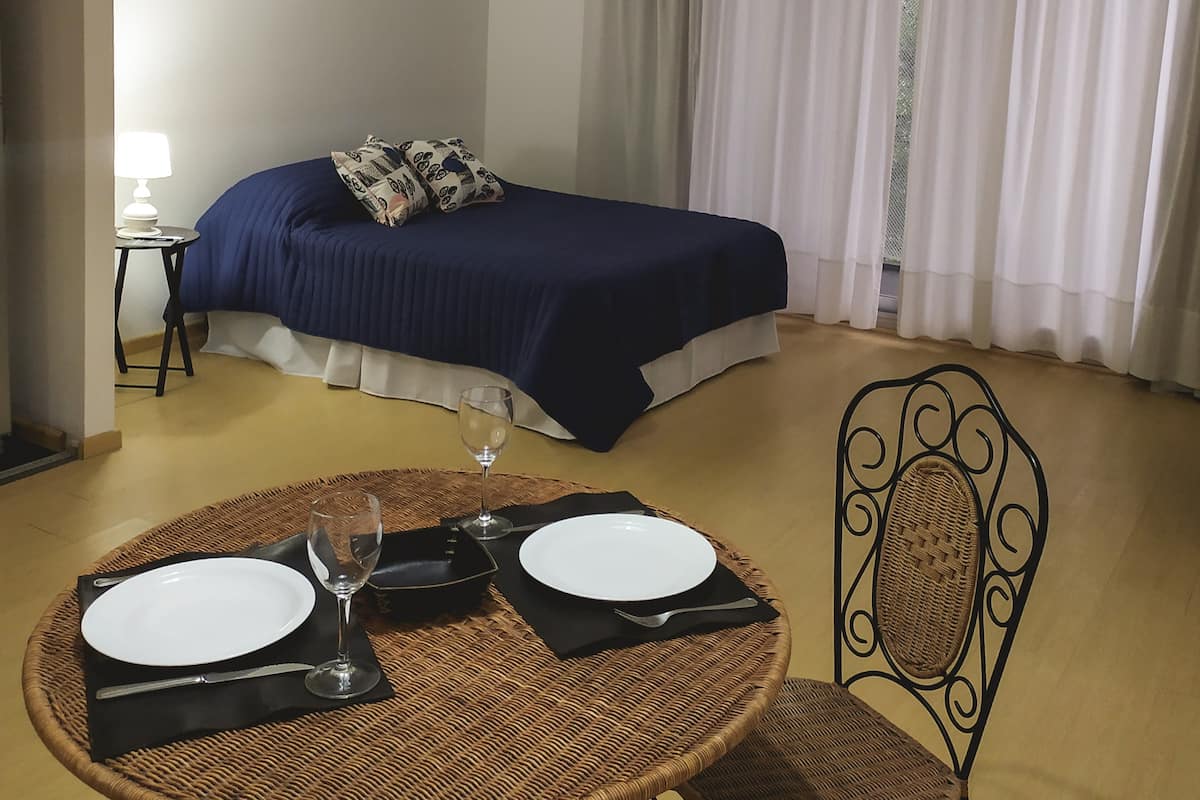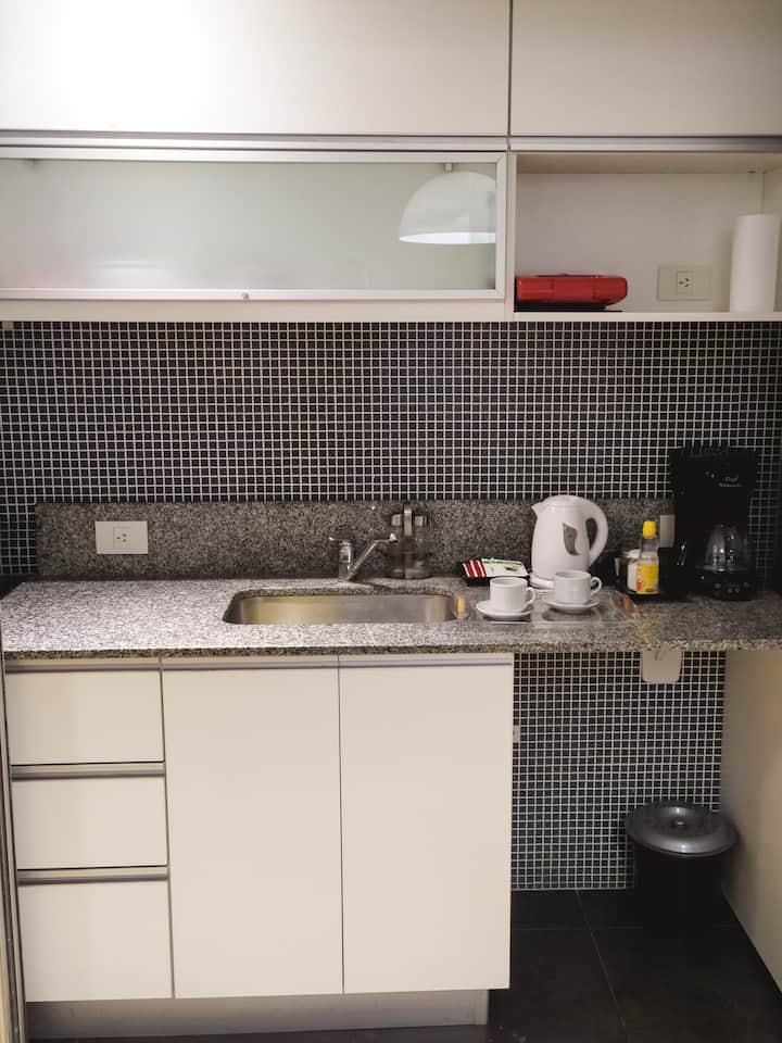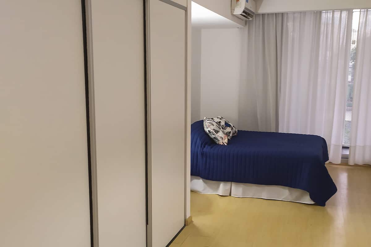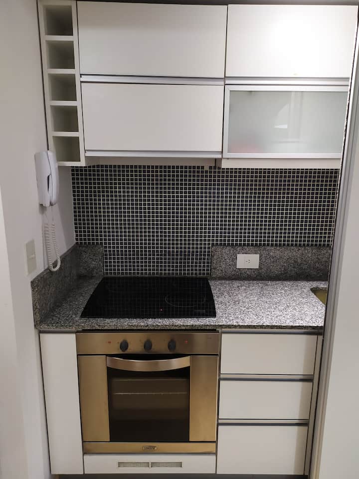 Studio apartment in Palermo. One room with a double bed and a fully equipped kitchen, plus a full bathroom. Includes WiFi, balcony, pool and gym, with towels and linens provided. Located on one of the city’s main avenues with easy public transport access.