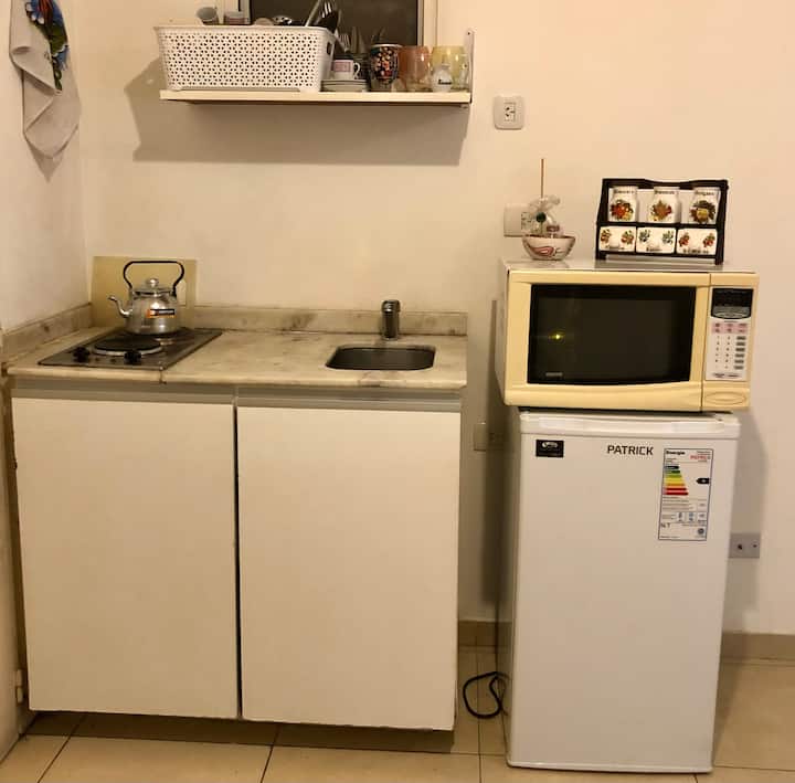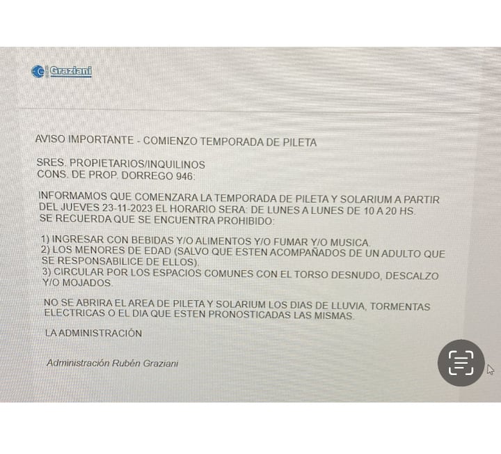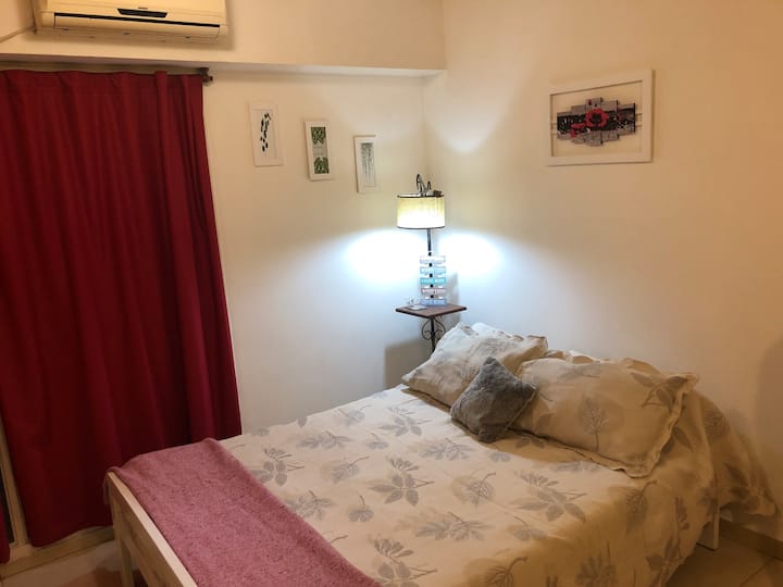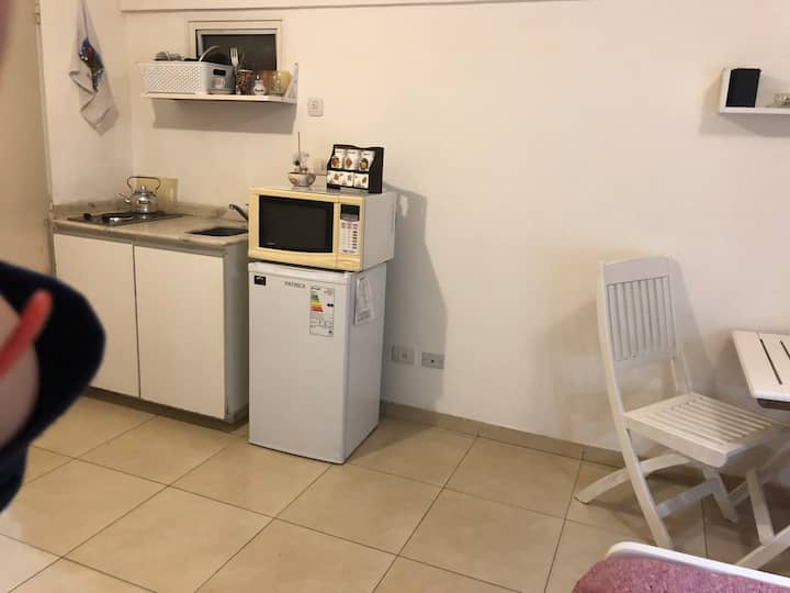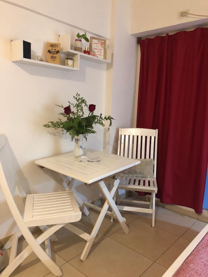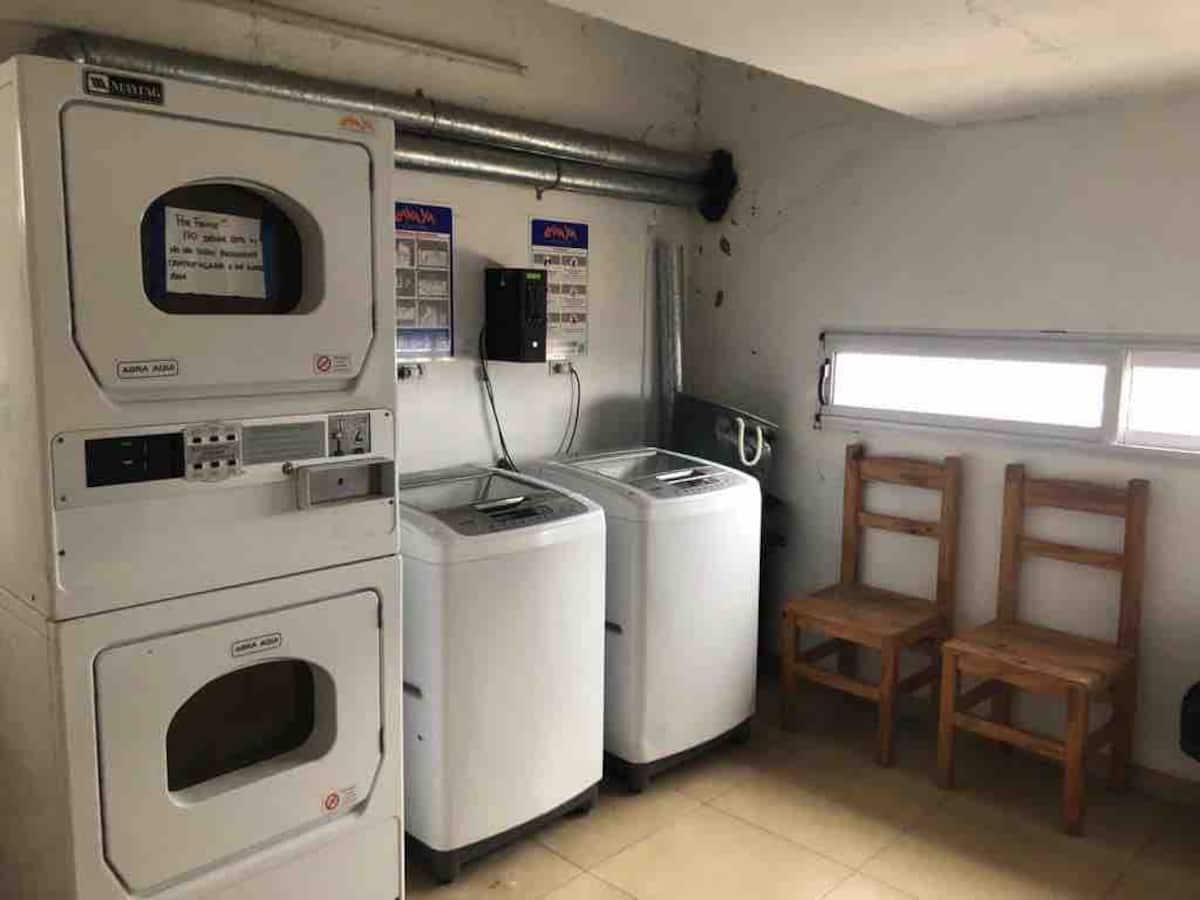 Studio apartment of 18 m² in an internal courtyard-facing setting in Chacarita. The building has a pool and residents can use commonly used washer and dryers on the top floor. No smoking inside the apartment. The listing states access to Subte Line B and several bus lines.