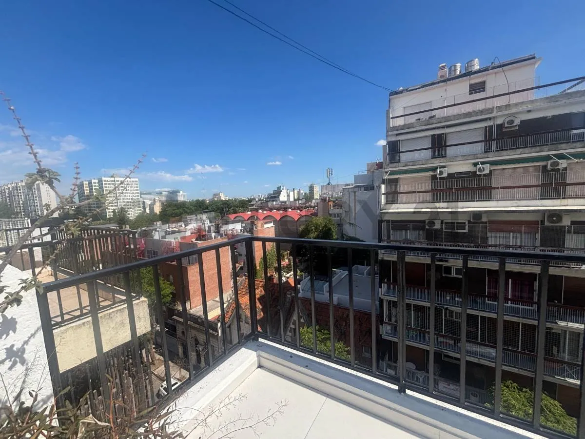 Remodelled studio apartment in Colegiales with a terrace balcony. 45 m² total area (31 m² covered and 14 m² uncovered). The unit has a modern equipped kitchen, a full contemporary bathroom, built-in wardrobe storage, and exterior windows for natural light and ventilation. Close to Estación Colegiales of the Tren Mitre.