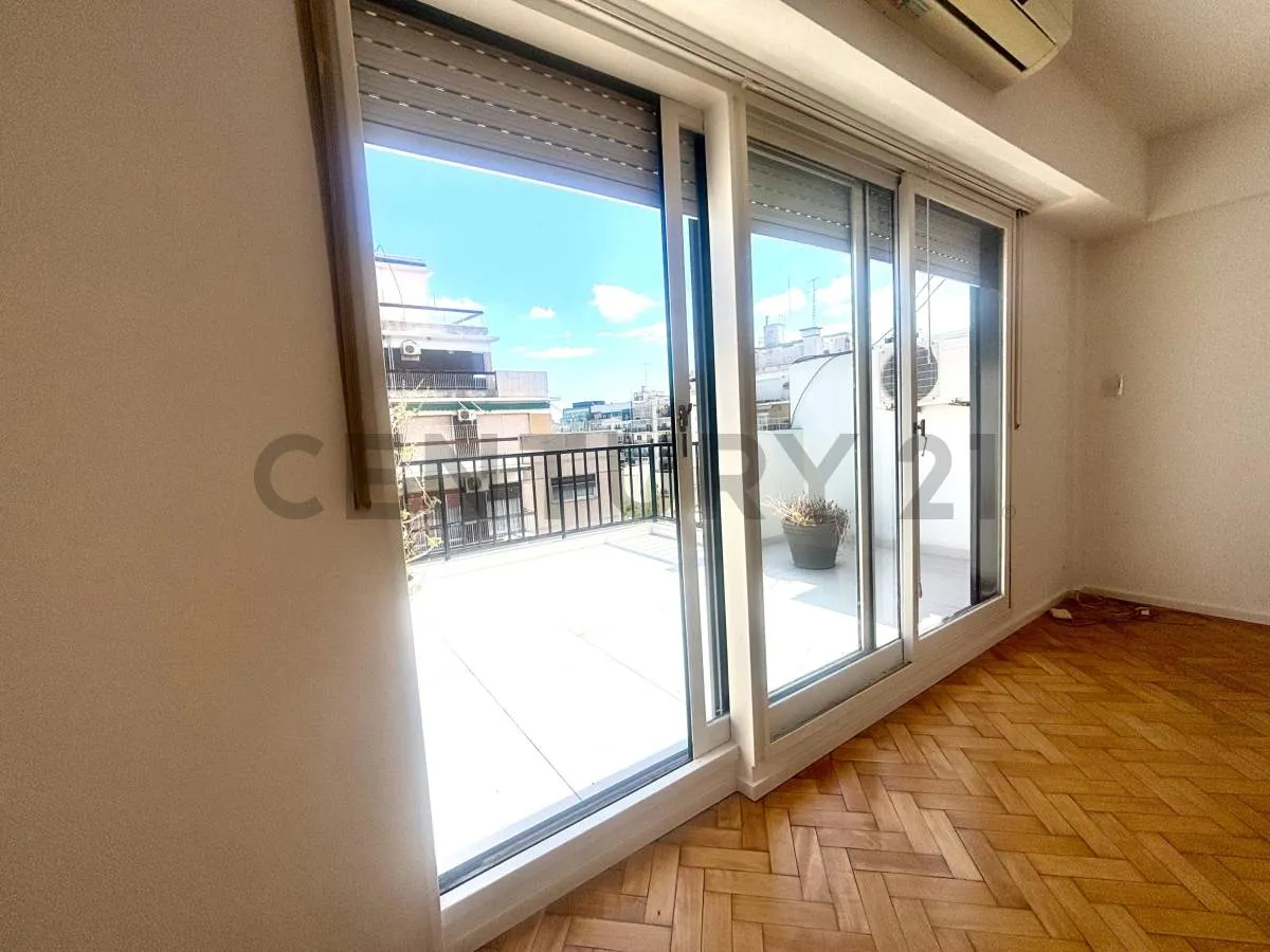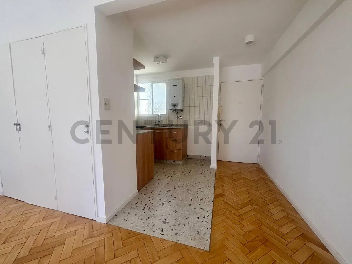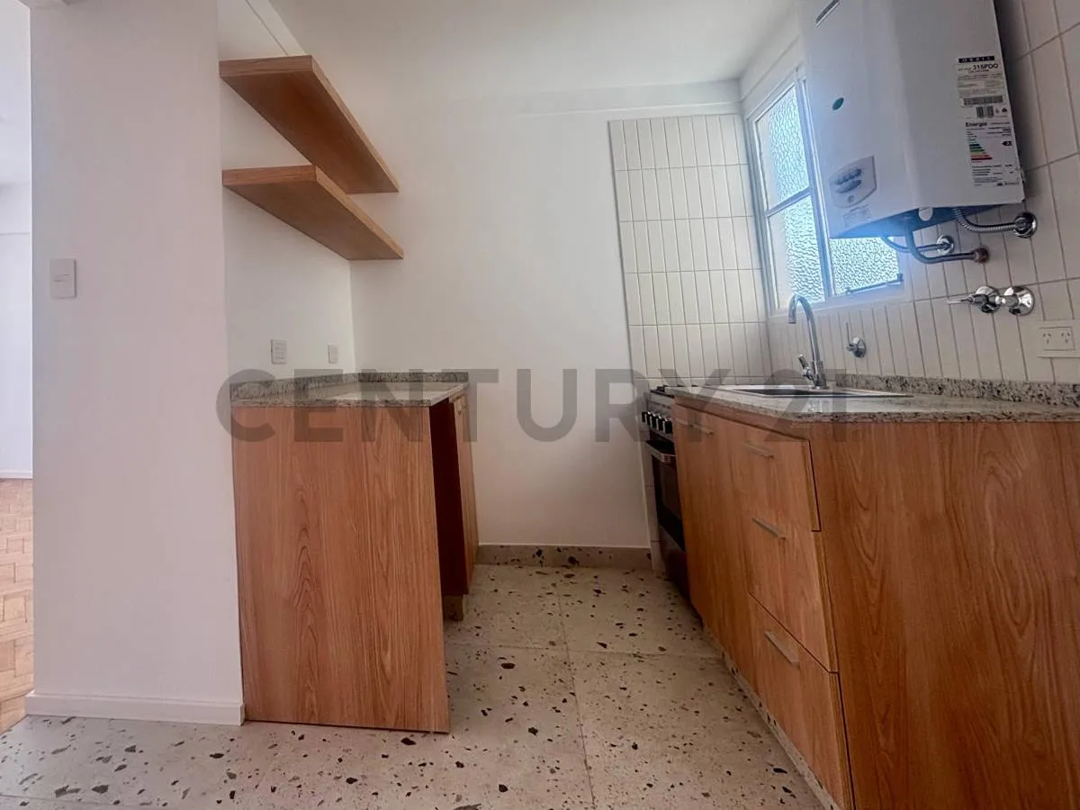 Remodelled studio apartment in Colegiales with a 45 m² total area, 31 m² covered and 14 m² semi-covered/outdoor space. It has a modern equipped kitchen, a full contemporary bathroom and a built-in wardrobe. The unit has exterior windows and a balcony terrace, with natural light and cross-ventilation. Rental requires a contract for at least 1 year, a rental guarantee bond in USD refundable in the same currency, and either FINAER rental insurance or a property guarantor with payslips and proof of