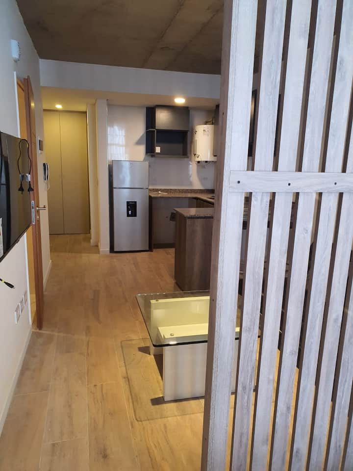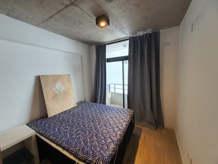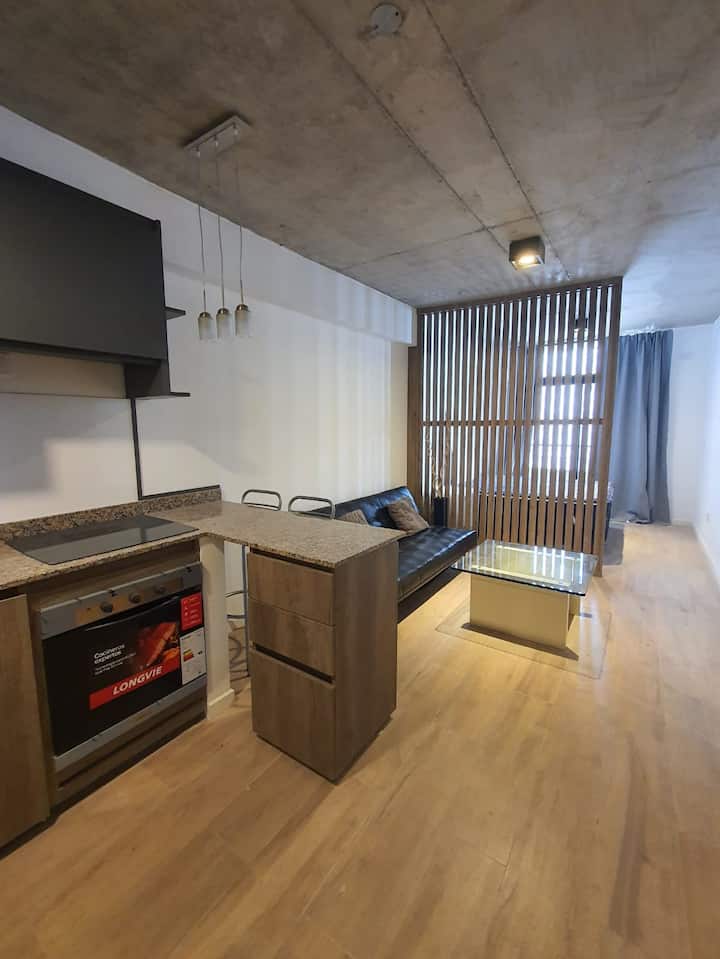 Quiet studio apartment in Colegiales with a partition. It is equipped for up to four people and includes a double bed and a sofa bed. Located 3 blocks from Subte Line D.
