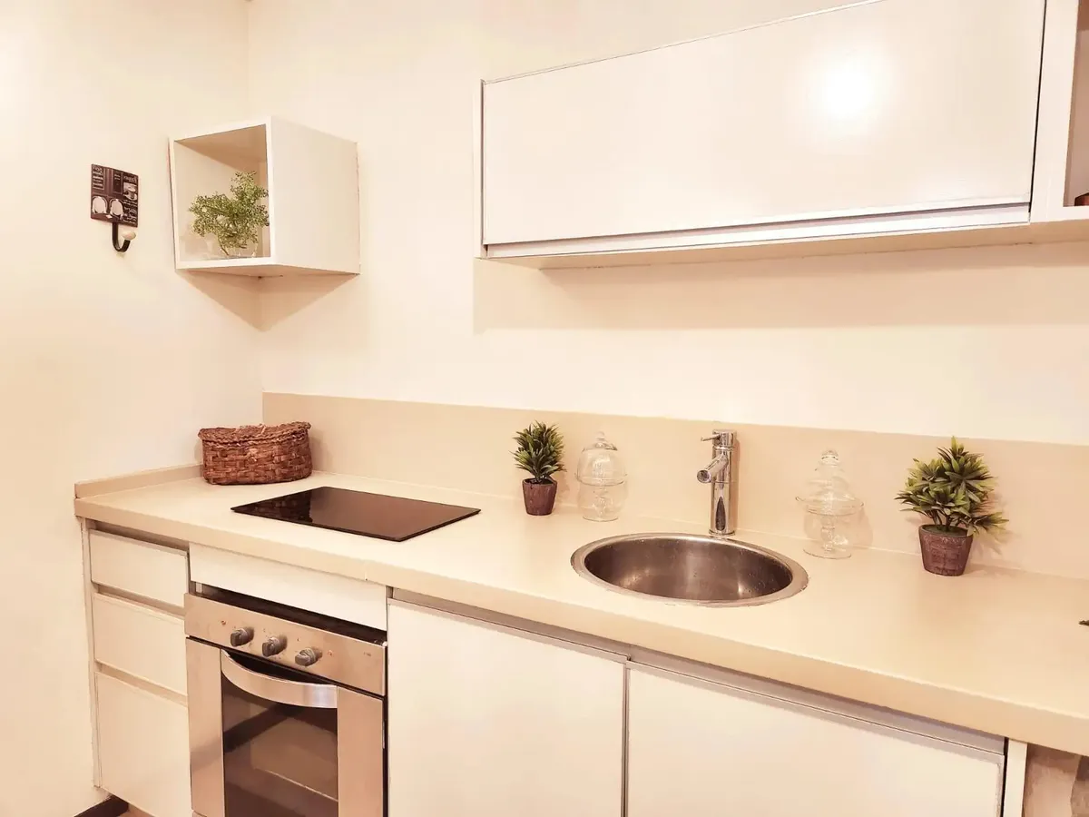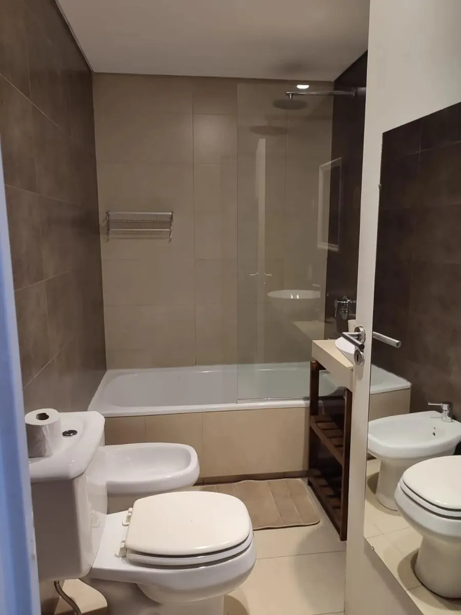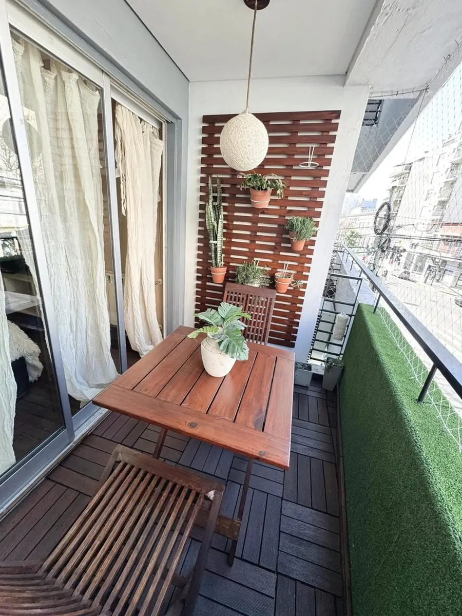 Studio apartment for short-term rental in Colegiales, furnished and equipped. It has a living-dining area, balcony, double bed, integrated kitchen with fridge with freezer and microwave, and a full bathroom with a bathtub. Air conditioning, radiator heating, TV and Wi-Fi are included. The unit is electric with no gas. Monthly expenses: the advertised rent is an all-inclusive package with Wi-Fi; the tenant pays electricity separately.