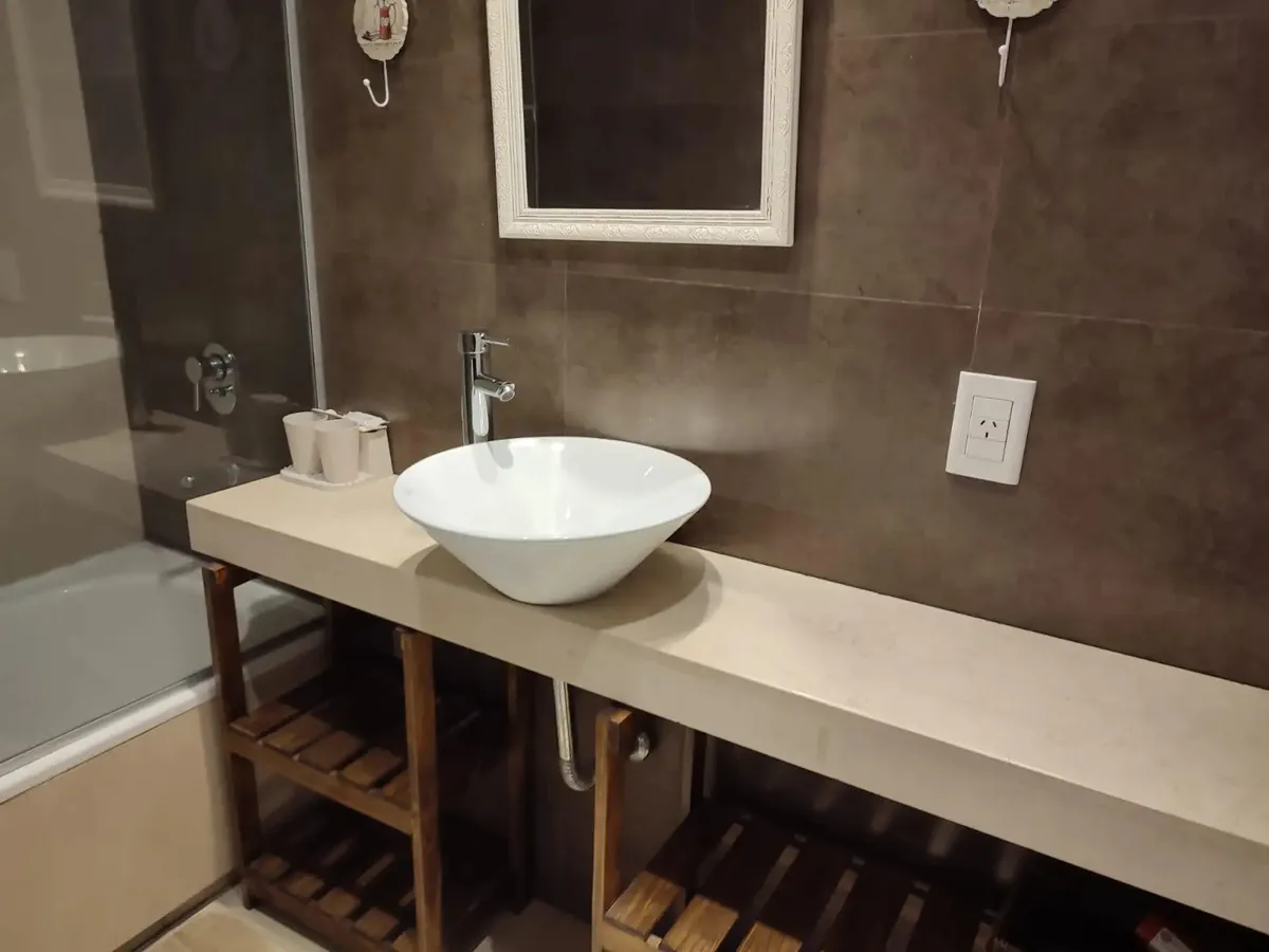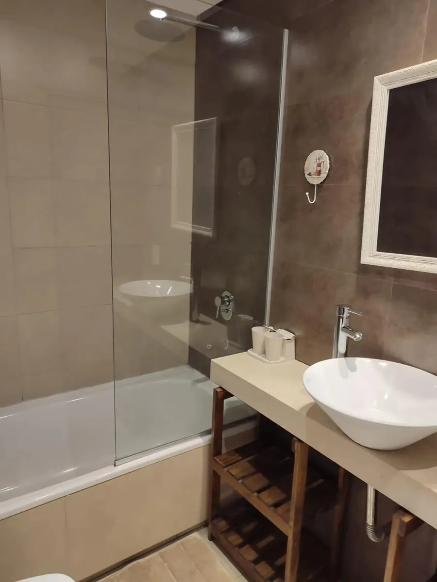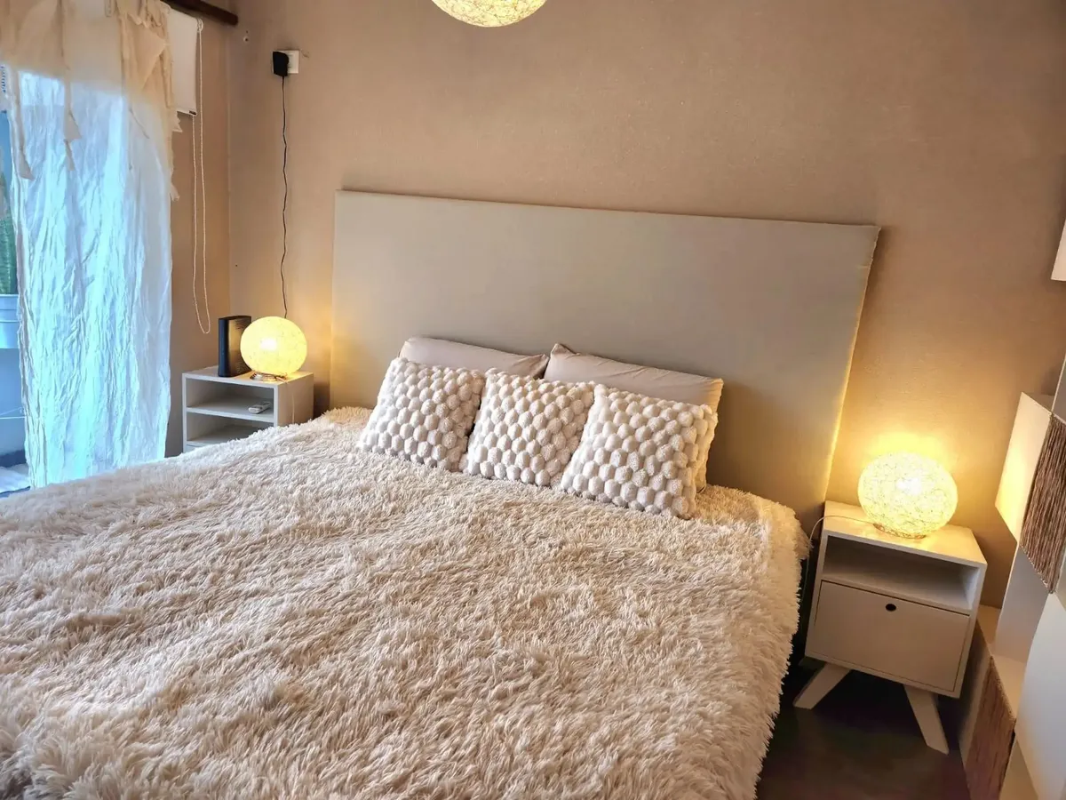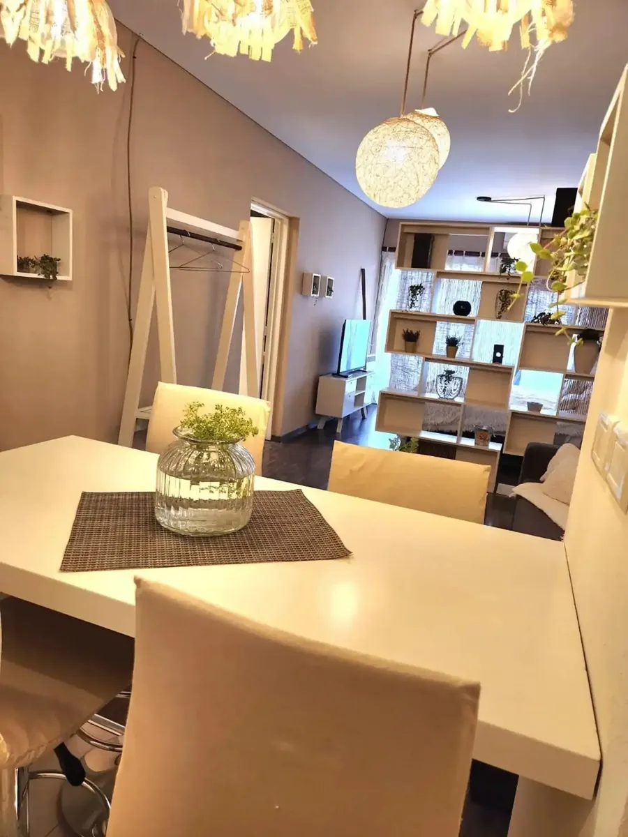 Studio apartment for short-term rental in Colegiales, furnished and equipped. It has a living-dining area, balcony, double bed, integrated kitchen with fridge with freezer and microwave, and a full bathroom with a bathtub. Air conditioning, radiator heating, TV and Wi-Fi are included. The unit is electric with no gas. Monthly expenses: the advertised rent is an all-inclusive package with Wi-Fi; the tenant pays electricity separately.