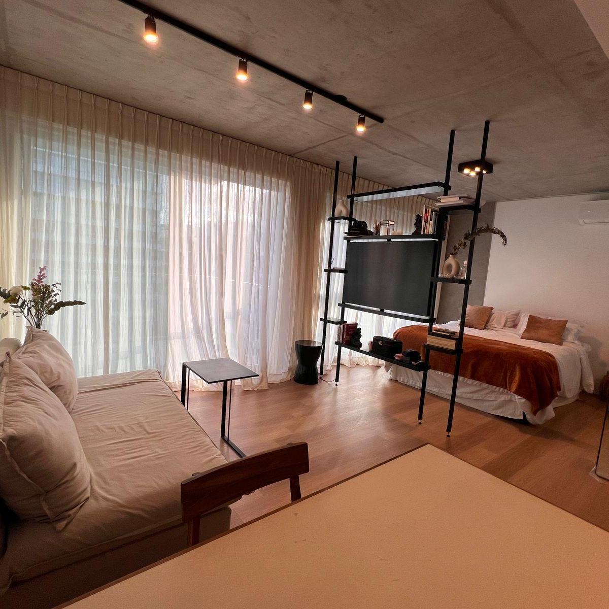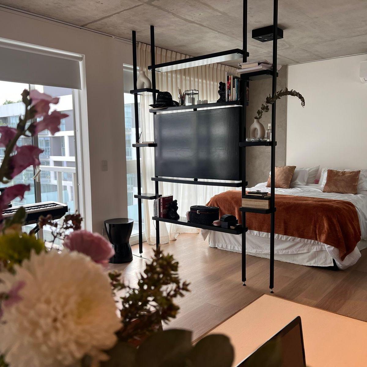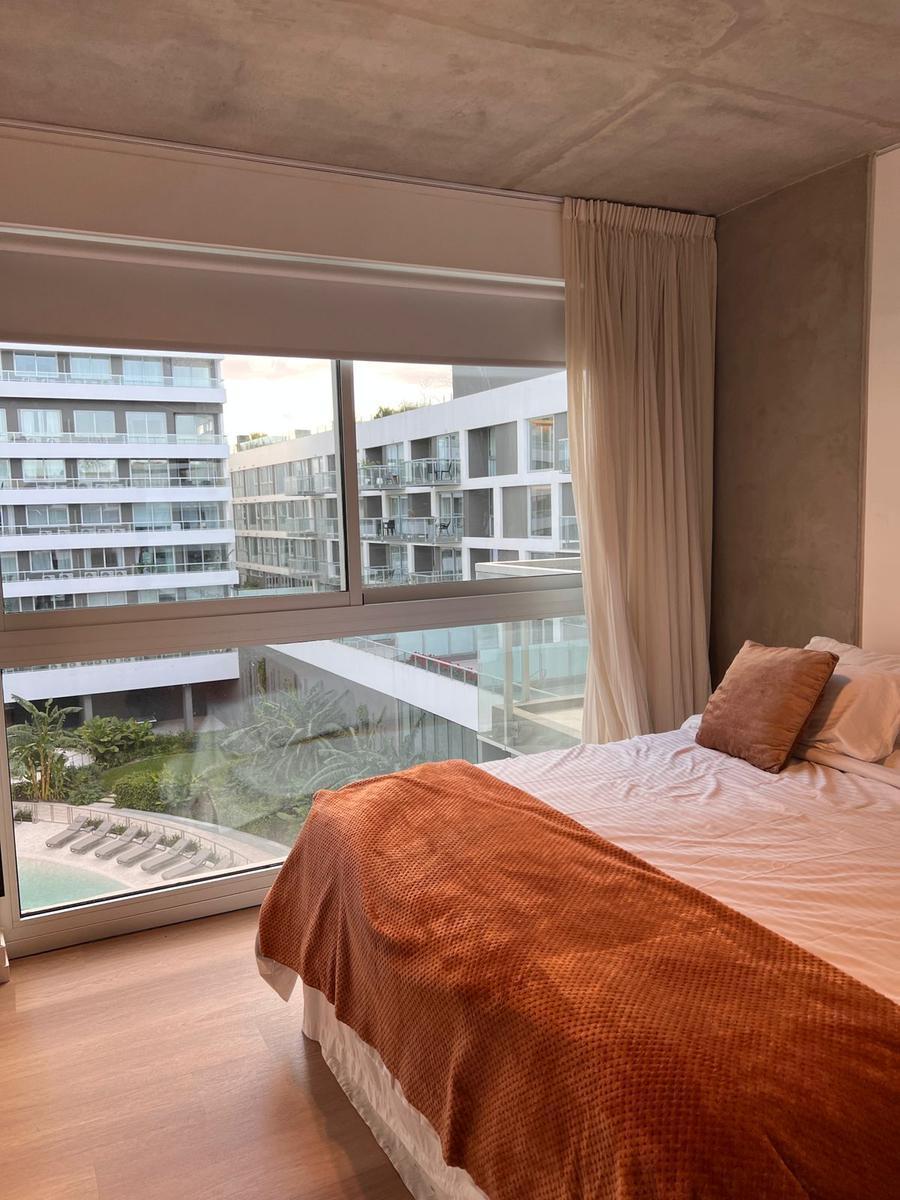 Brand-new studio apartment available from 15 March 2026. Fully furnished and equipped, with a queen bed, a semi-divided living area, an integrated fully equipped kitchen, and a balcony with views of the pool. The building offers over 20 amenities, including gourmet rooms with barbecue and fireplace, a large events hall with outdoor terrace, circular meet-up areas in the central garden, a soundproof rehearsal room, a circular 30 m diameter pool with solarium, and a semi-covered expanded resto bar