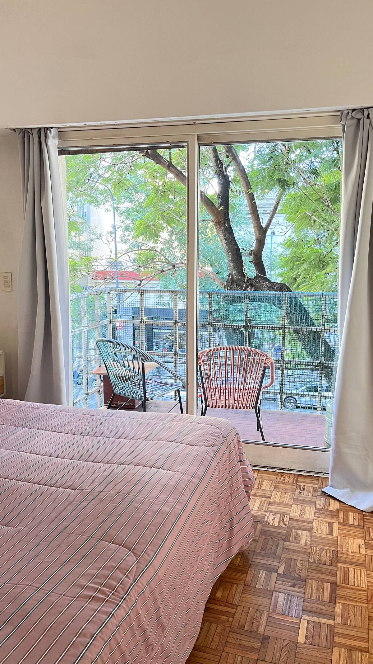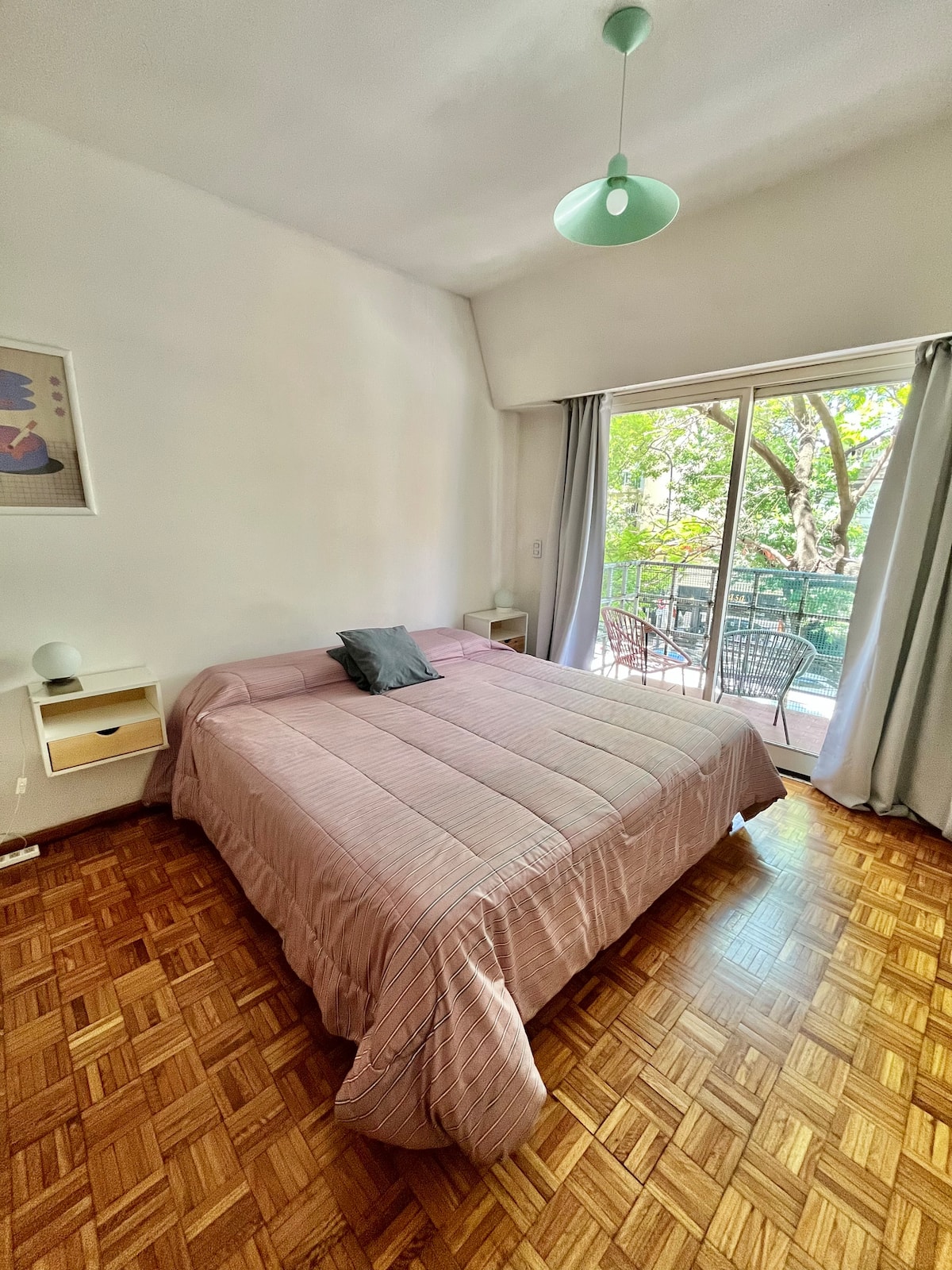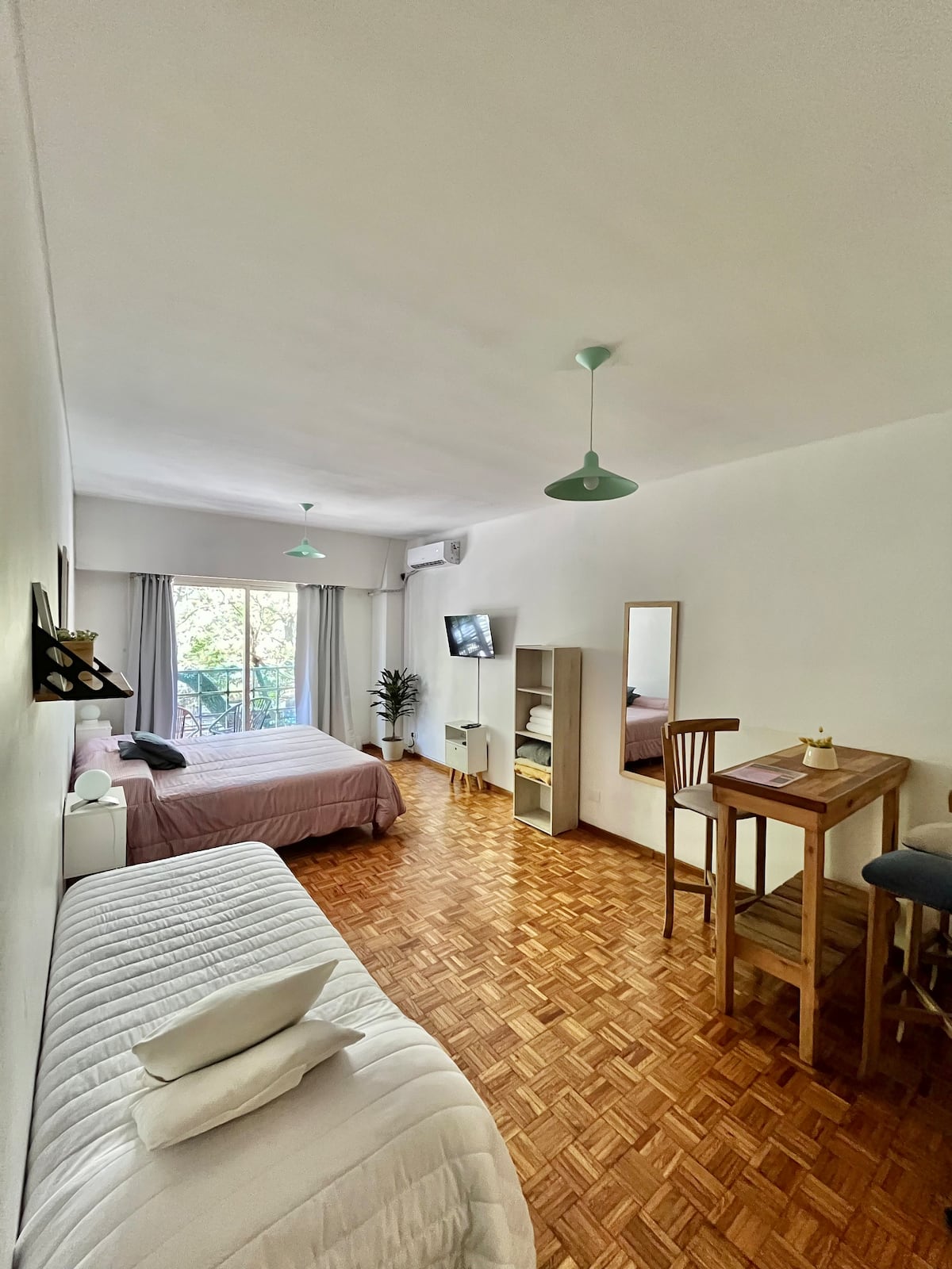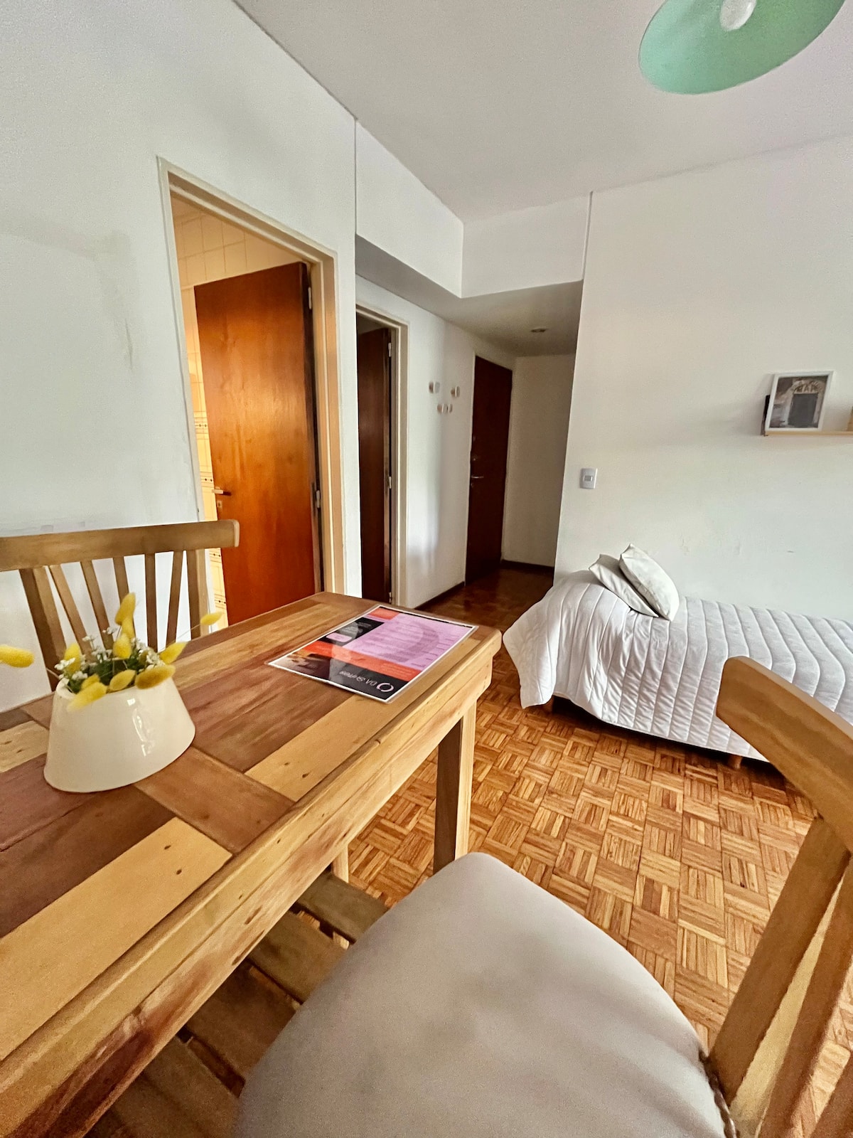 Studio apartment in Colegiales, 100 metres from Teatro Vorterix and on Av. Lacroze. Equipped with kitchen, private bathroom, free Wi‑Fi, TV, air conditioning and heating. Sleeps up to 3 guests, with a king-size double bed and a single bed, plus utensils and bedding.