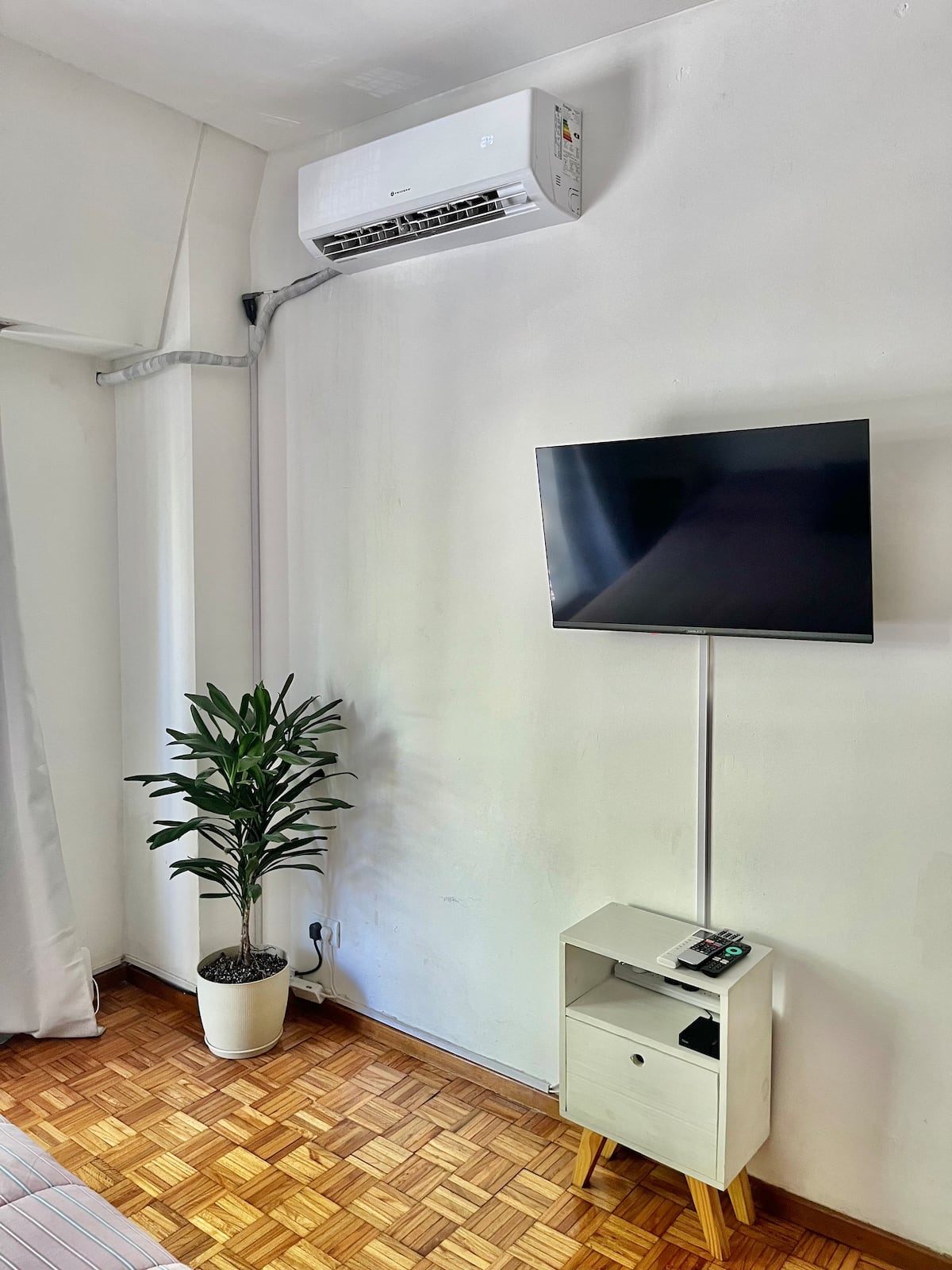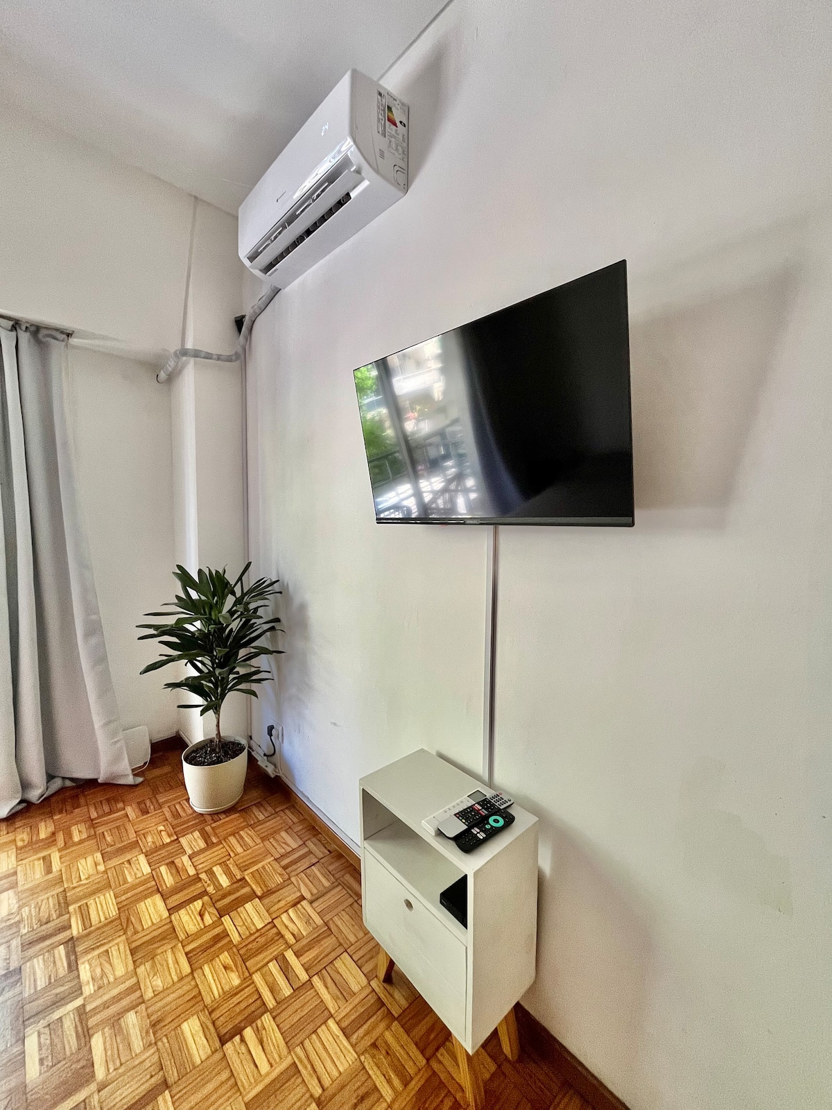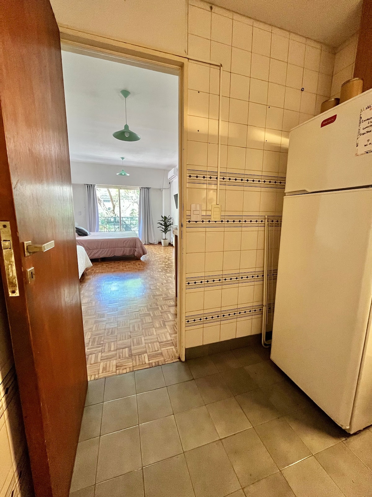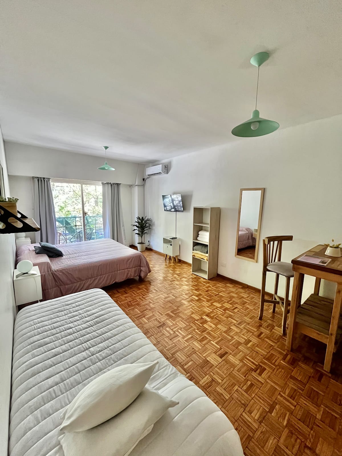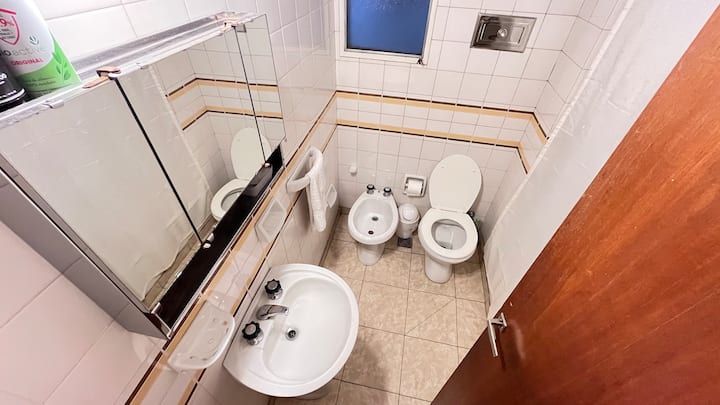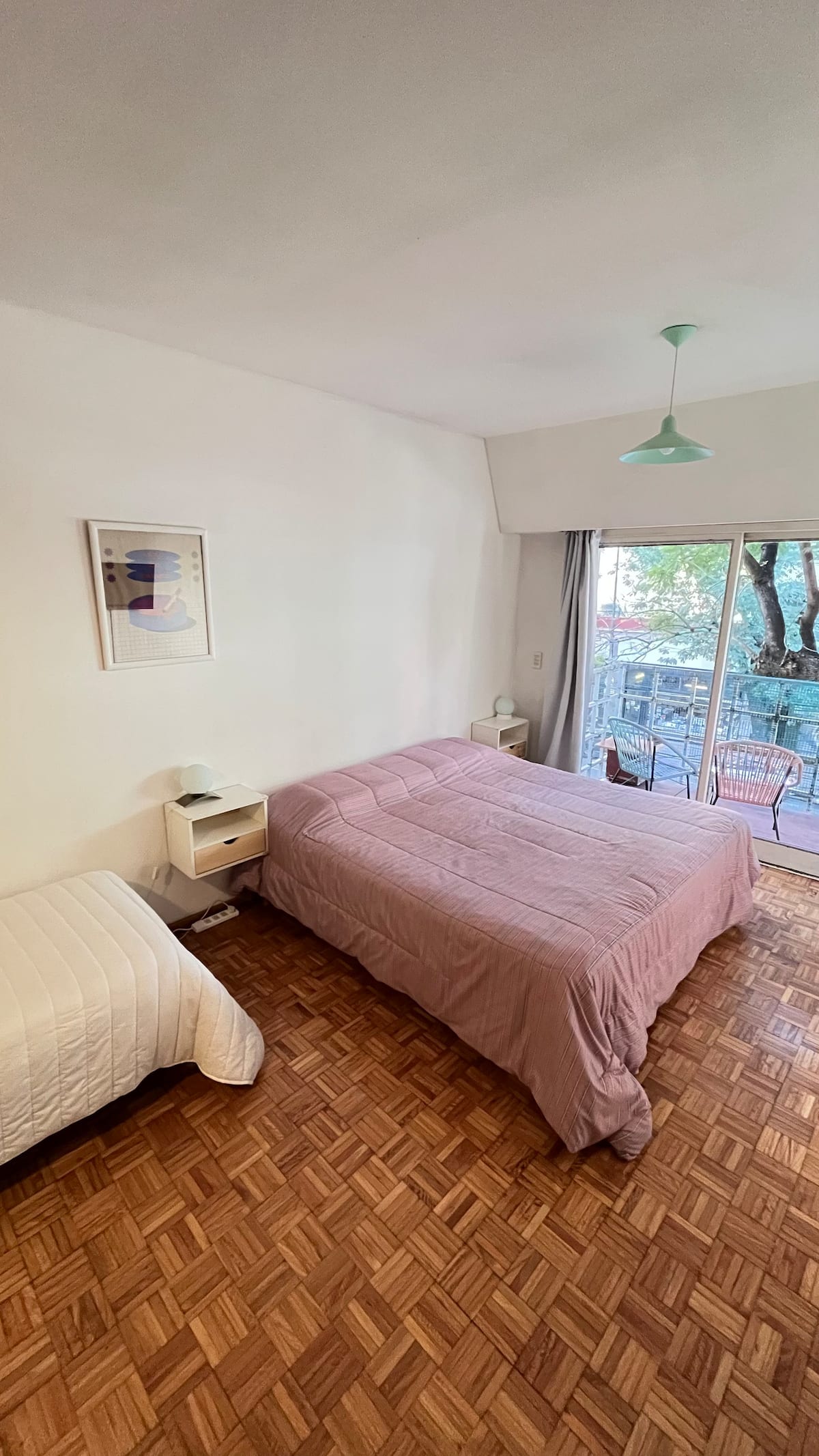 Studio apartment in Colegiales, 100 metres from Teatro Vorterix and on Av. Lacroze. Equipped with kitchen, private bathroom, free Wi‑Fi, TV, air conditioning and heating. Sleeps up to 3 guests, with a king-size double bed and a single bed, plus utensils and bedding.