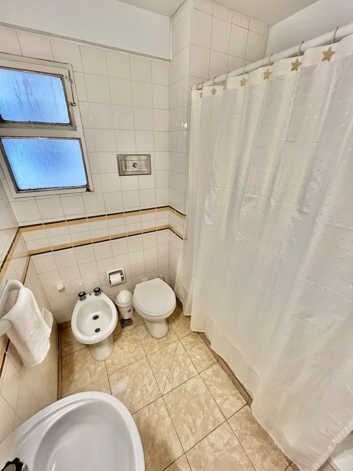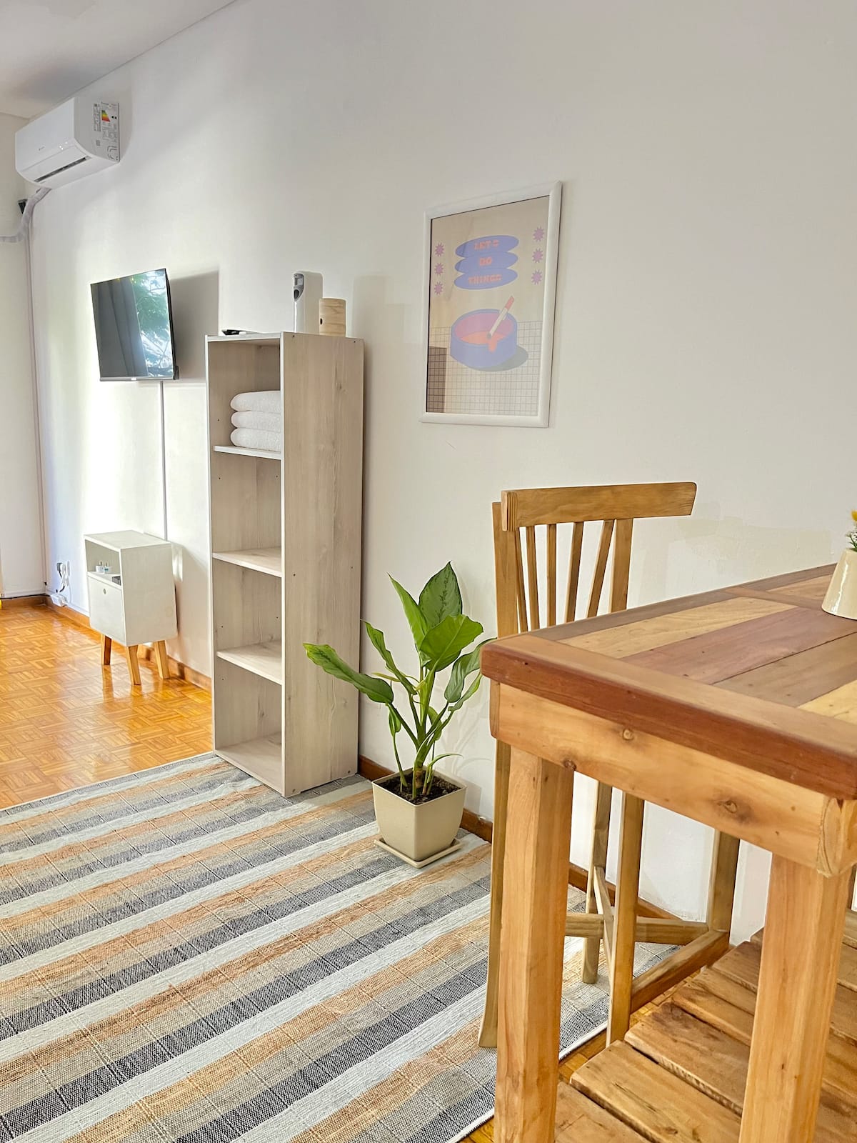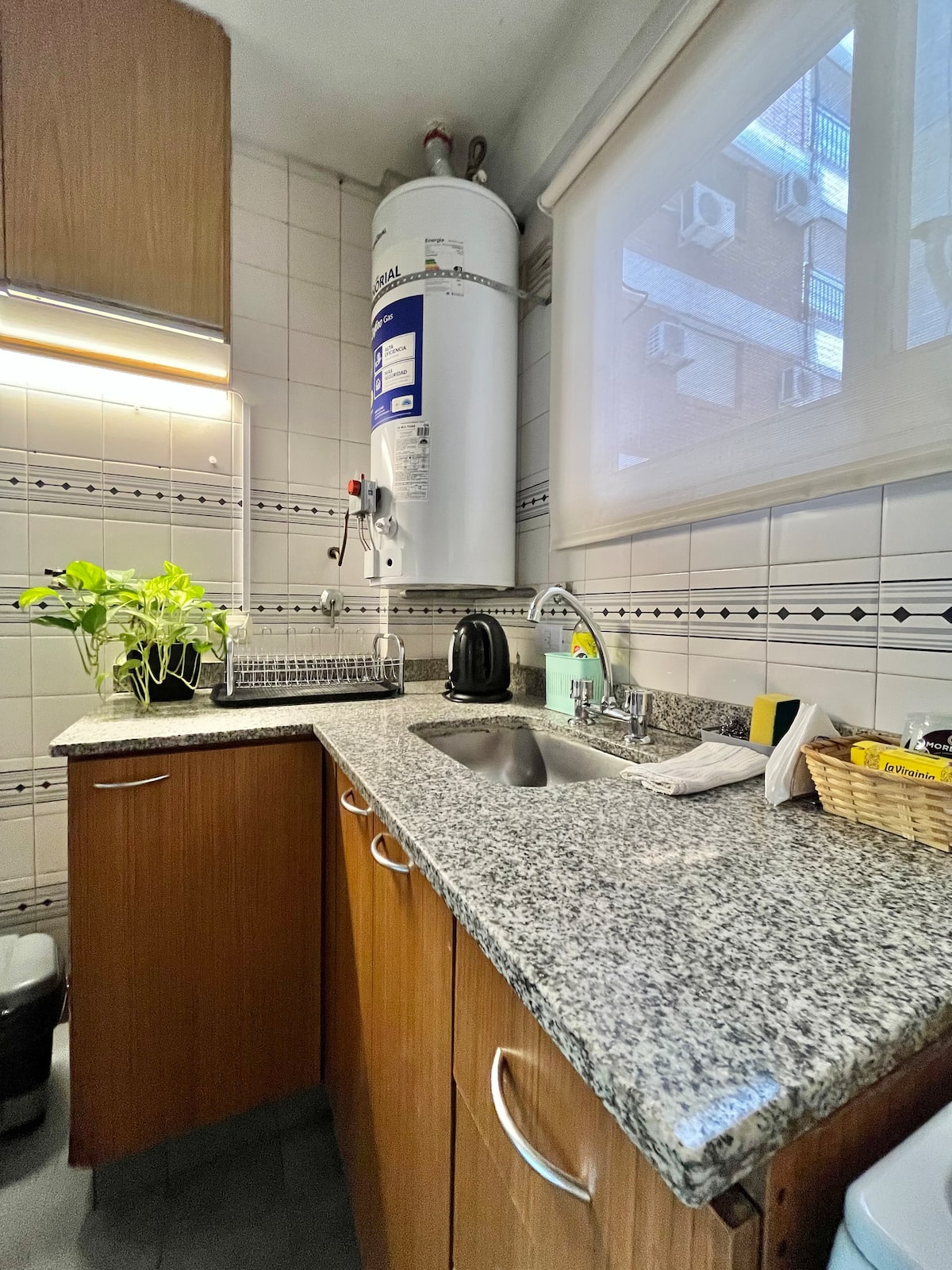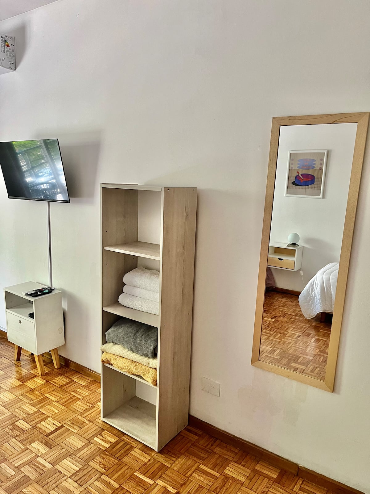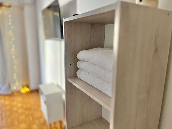 Studio apartment in Colegiales, 100 metres from Teatro Vorterix and on Av. Lacroze. Equipped with kitchen, private bathroom, free Wi‑Fi, TV, air conditioning and heating. Sleeps up to 3 guests, with a king-size double bed and a single bed, plus utensils and bedding.