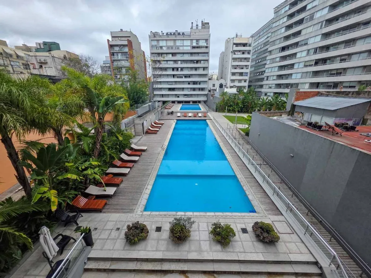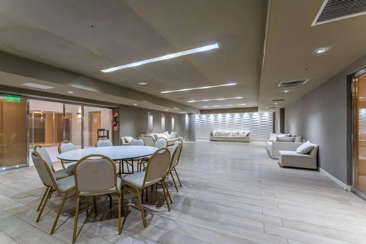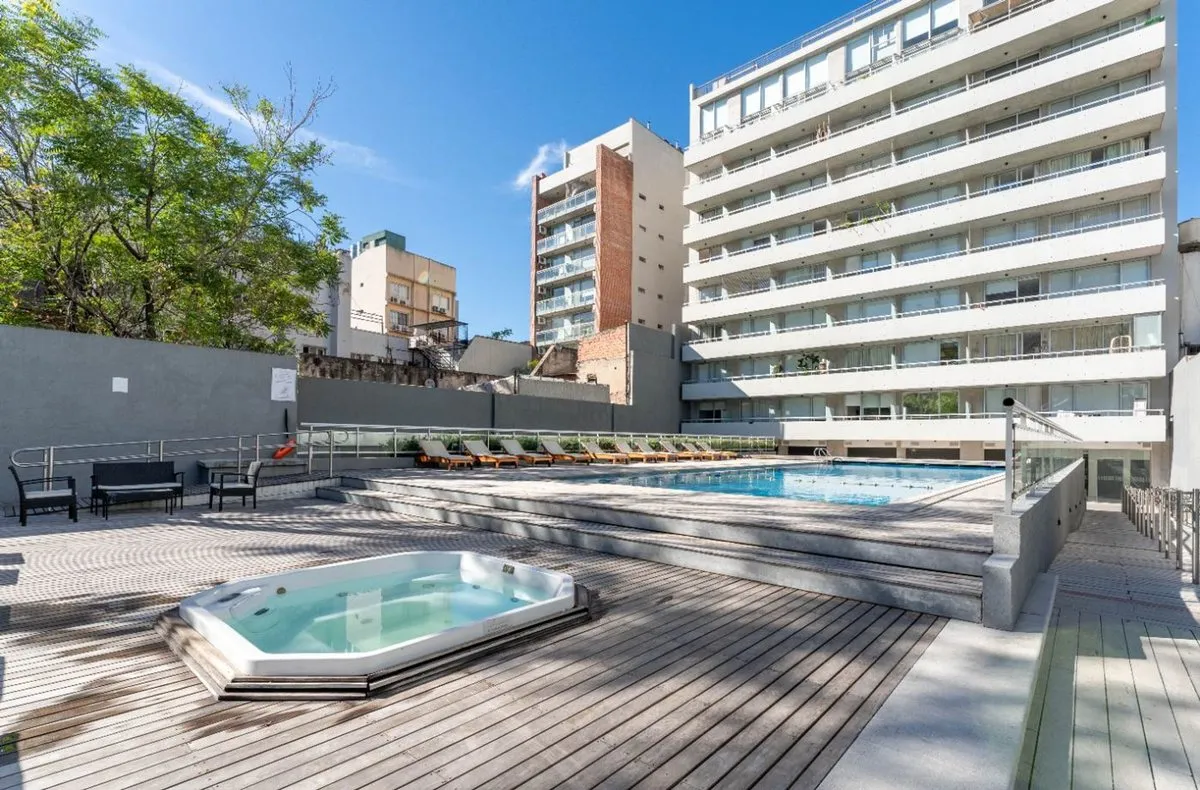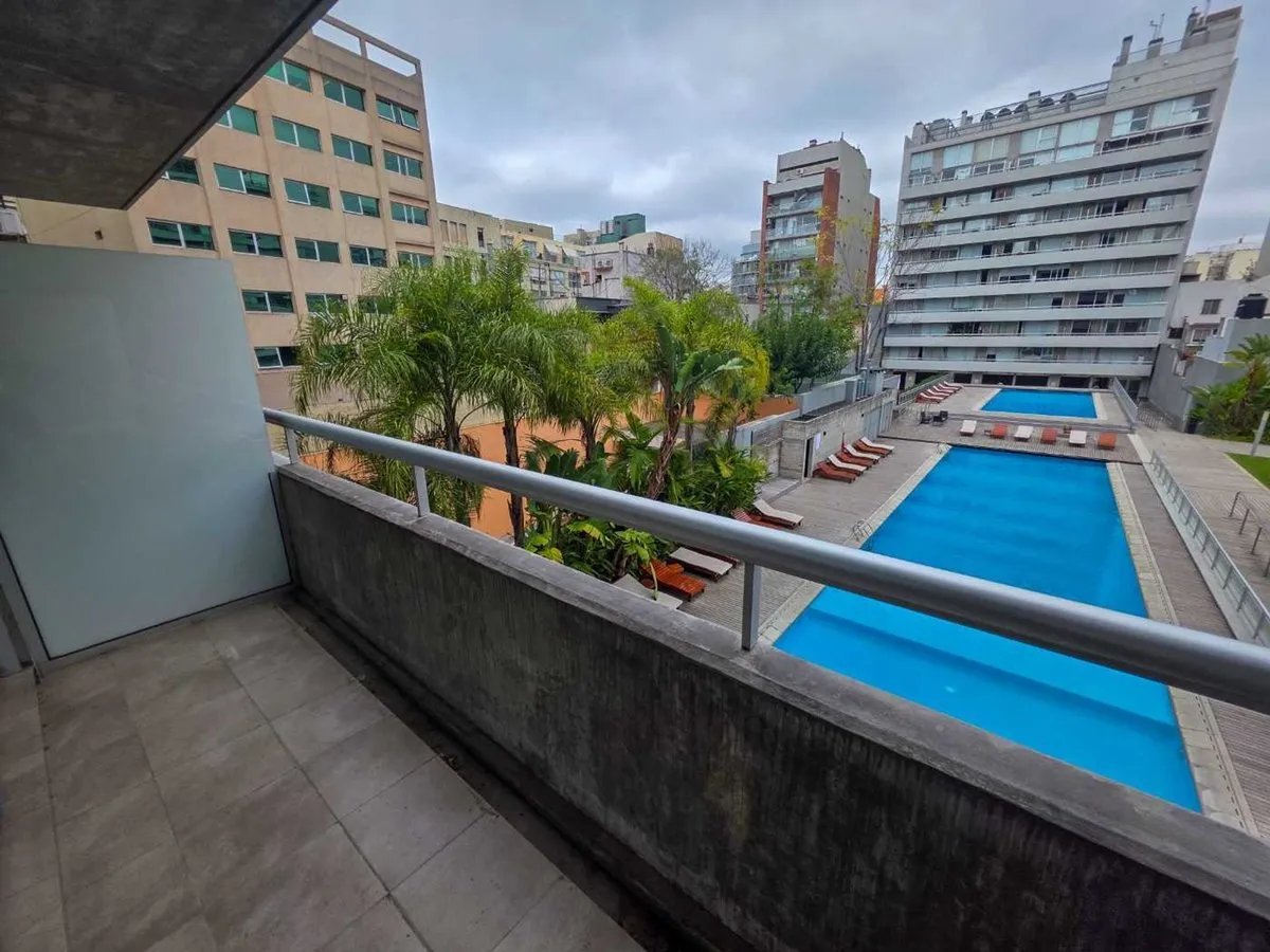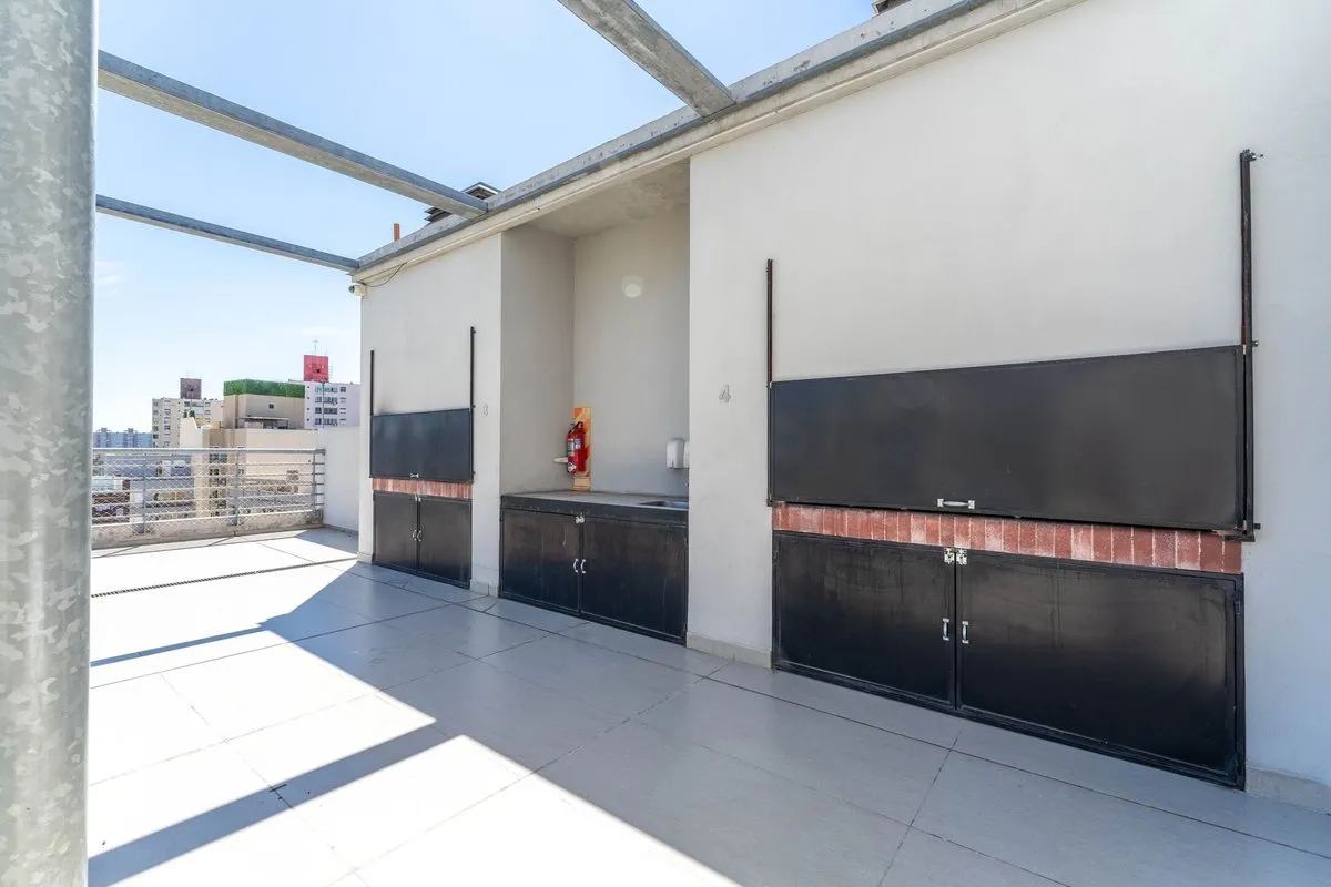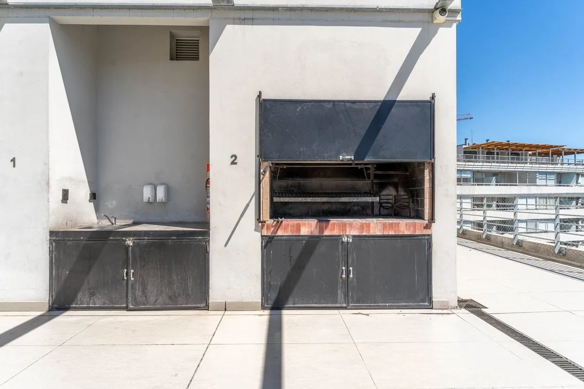 Studio apartment on the 2nd floor in Torre Full Amenities, facing with open views. The living/sleeping area has access to a balcony with open views; the integrated kitchen includes upper cabinets, base units, and a connection for a washing machine. There is a full bathroom with a bathtub. The building has 2 heated pools, a Jacuzzi, solarium, landscaped areas, a gym, sauna, a communal SUM, terraces with grills and panoramic views, a party room, a microcinema, laundry facilities, 24-hour security,