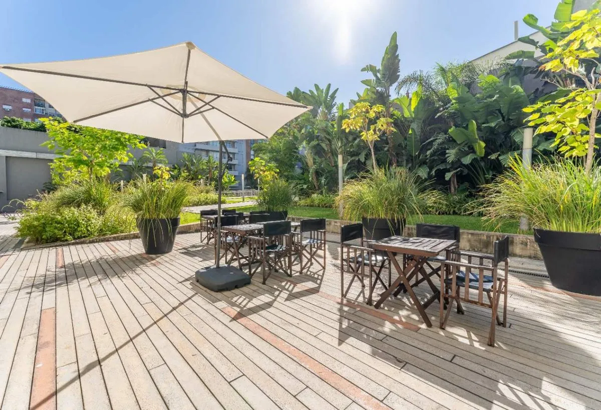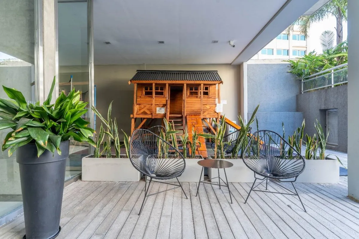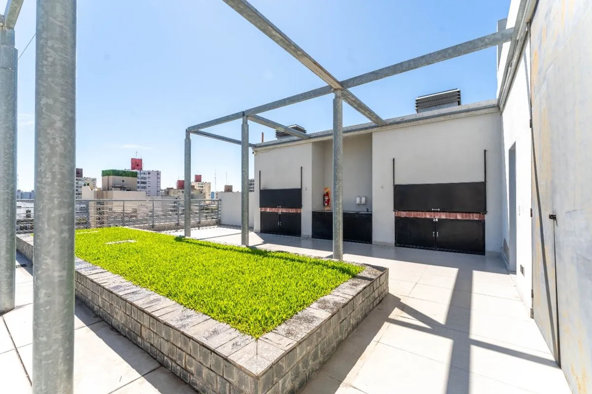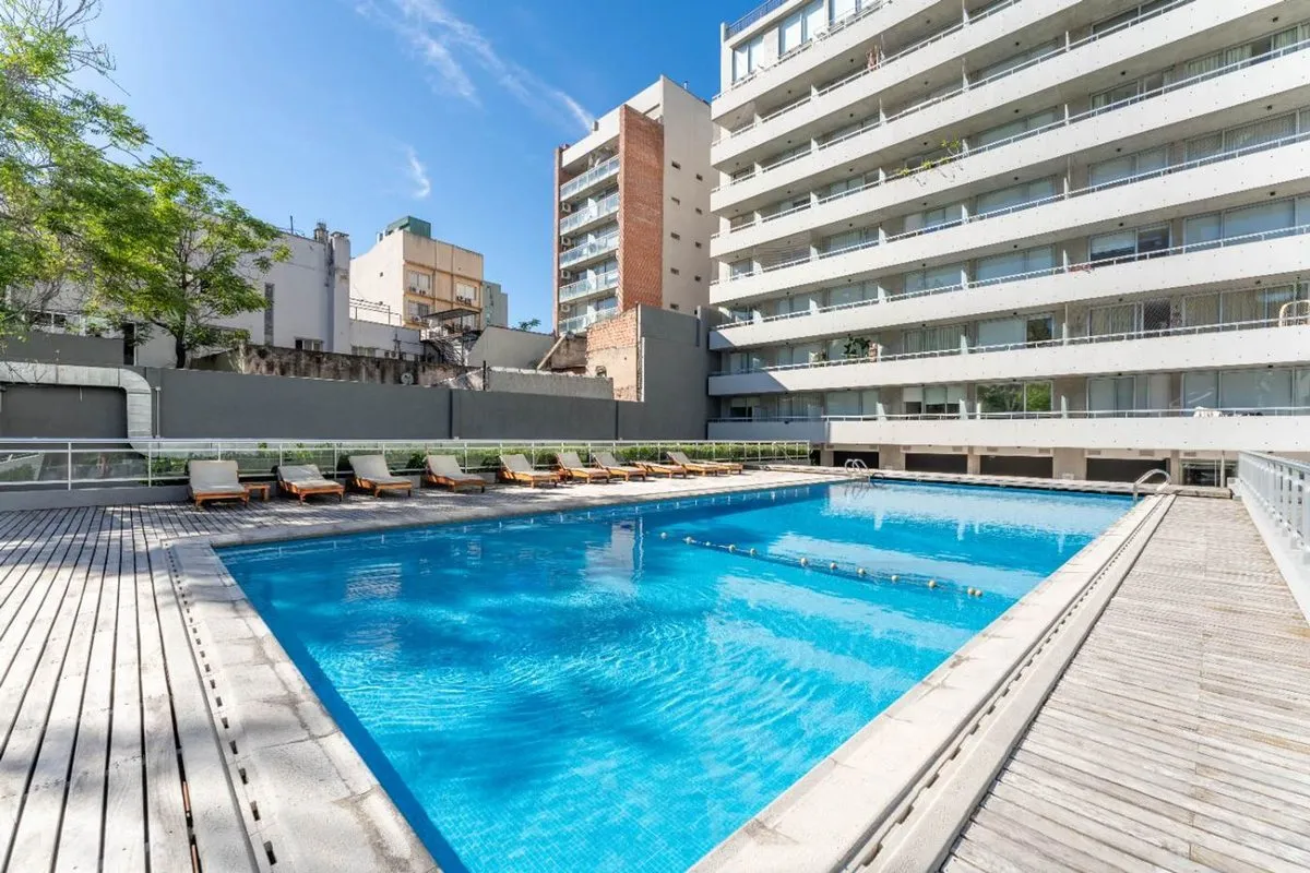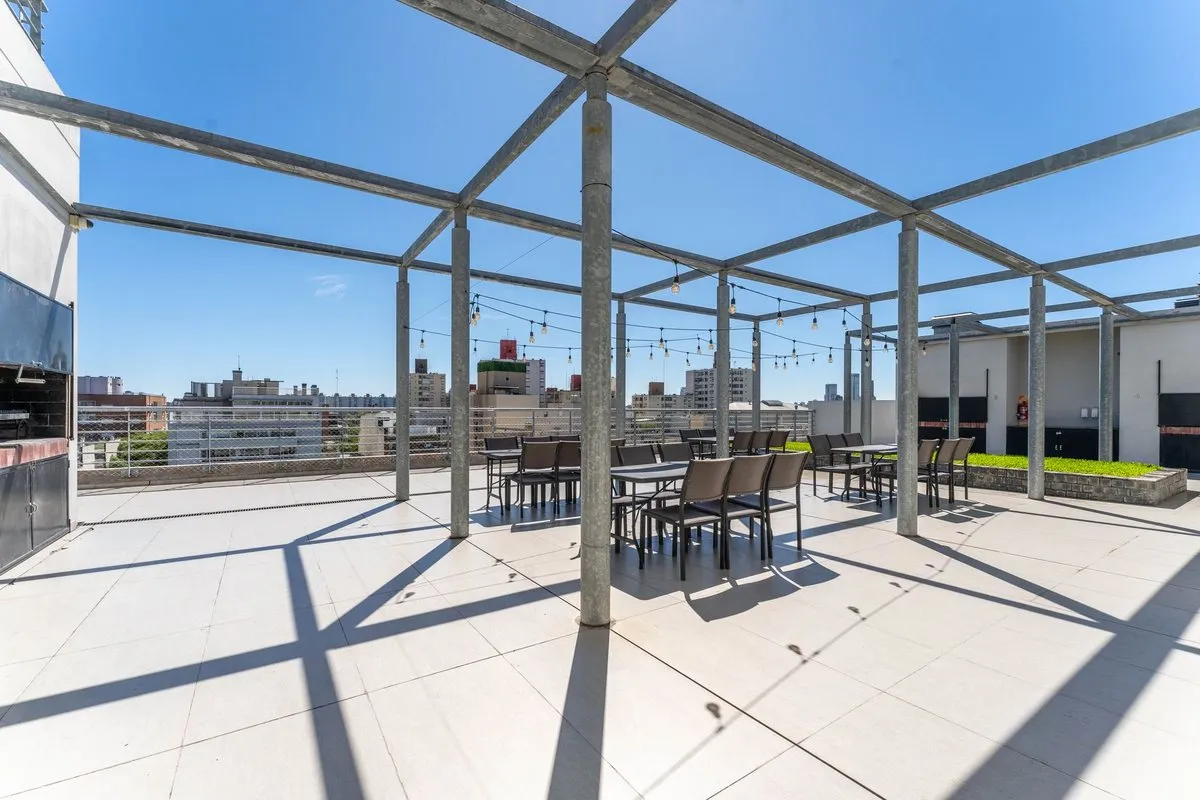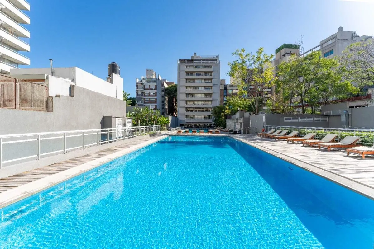 Studio apartment on the 2nd floor in Torre Full Amenities, facing with open views. The living/sleeping area has access to a balcony with open views; the integrated kitchen includes upper cabinets, base units, and a connection for a washing machine. There is a full bathroom with a bathtub. The building has 2 heated pools, a Jacuzzi, solarium, landscaped areas, a gym, sauna, a communal SUM, terraces with grills and panoramic views, a party room, a microcinema, laundry facilities, 24-hour security,