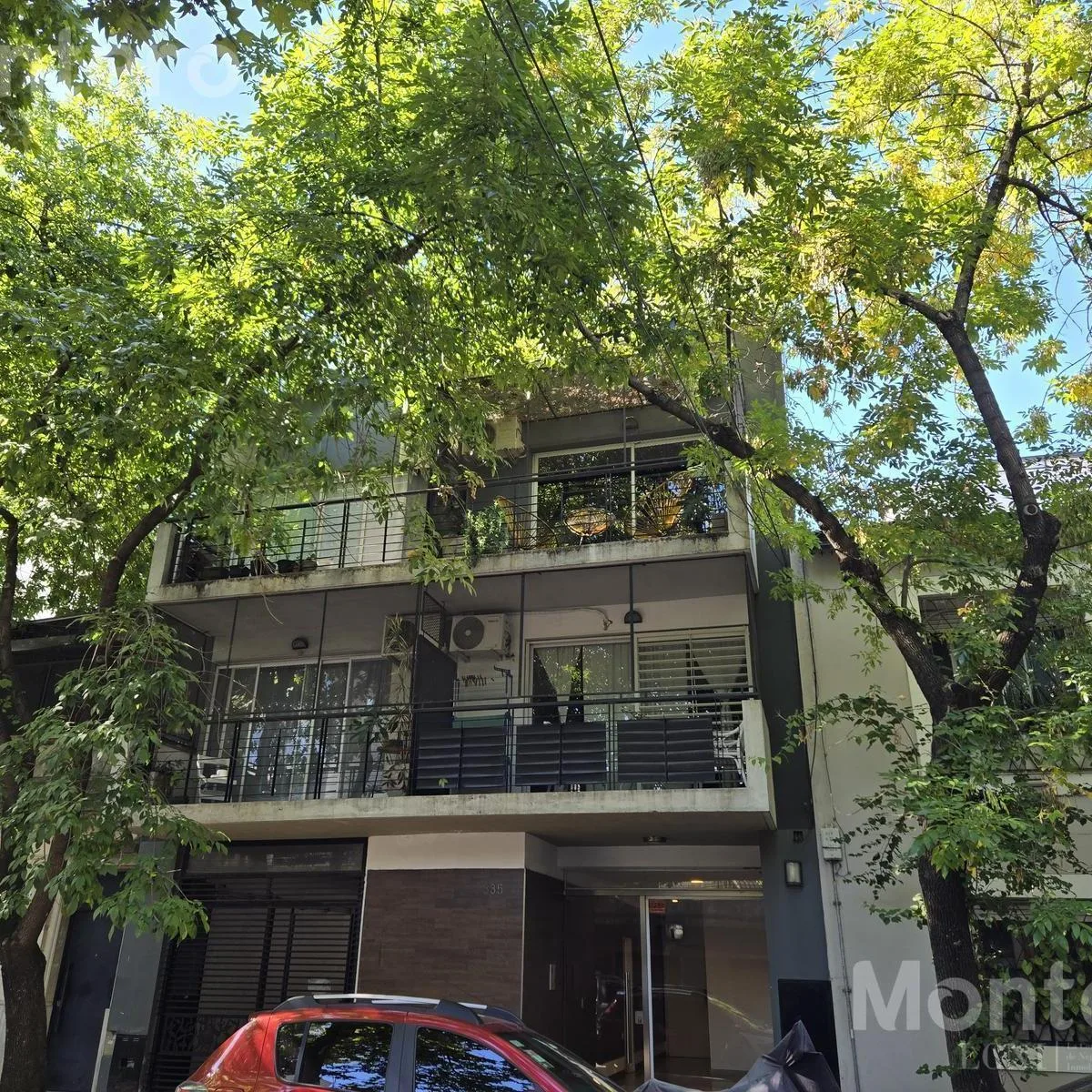 Studio apartment for rent in Colegiales, street-facing on Delgado near Av. Newbery, 2nd floor, west orientation. 32.53 m² covered, with a balcony. Includes covered assigned parking space. Integrated kitchen with upper and lower cabinetry, electric cooking appliance, full bathroom, central hot water, and split air conditioning for heating and cooling. Building amenities include a terrace with a grill and a laundry. Pet-friendly and suitable for professional use; applicants require verified income