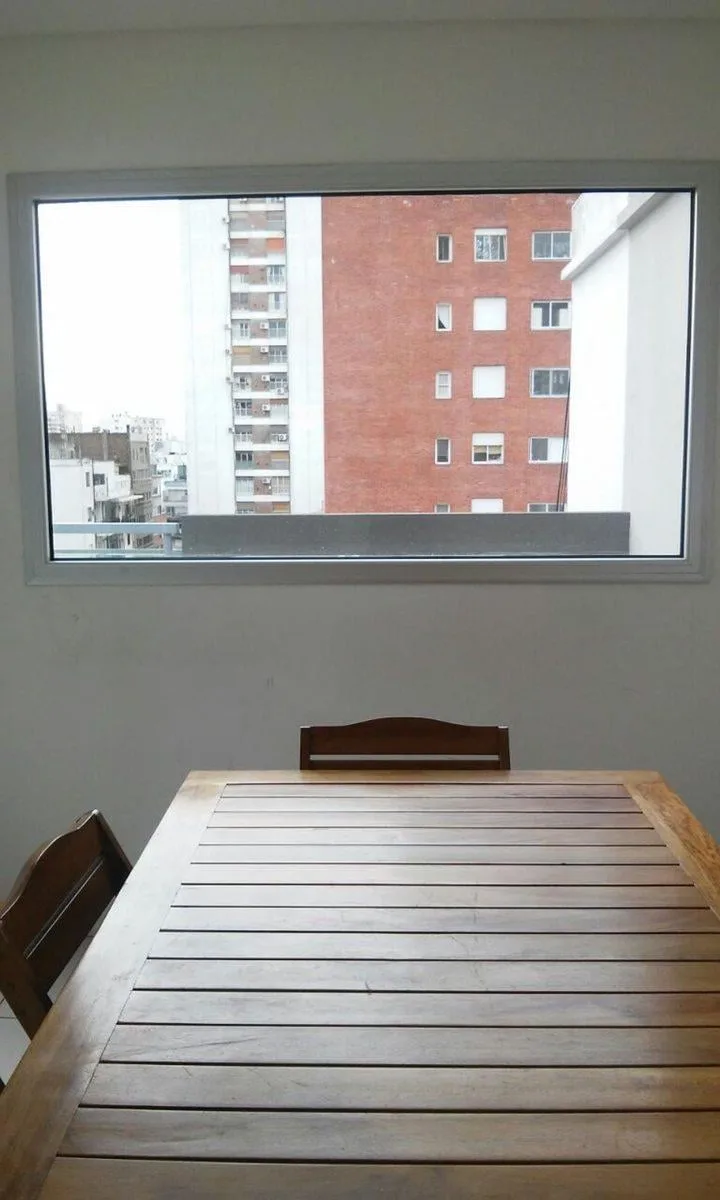 Studio apartment for rent in Colegiales with a balcony. Located on the 3rd floor of a 7-storey building, courtyard-facing (contrafrente). Covered area is 29 m², with a 4 m² semi-covered balcony. Separate full bathroom, a fitted kitchen with storage and an electric oven, hotplates (anafes), and hot water from central system. Cold-heat air conditioning is installed. The building has a communal rooftop terrace with a grill (parrilla). Rental is unfurnished and pets are not accepted. Rent starts fro