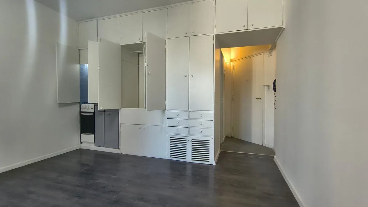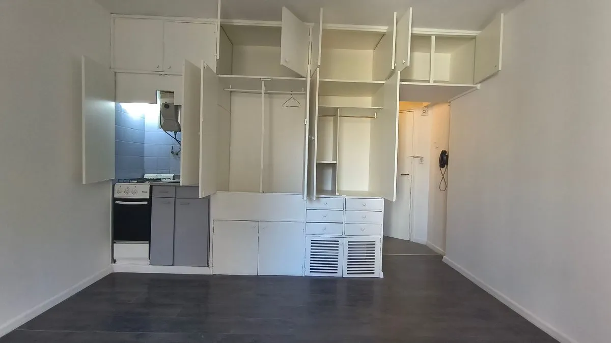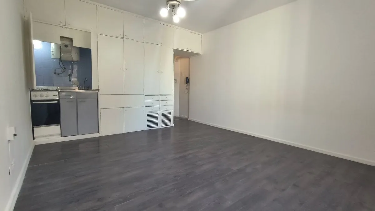 Studio apartment of 24 m² on Estados Unidos street, on the 2nd floor of an 11-storey building. Single room with an integrated kitchen, full bathroom and a storage closet. Building has a lift; basic services include electricity, water and gas, and there is a connection for a washing machine.
