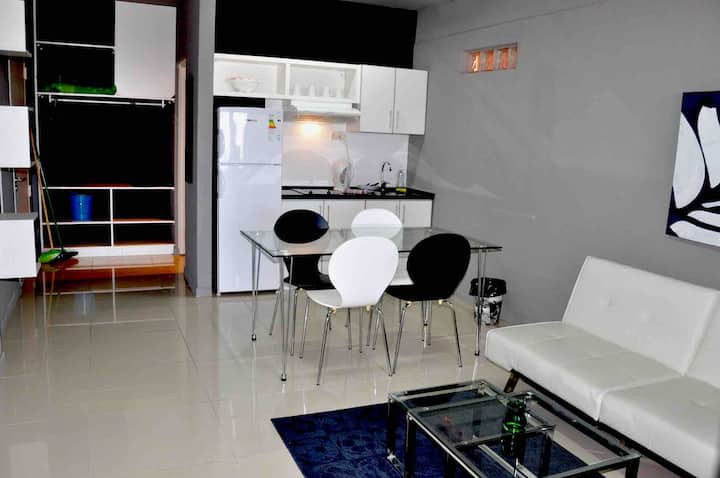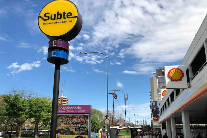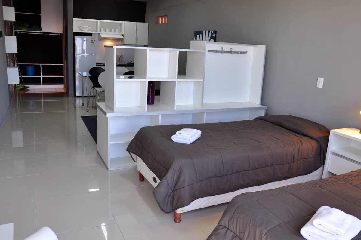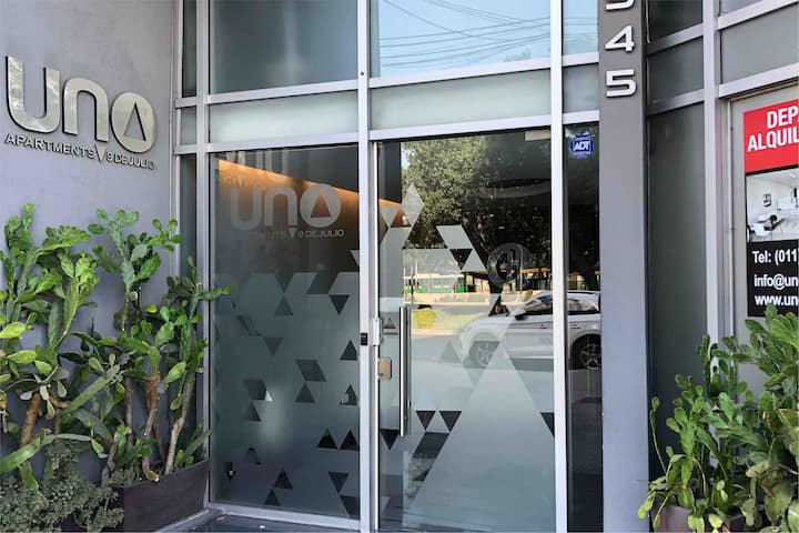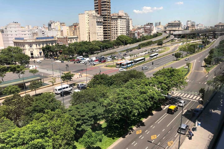 Studio apartment of 45 m². Located on Av. 9 de Julio in Constitución, a few steps from San Telmo. The apartment has large windows, porcelain floors, an equipped kitchenette with refrigerator with freezer, ceramic hob and dishware, and a living area with a flat-screen cable TV, plus air conditioning with hot/cold. The bathroom has a shower. The building has a terrace on the 13th floor with views in north, south, east and west directions; smoking is allowed. Access to the grill requires prior rese
