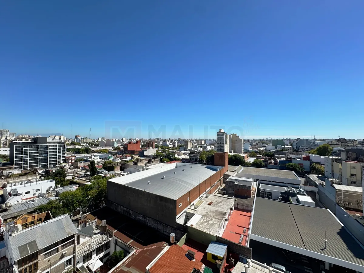 Studio apartment with a balcony in Flores. Living-bedroom area integrates with the kitchen, with large windows and natural light; bathroom details are not specified. Building fees are ARS 120,000. The contract is for 2 years, with rent paid in Argentine pesos and quarterly increases based on the IPC (INDEC). A fire insurance policy must be taken out at the start of the contract at the tenant’s expense. Rental intake requires an upfront rent payment of ARS 500,000 and a USD 500 deposit; options f
