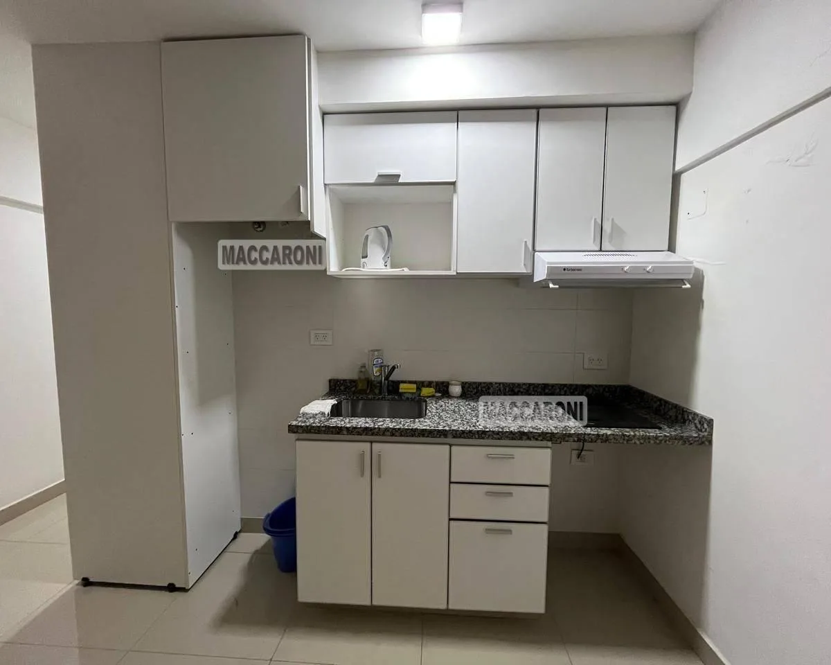 Studio apartment in Flores, Capital Federal, courtyard-facing (contrafrente) with a balcony. Located on Av Alberdi. Building fees are included together with Aysa and ABL.