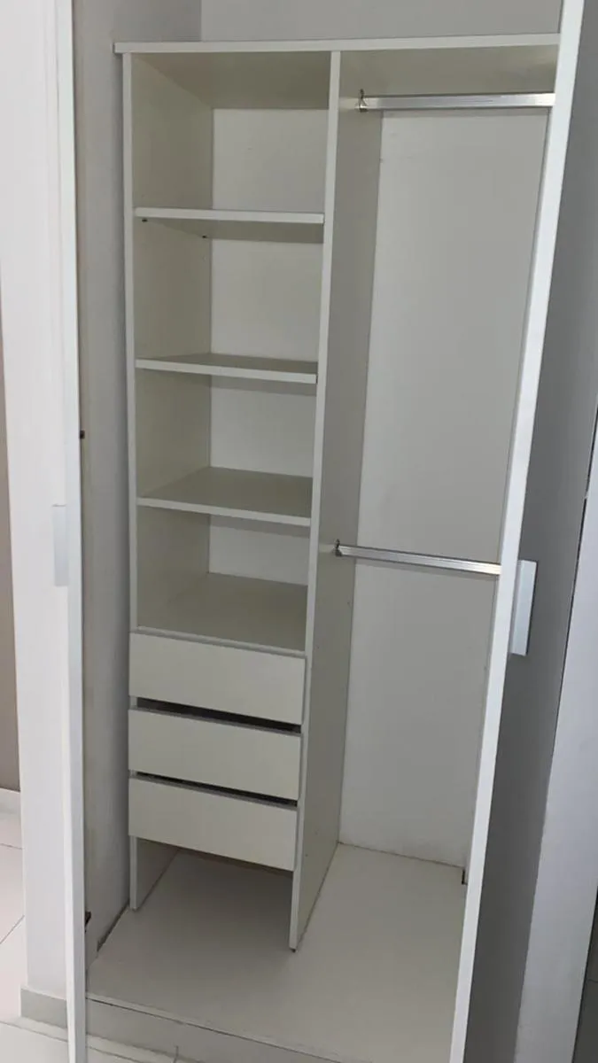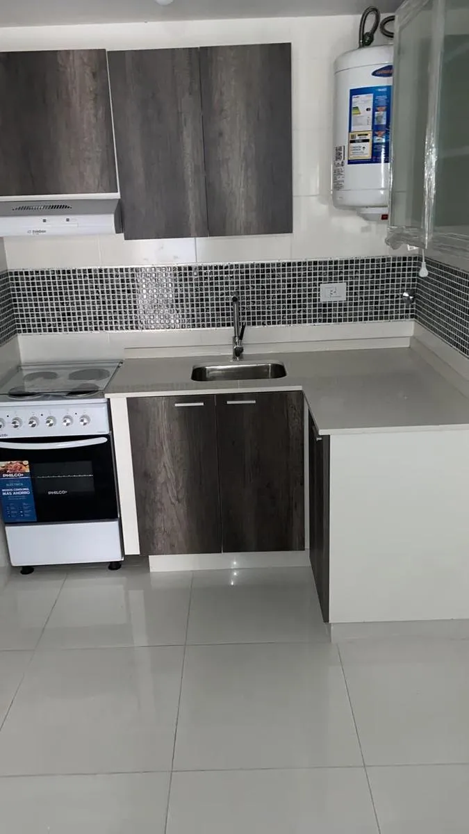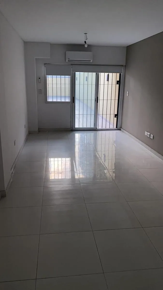 Studio apartment of 1 room in Flores, divisible and suitable for professional use. Includes a balcony, air conditioning with hot and cold settings, and a fully equipped kitchen with pantry and countertop and base cabinets. It has a full bathroom with a bathtub. All-electric unit. Rental terms note that the stated m² and partial room measurements are approximate.