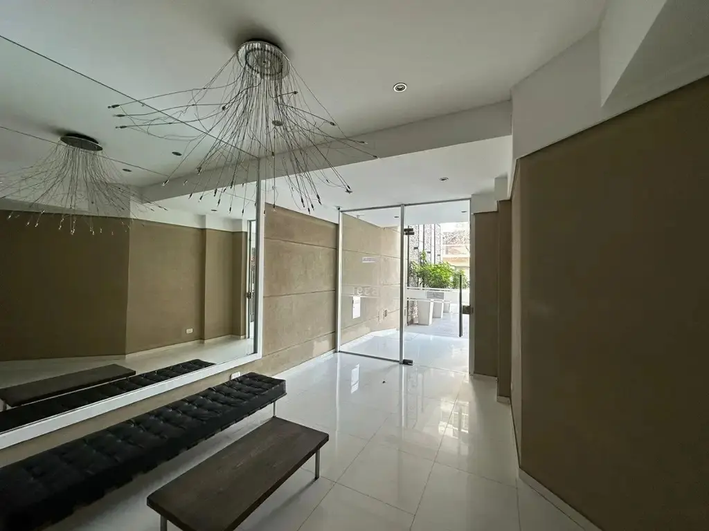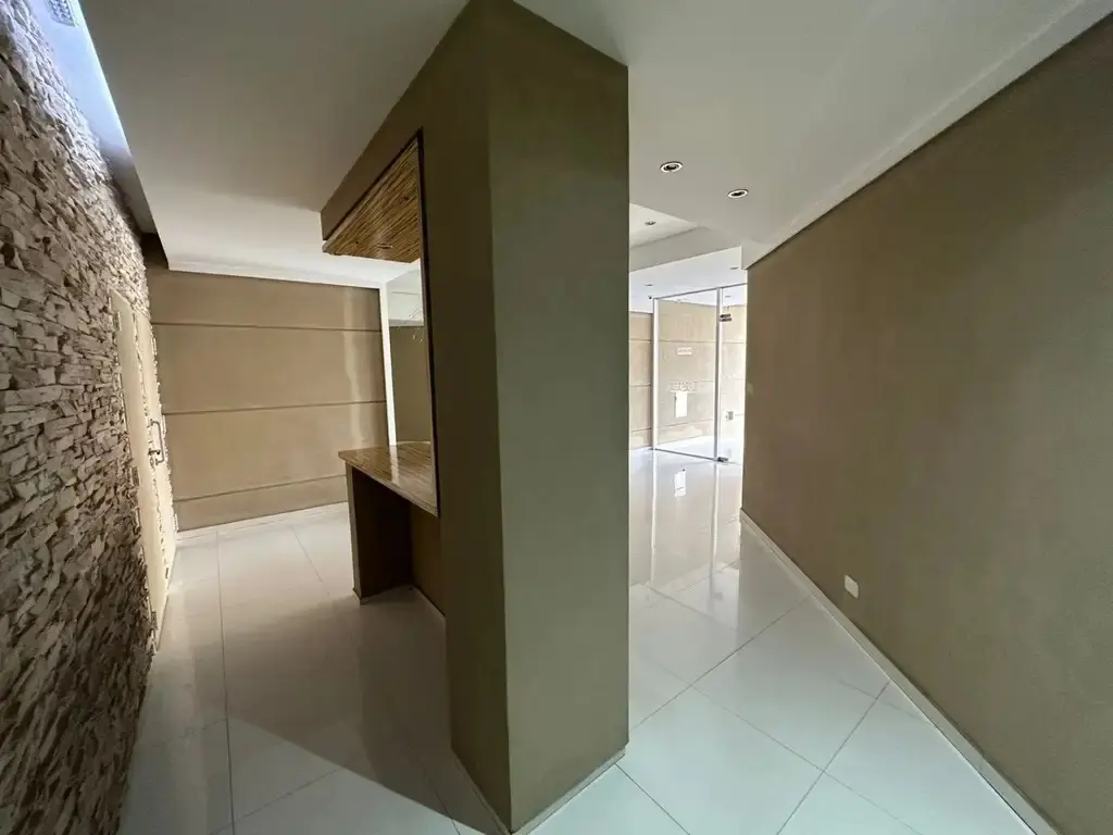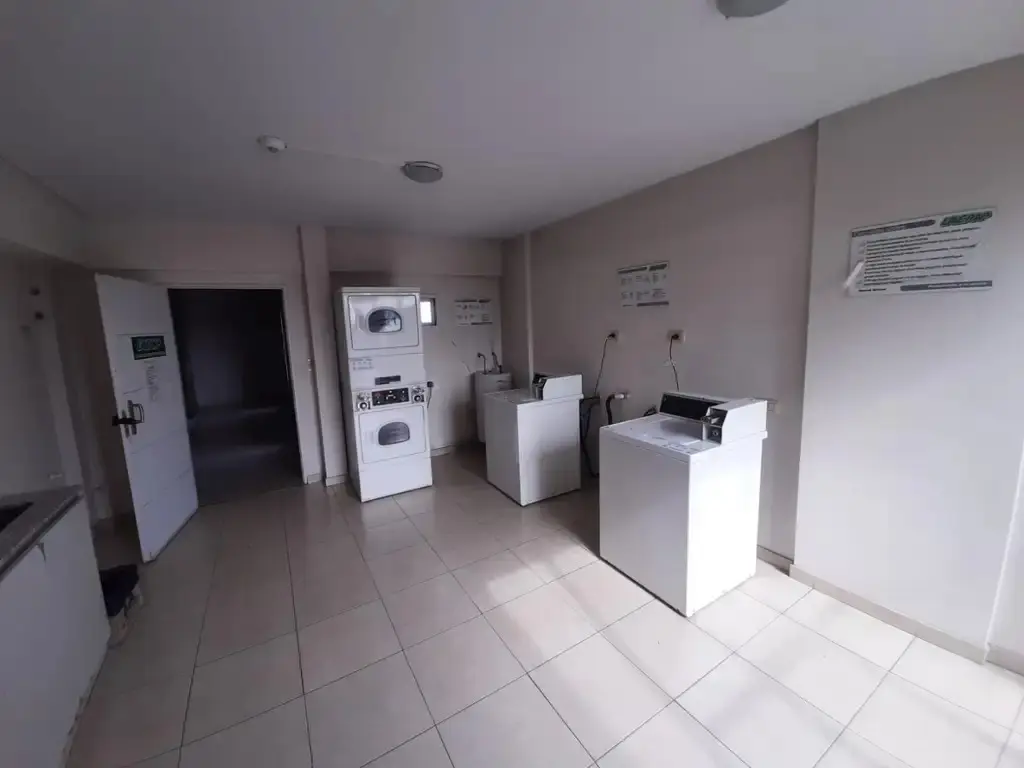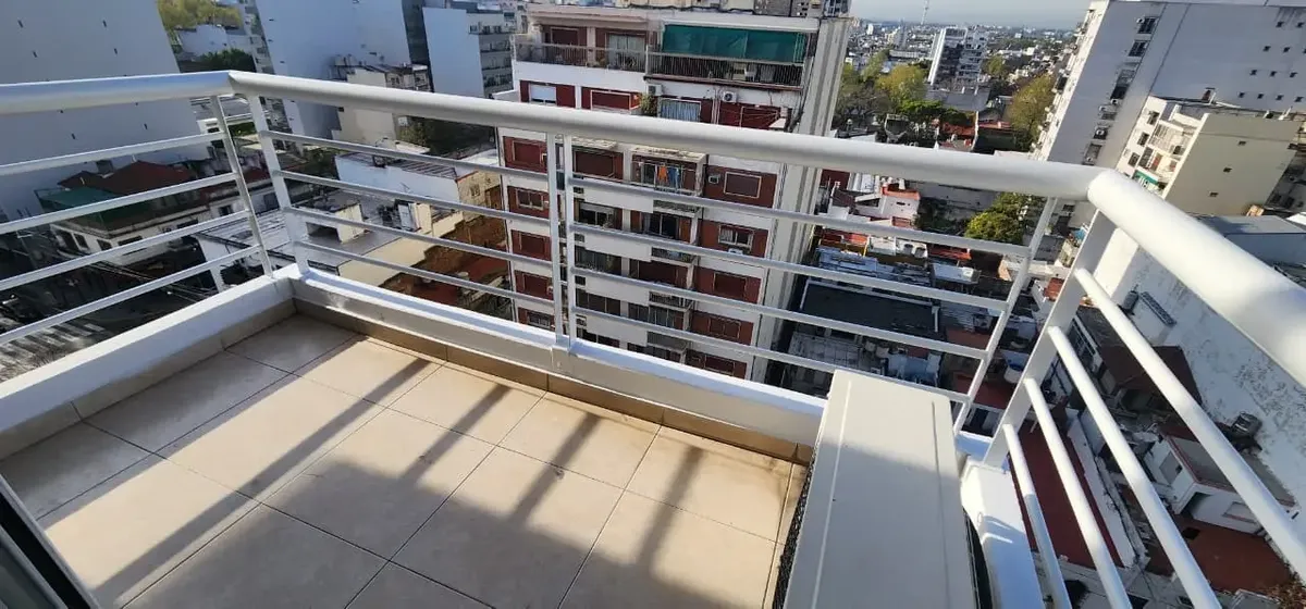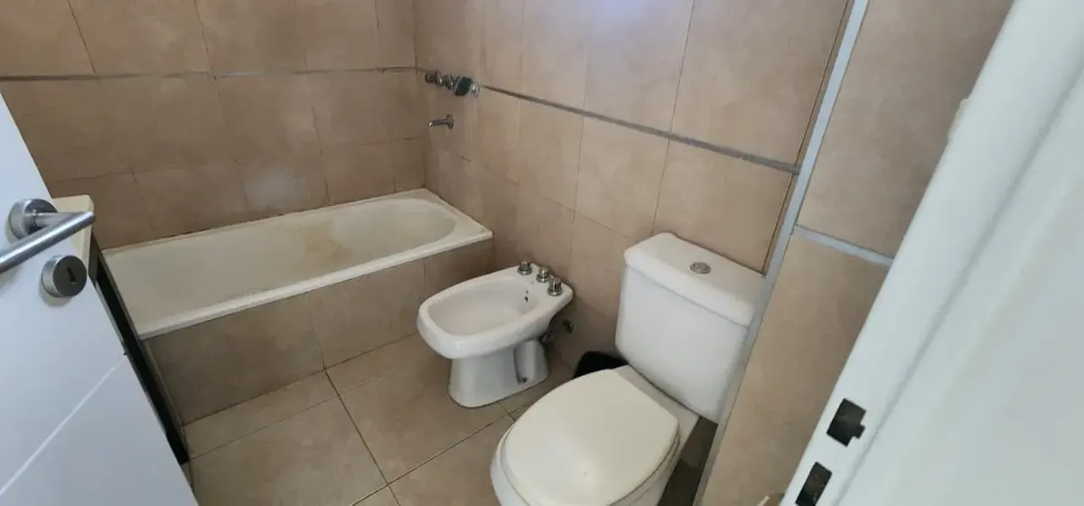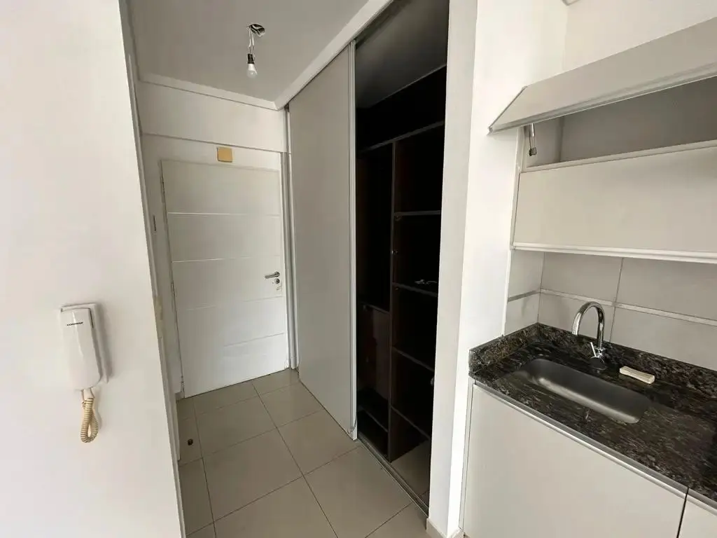 Studio apartment at the front of the building with a balcony. Divisible layout, with a full bathroom and large built-in wardrobes. Porcelain tile floors and professional use permitted. The building has a communal room, a grill and a laundry; building fees include AYSA. Total area: 42 m².