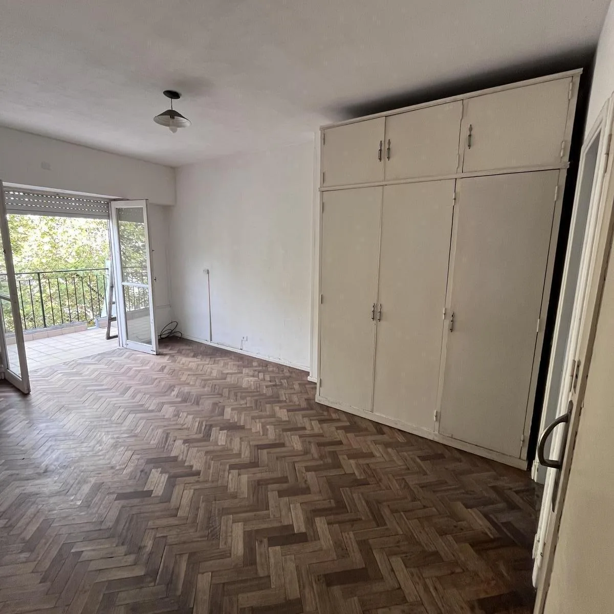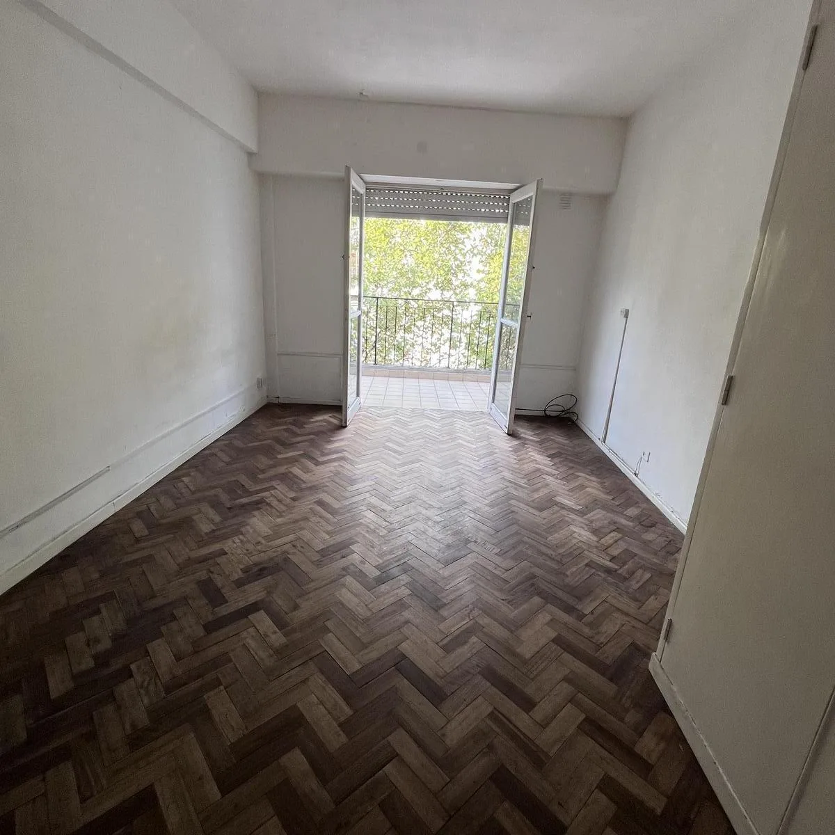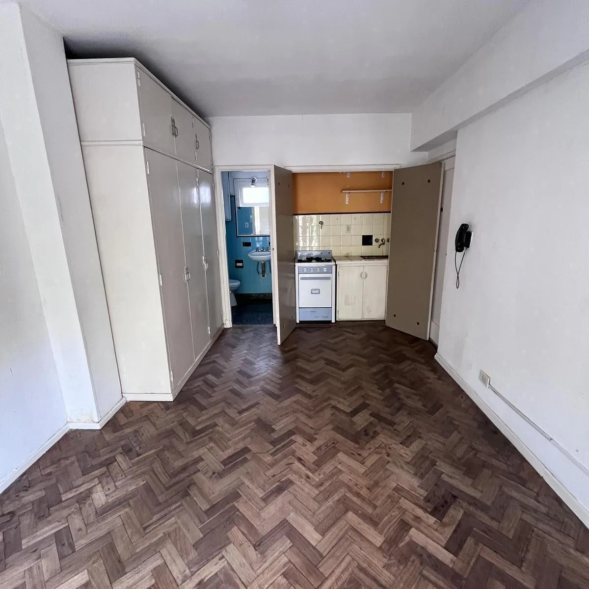 Studio apartment facing the street in Flores, 8th floor, east-facing, with a balcony. Main room measures 6.00 x 3.00 m with parquet flooring in good condition and direct access to the balcony; balcony measures 2.00 x 1.50 m. Integrated kitchenette with a gas oven and gas water heater (calefón) and a functional bathroom with multifaz. The building has 8 floors, 3 units per floor and 1 elevator; building fees are ARS 55,000. Rent is ARS 430,000 per month for a 2-year contract, with quarterly adjus
