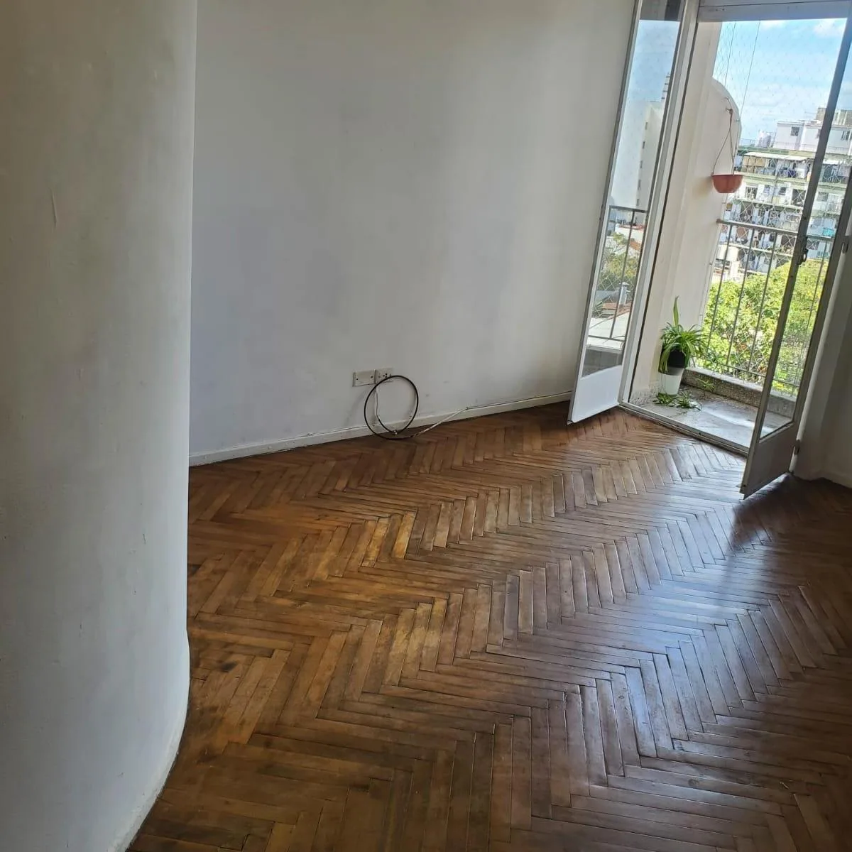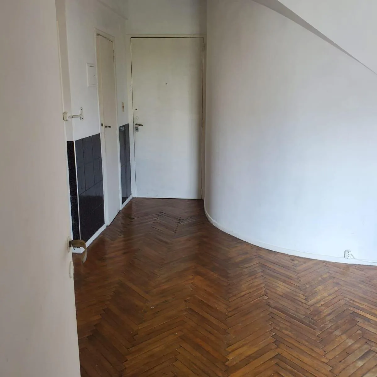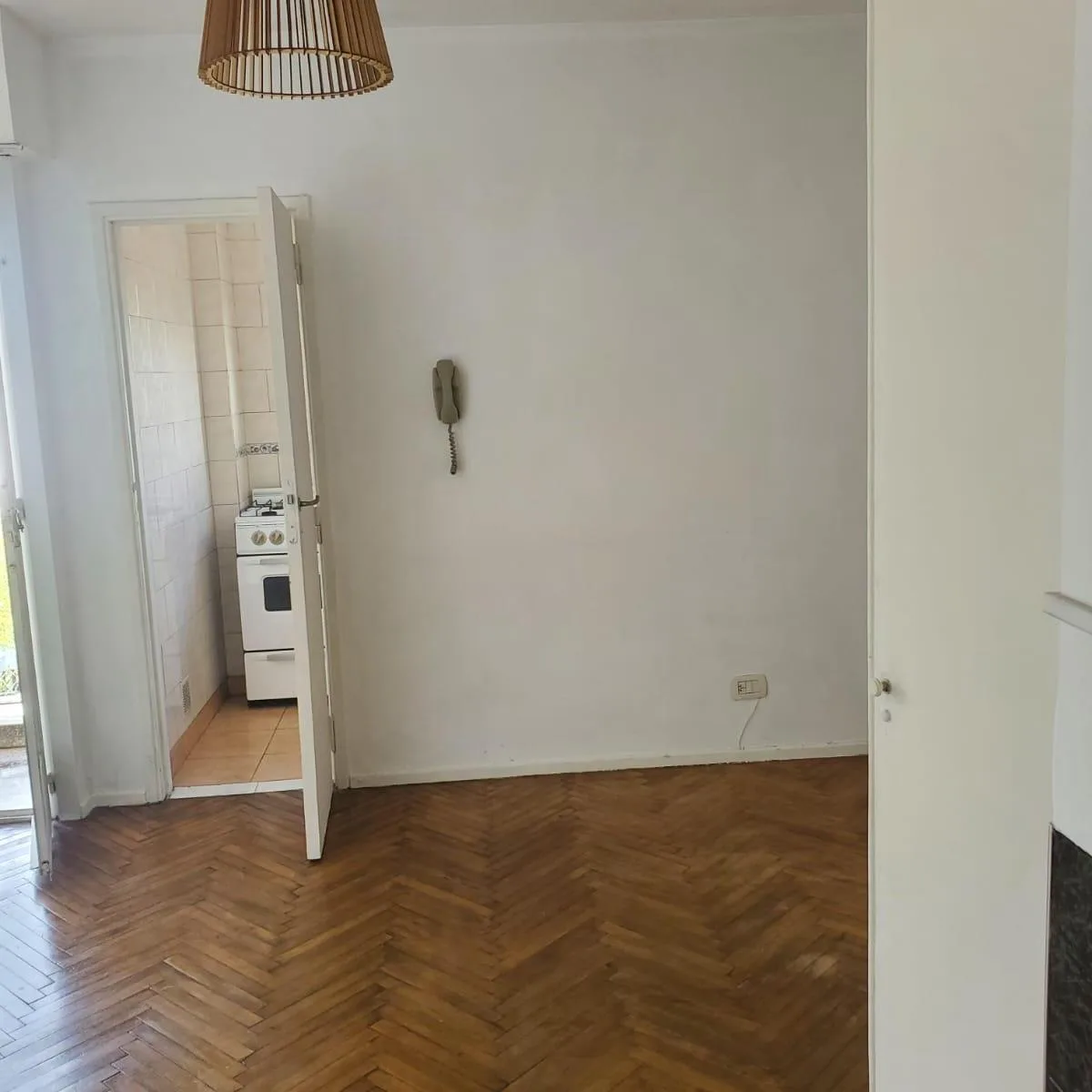 Studio apartment with a separate, spacious kitchen, built-in closet and courtyard-facing balcony. Full bathroom fittings include an enclosed shower area. Located on the 7th floor in a building on a commercial street, about 3 blocks from Subte Line A and the Metrobus on Av. Rivadavia.