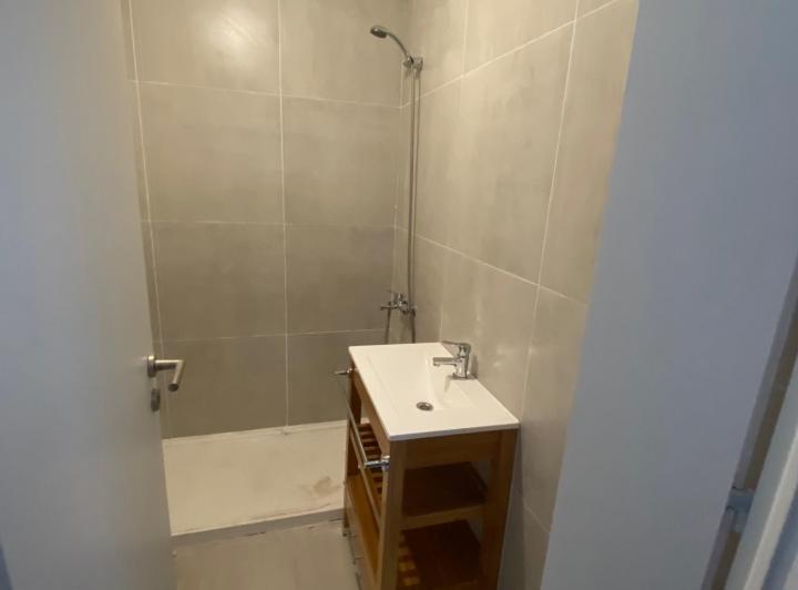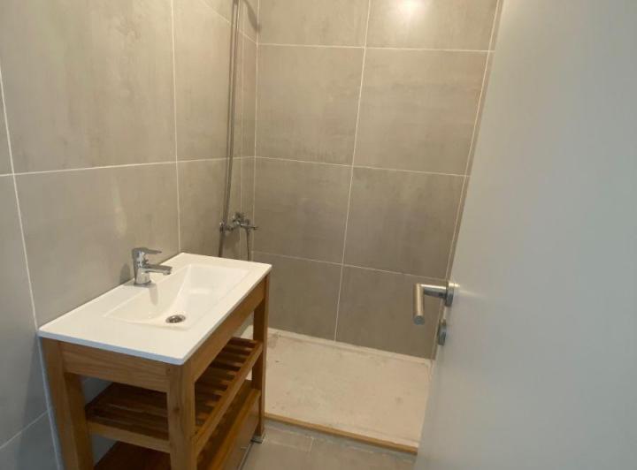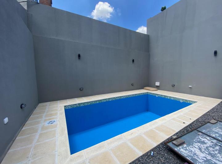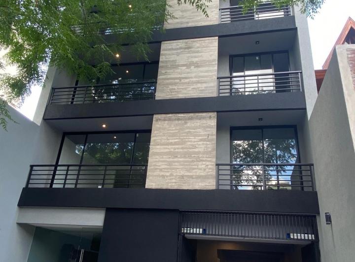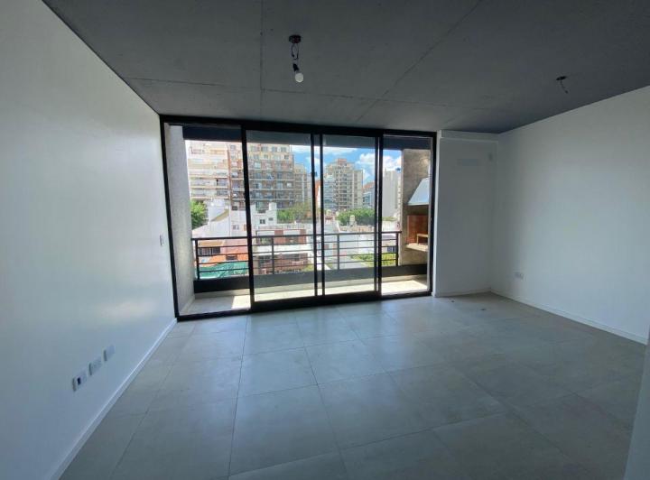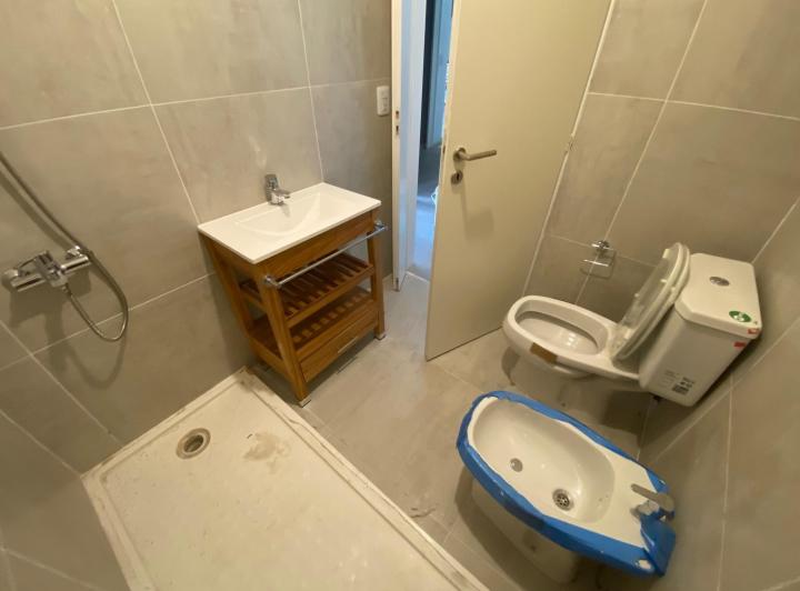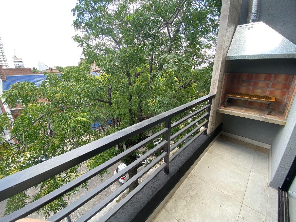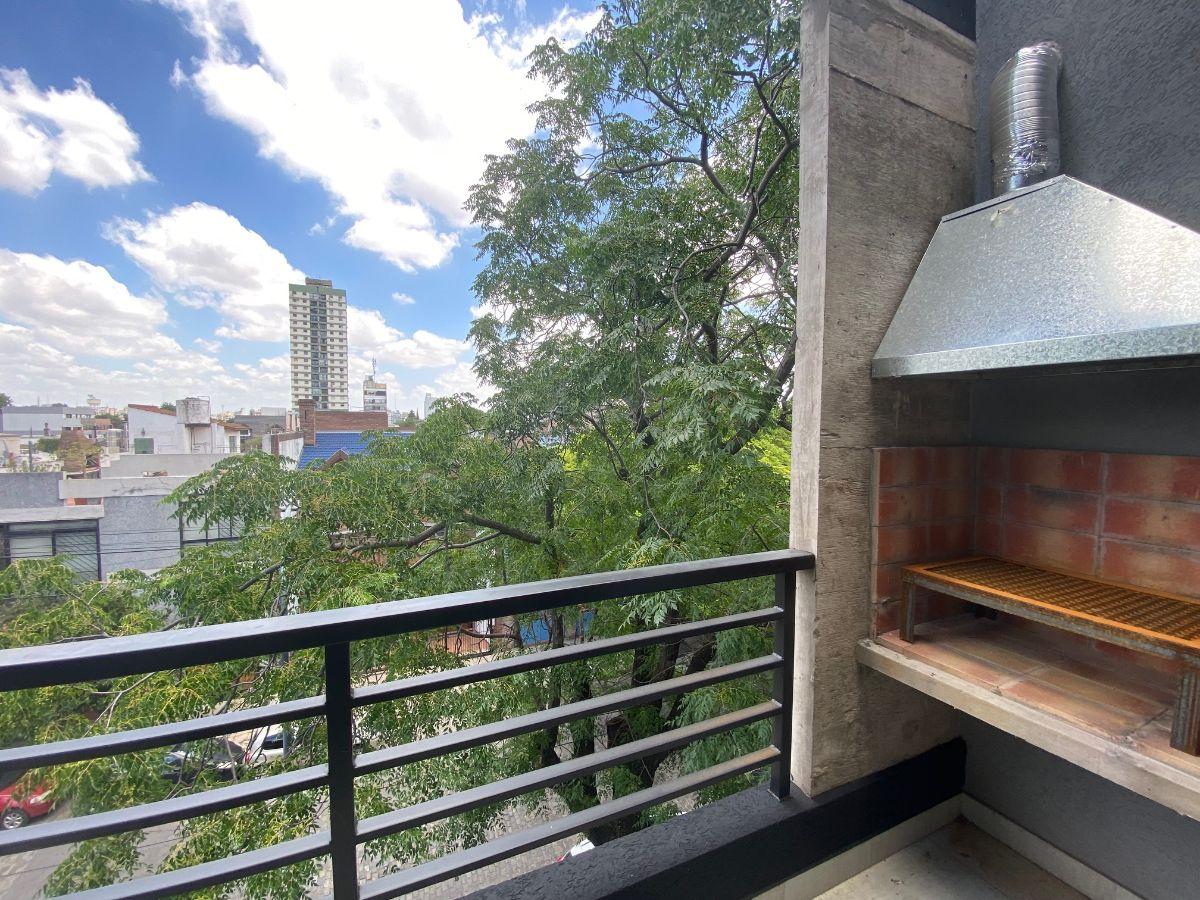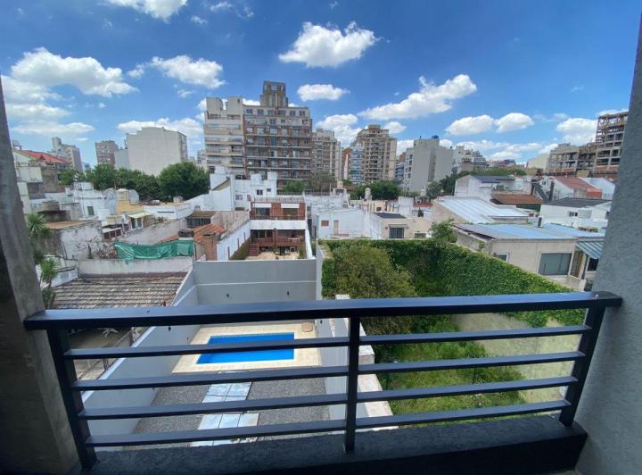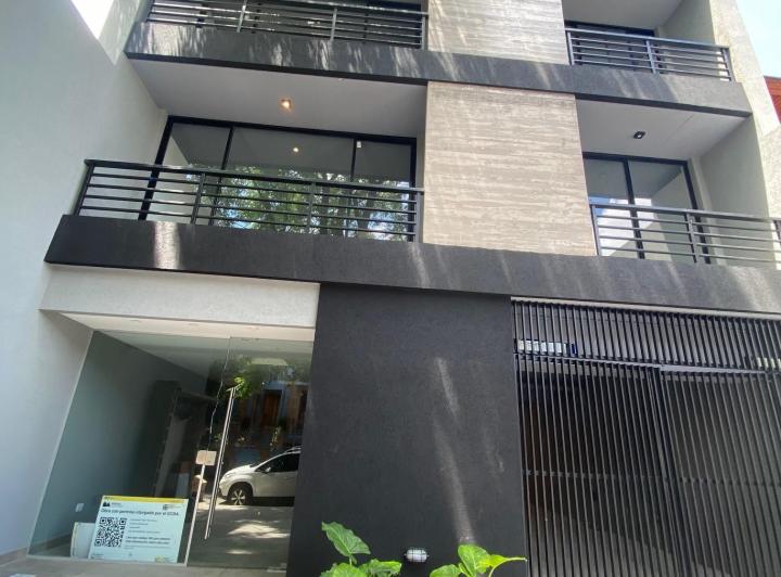 Studio apartment with a balcony courtyard-facing (contrafrente), with an individual BBQ grill. Covered bathroom, double-glazed windows (DVH), porcelain tiles and built-in storage. The kitchen has fitted cabinets and a breakfast bar. The building has a pool and a solarium. Optional parking space is available; location is on Calle Caracas at 800, near Av. Gaona and Av. Boyacá.