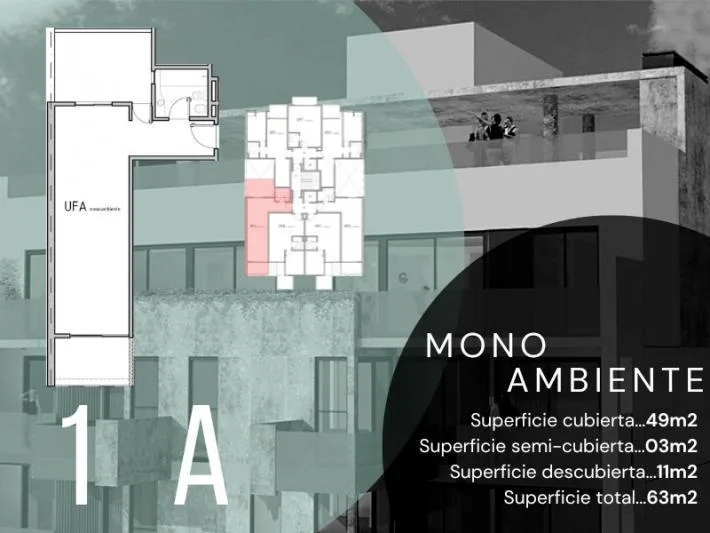 Studio apartment in Flores with 49 m² covered area. It has a full bathroom with a bathtub, an integrated kitchen and a street-facing balcony. There is also an interior patio. Includes a parking space.