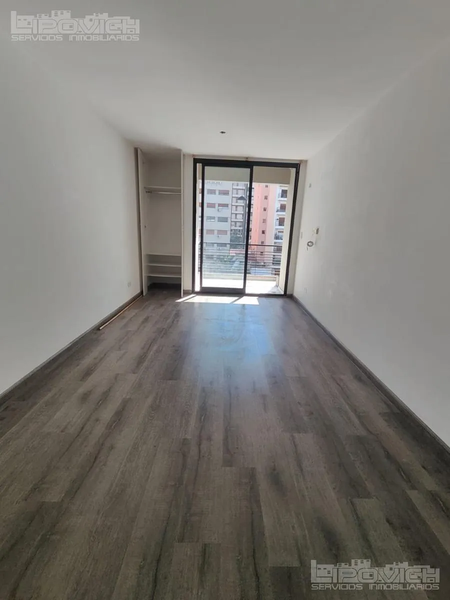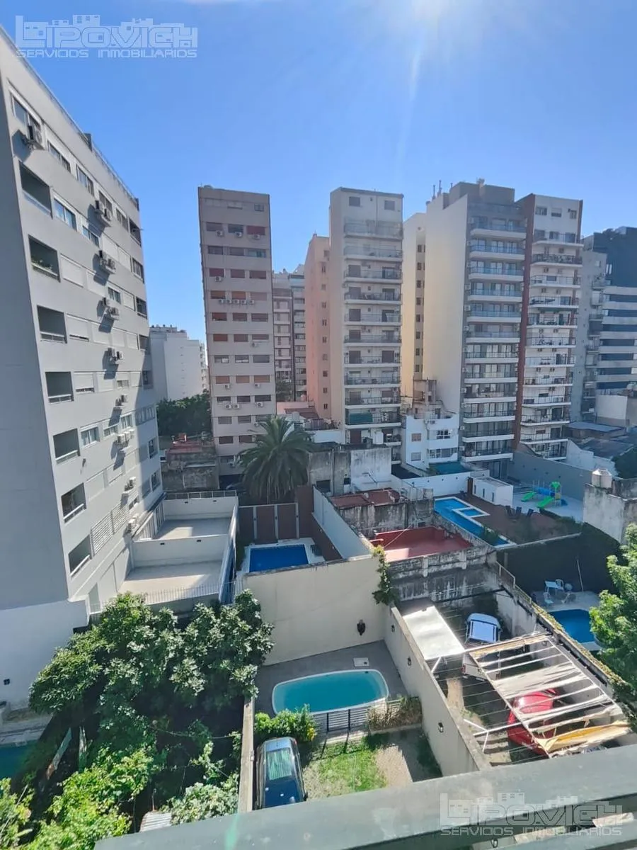 Studio apartment on the 5th floor, courtyard-facing, with a balcony. It includes an electric cooktop and electric oven, a full bathroom, and a ready installation for a split air-conditioning unit. The building has a pool, laundry facilities and a residents’ terrace with a covered grill. Rental contract is for 2 years with quarterly rent adjustments based on IPC or ICL; 1 month upfront and a u$s600 deposit. Building fees, taxes and utilities are paid by the tenant.
