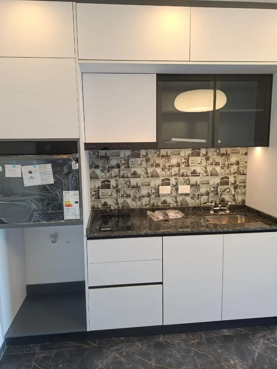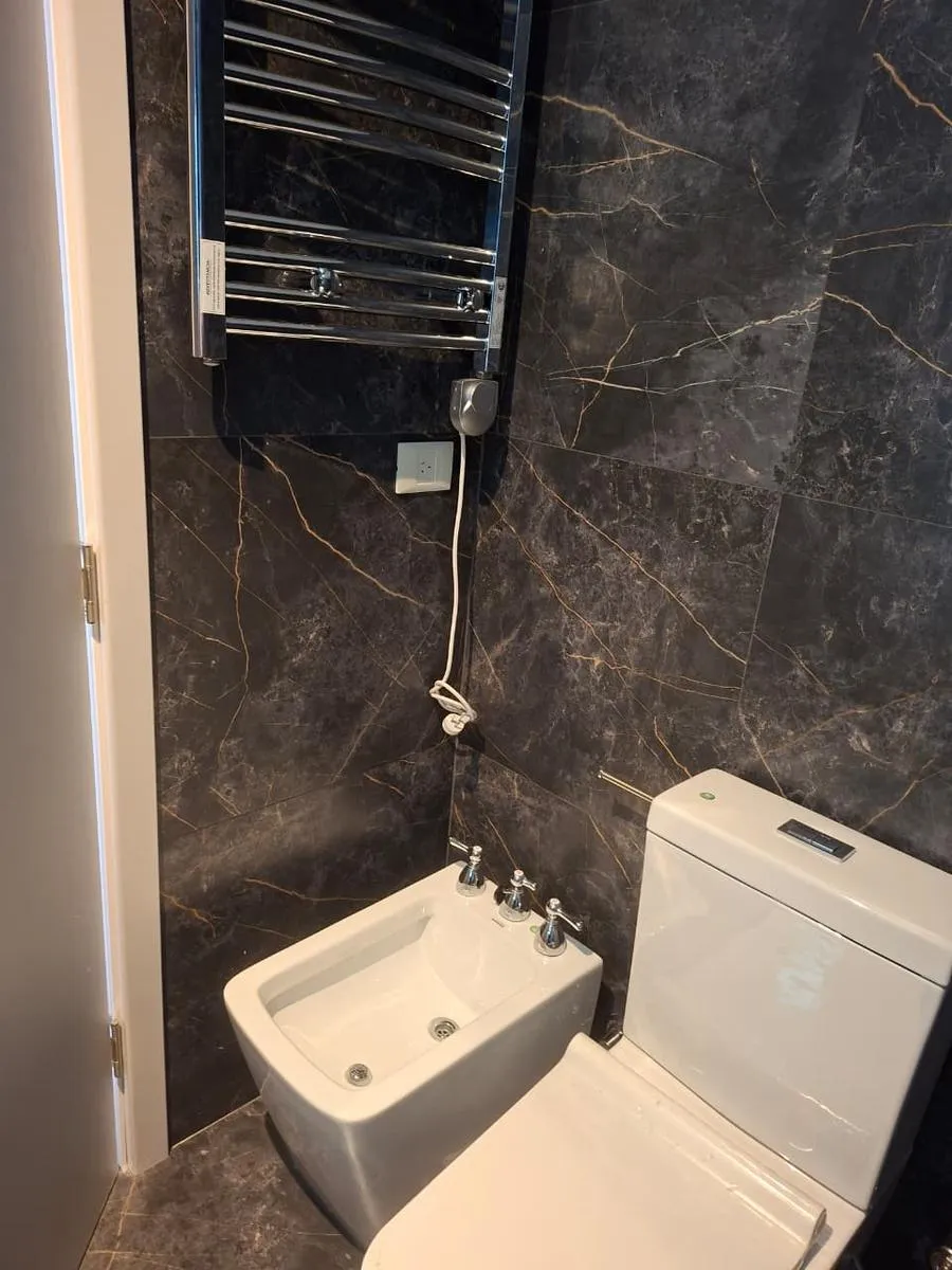 Studio apartment on the 6th floor, street-facing, with a 31 m² balcony. Brand new. Equipped with inverter hot/cold air conditioning, Samsung cooktop and oven, a kitchen hood/purifier extractor, blackout curtains, double-glazed windows (DVH), centralised hot water, and bathroom fixtures including a towel dryer, shower screen, bidet, and ventilation. The unit has fibre-optic internet connected and a dedicated connection for a washing machine. Building amenities include a pool, solarium, gym, grill