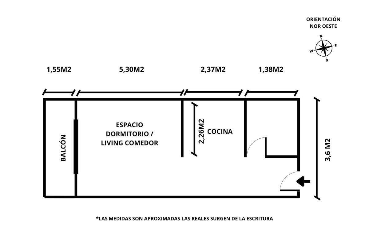 Studio apartment at the front of the building in Flores, with a large balcony and air conditioning. The unit includes a semi-integrated kitchen with a gas oven, a gas balanced-flue heater, and an in-wall wardrobe. It also has a full bathroom and a connection for a washing machine. The building has 24-hour security, a communal room (SUM), a games area, barbecue facilities and a solarium.