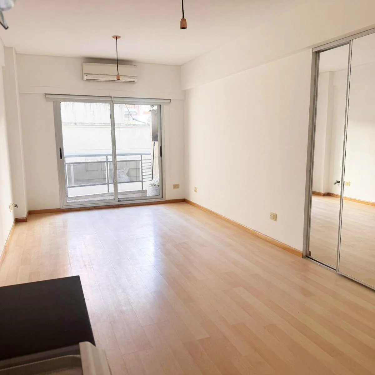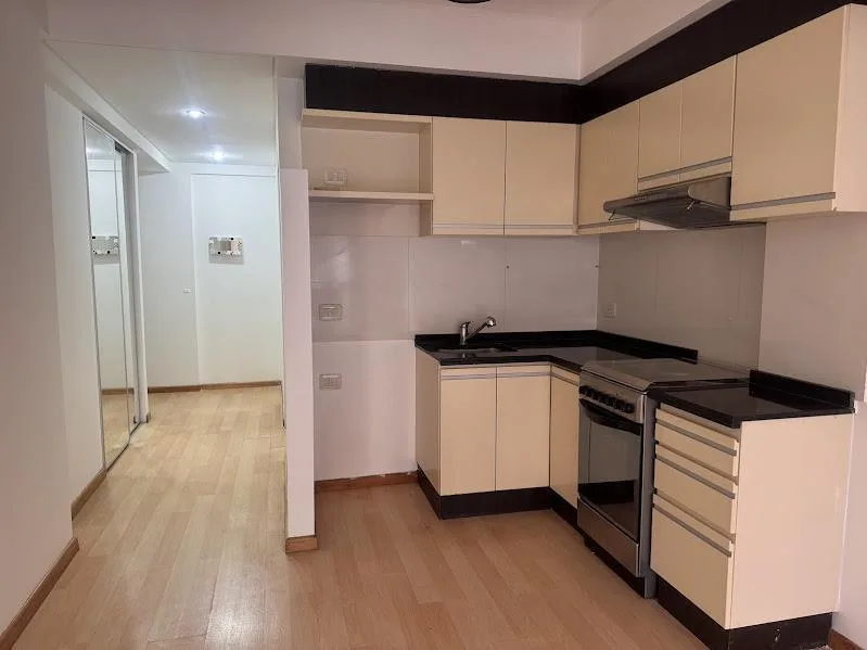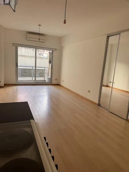 One-room apartment of one studio, street-facing with a balcony, in Caballito on José Bonifacio at 1600. The bathroom is complete and includes a hydromassage feature. The unit has two built-in closets with mirrored doors. The building is 12 years old and includes laundry facilities and a communal grill area on the top floor. Building fees include AySA and gas from the building. Maximum occupancy is 2 people. Rental contract is for 2 years with quarterly adjustments; 1 month’s rent in advance and
