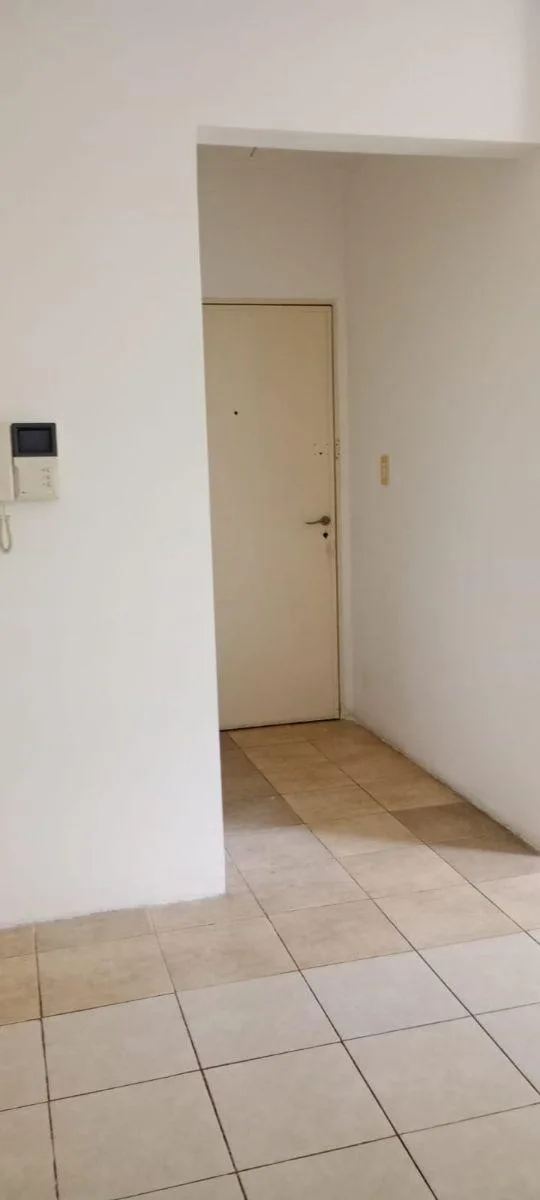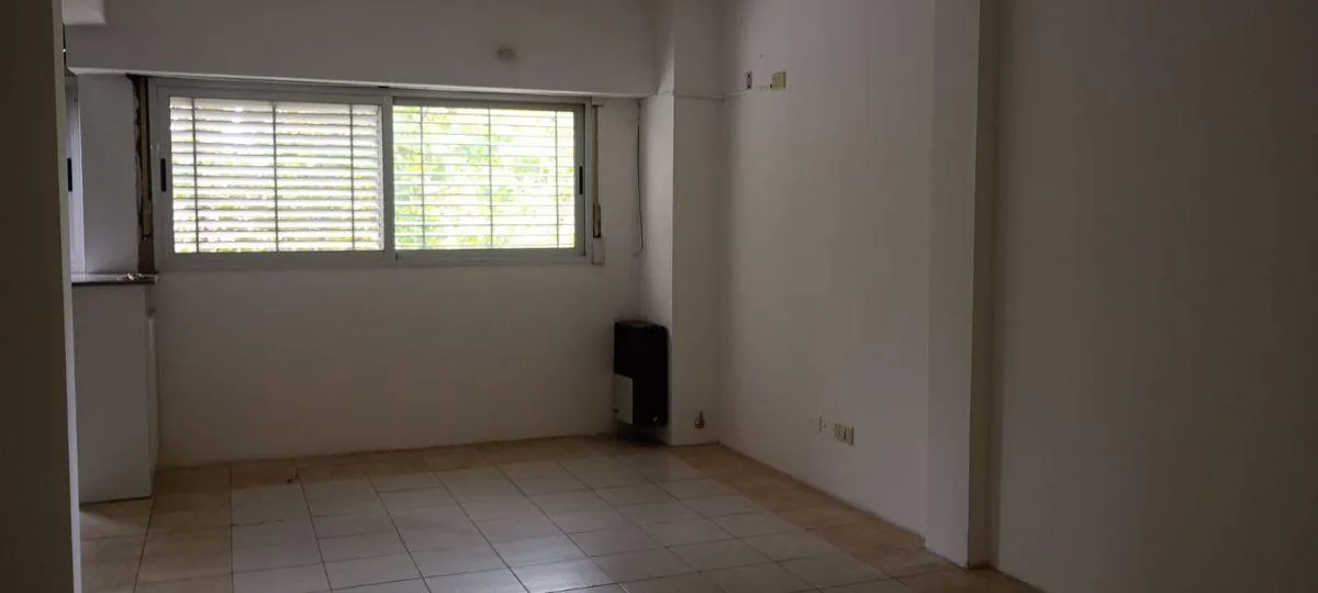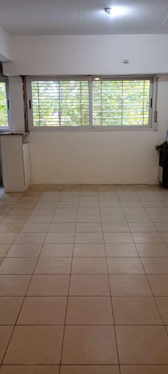 Studio apartment of 25 m² total, street-facing on Calle Coronel Ramón L. Falcón, one block from Av. Rivadavia. It has a complete kitchen with space for a fridge and a washing machine, plus a full bathroom and an anteroom. Large front windows; building fees (expensas) are not charged.