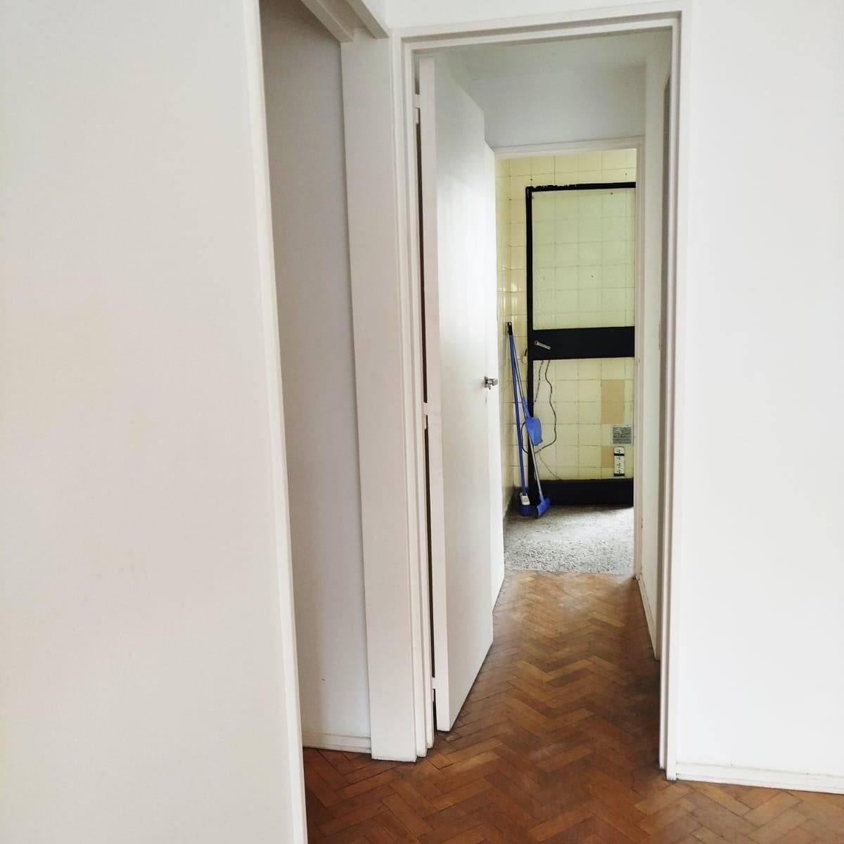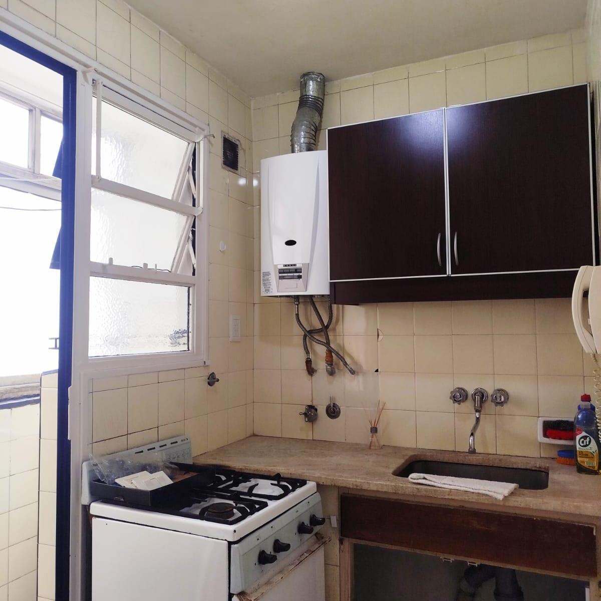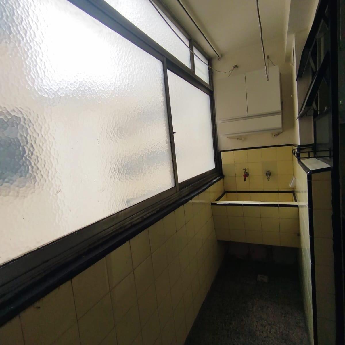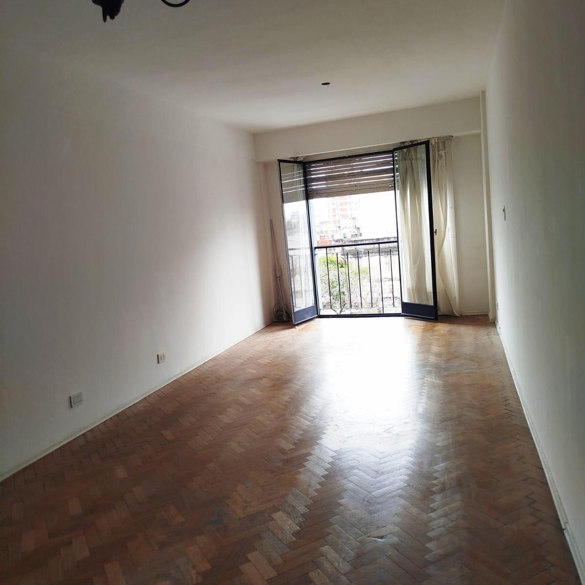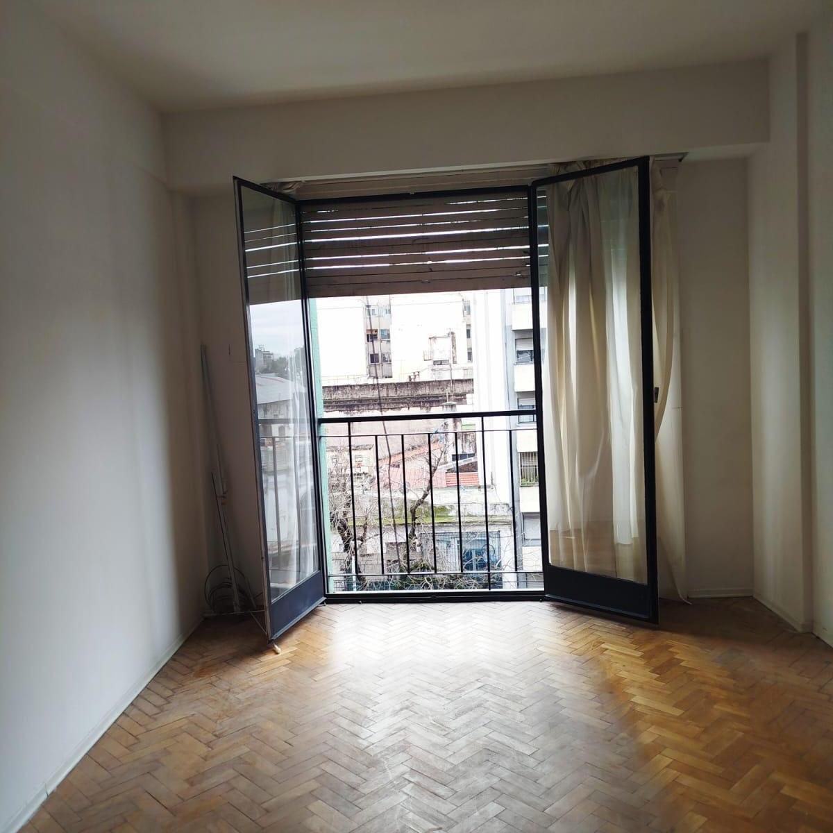 Studio apartment for rent of 30 m², street-facing with a French balcony. Separate kitchen and laundry area. The listing notes that measurements and building-fee figures are approximate and subject to verification based on the property title.