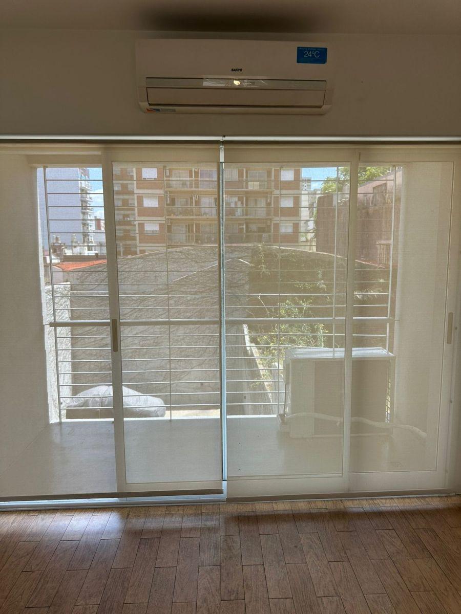 Studio apartment on the 2nd floor, courtyard-facing. Total area of 40 m² with air conditioning, integrated kitchen with electric cooktop and shelving, and a bathroom with tub, vanity, mirror and extractor fan. Includes an approximately 5-metre balcony.