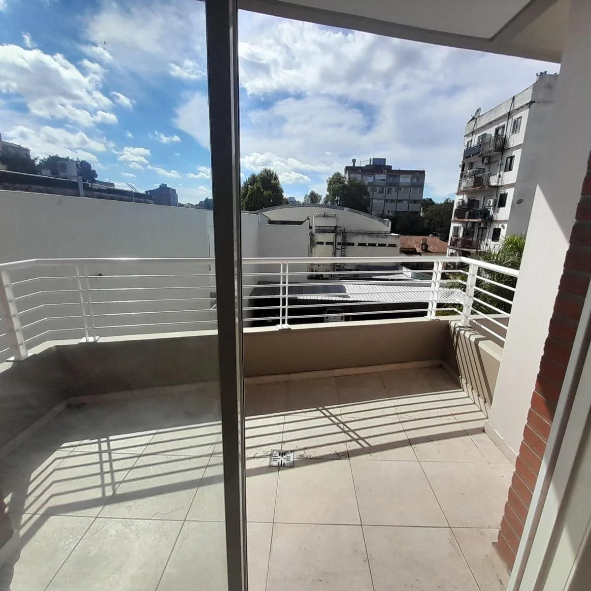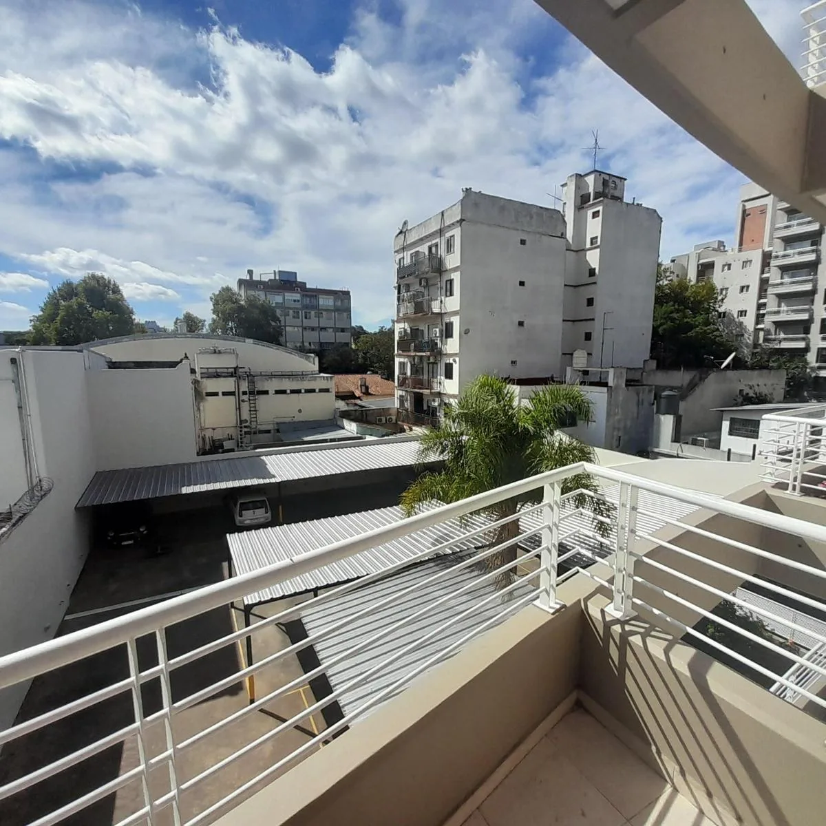 Studio apartment of 38 m², with a balcony on the courtyard side, in General San Martín. It has a separate kitchen, a full bathroom, built-in wardrobes in the living room and an additional closet in the hallway, and hot/cold air conditioning. The building has 2 elevators and is about 400 metres from Estación de tren Villa Ballester (fcgbm).