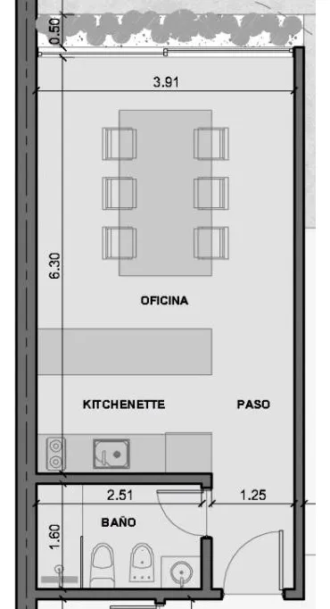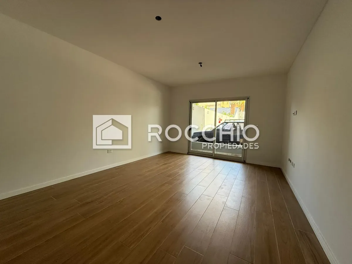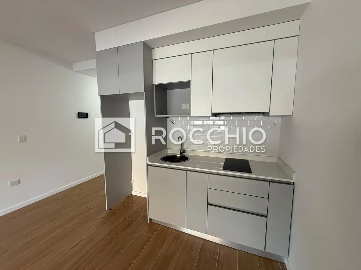 Ground-floor studio apartment for residential or professional use in Villa Ballester, General San Martín. It has a kitchen integrated into the main room, a full bathroom with shower, and an additional balcony facing the interior block courtyard. The electric kitchen includes Silestone worktops, FV taps and minimalist fitted cabinetry; the bathroom has FV taps and Ferrum sanitaryware. Double-glazed windows (model A30) provide thermal and acoustic insulation.