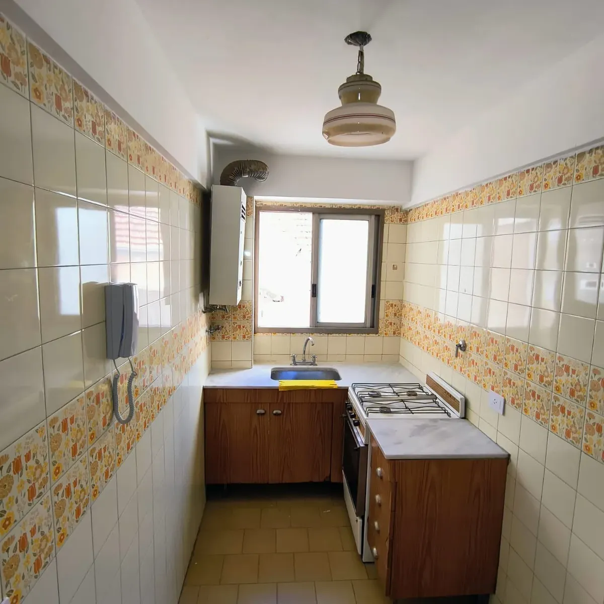 Spacious studio apartment with a separate kitchen and a French balcony. One bathroom measuring 1 x 1 m.