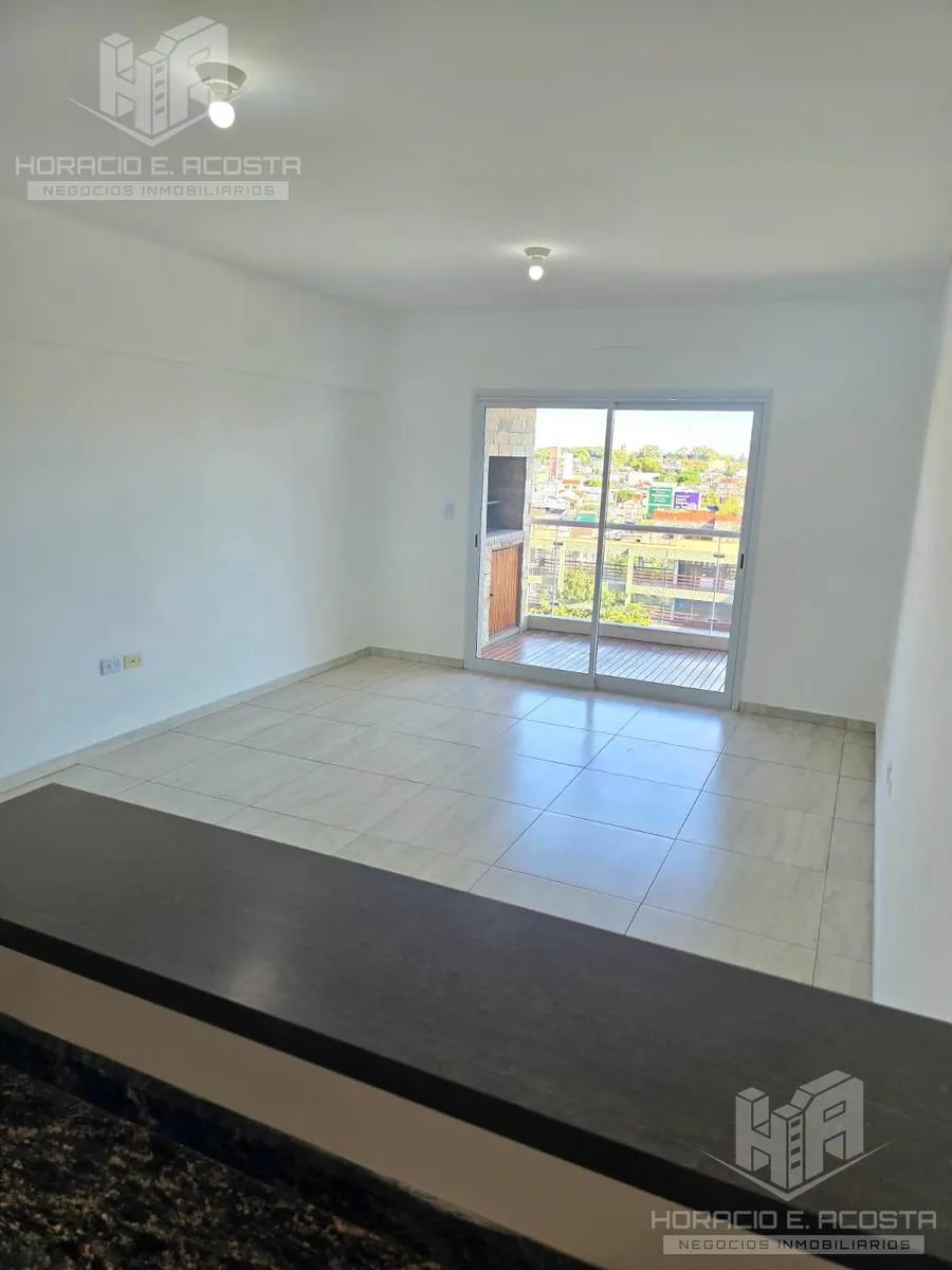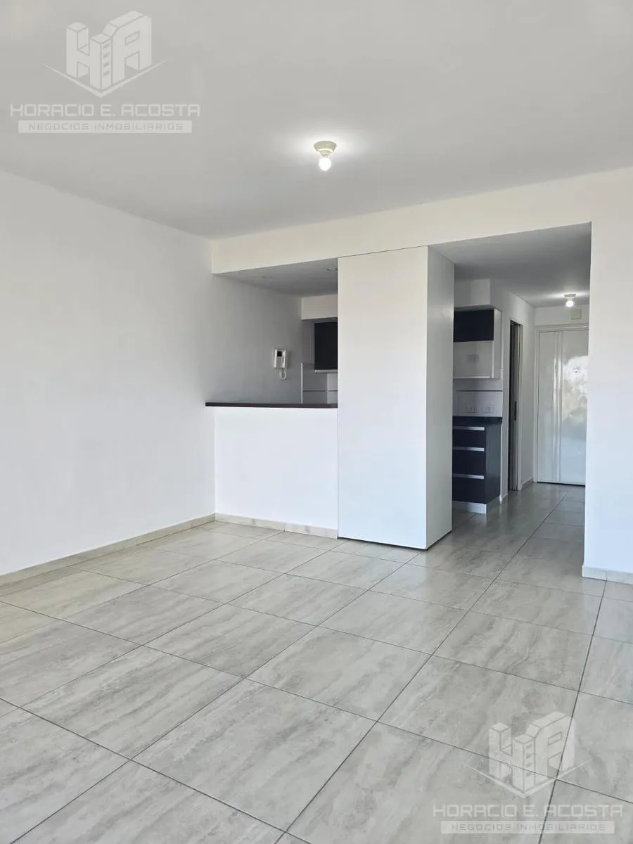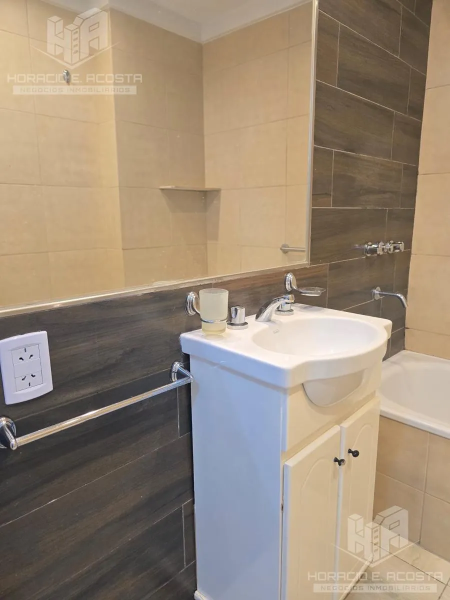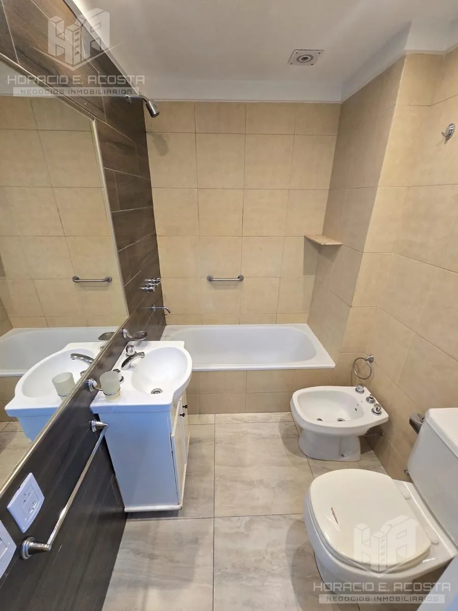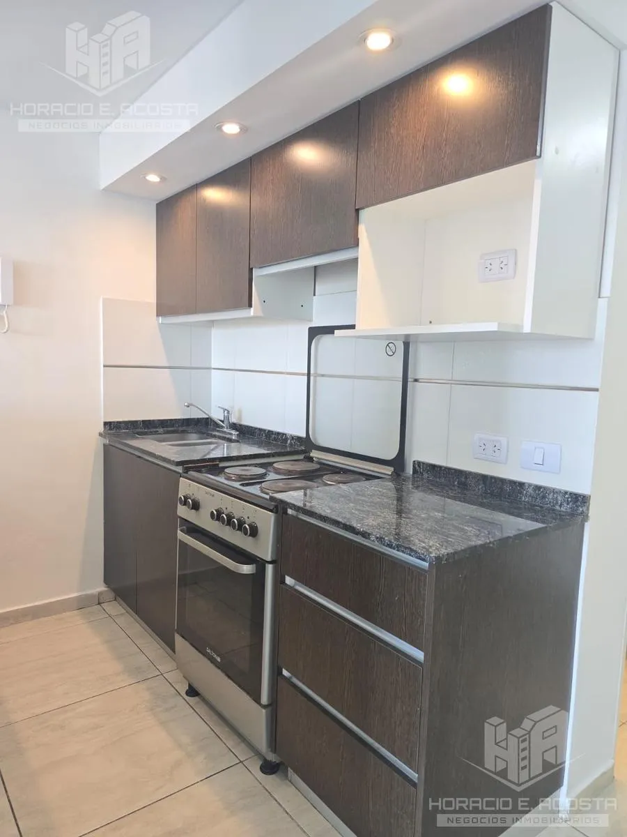 Studio apartment in the centre of General San Martín, on Calle Rivadavia between Salguero and Carrillo, courtyard-facing with a balcony. The unit has a lateral 4-door sliding closet with complete interior, an electric water heater, and a bathroom with tub and full fixtures. The semi-integrated kitchen includes a pantry and lower cabinets and has a connection for a washing machine; the balcony has a deck and a private grill. The building has an outdoor pool and double lifts; utilities are electri