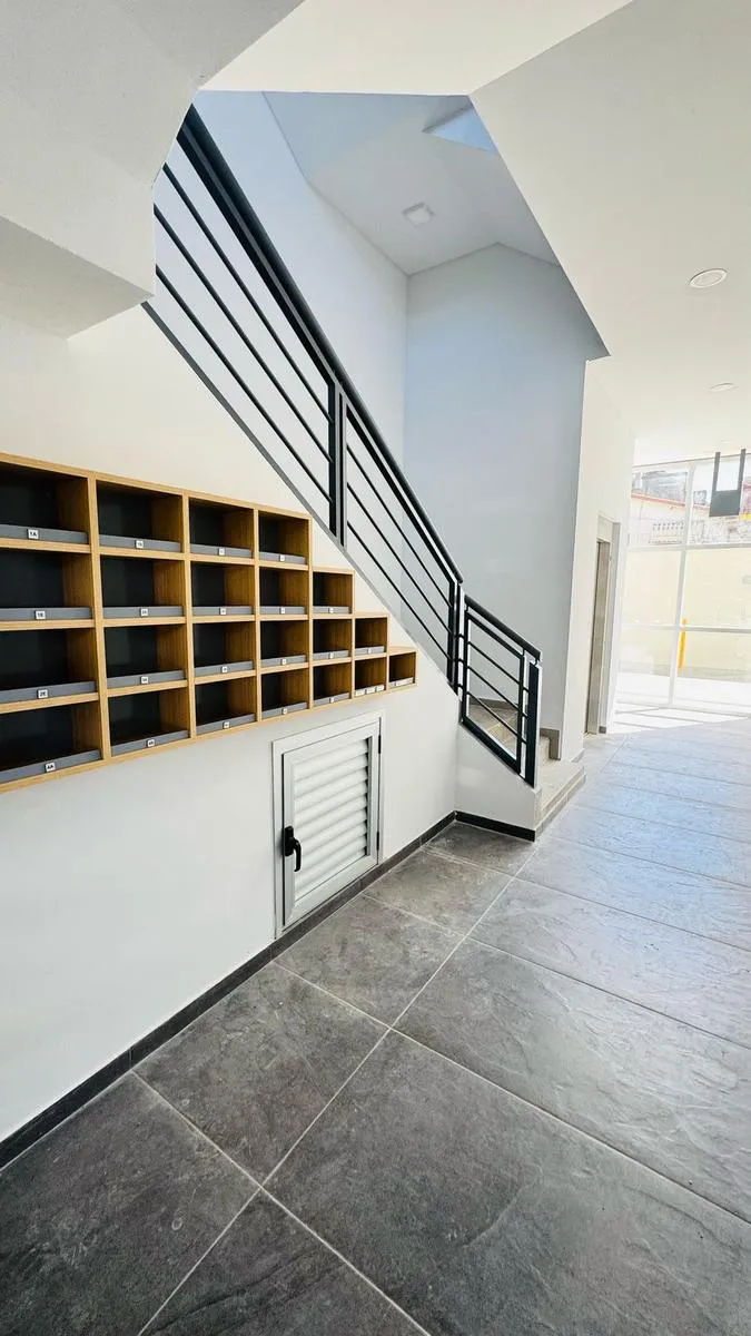 Studio apartment with porcelain-tile floors, street-facing with a balcony. It has split air conditioning and central heating via radiators, as well as a dual-system hot-water tank. The kitchen includes stone countertop, under-counter cabinets, wall cabinets, an extractor hood and a stainless-steel cooking appliance; the bathroom is fitted with an American-style bathtub, shower, vanity and fixtures. The building has 5 floors, an elevator, 24-hour security with a totem system, intercom/visor for e