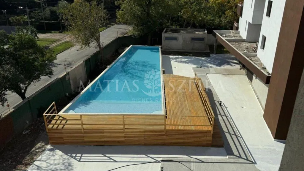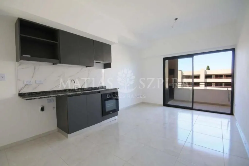New studio apartment in the BE WEST complex, Villa Udaondo, Ituzaingó, with 28 m² covered and 6.65 m² uncovered (34.50 m² total). Main room of 28 m² with integrated kitchen and a full bathroom with bathtub. Integrated electric cooktop and electric oven; terrace balcony of nearly 7 m² with a private grill. Includes building amenities such as a pool, residents’ lounge (SUM), laundry, game room and microcinema, plus WiFi, internet and security with perimeter electrified fencing, monitored cameras,