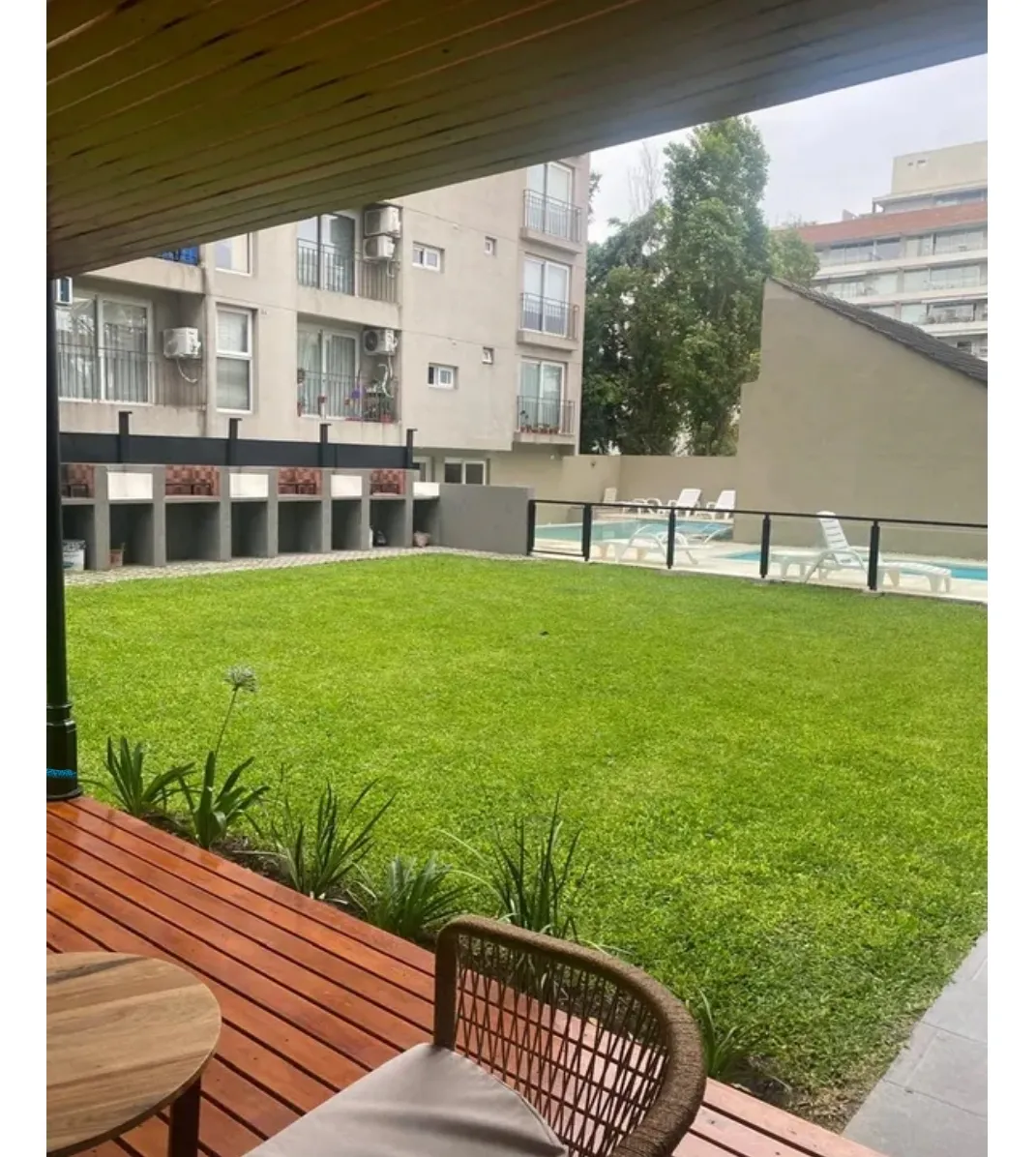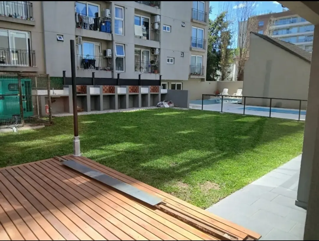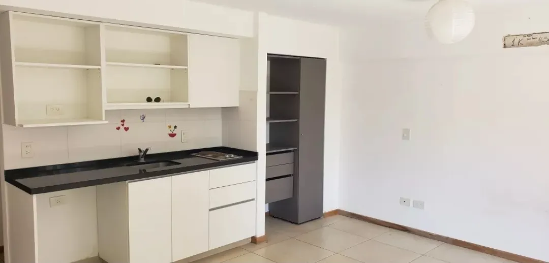 Studio apartment in Ituzaingó Norte, street-facing with a large balcony. Integrated kitchen with pantry and base cabinets, full bathroom with a bathtub, and space for a minibar. The building has a pool with solarium, a residents' communal room with kitchen area, fridge and toilet, children’s play area, green spaces and perimeter walls with 30 cm thickness and air chamber. There is 24-hour private security with an integrated camera system and security staff, entry with magnetic card, double-glaze