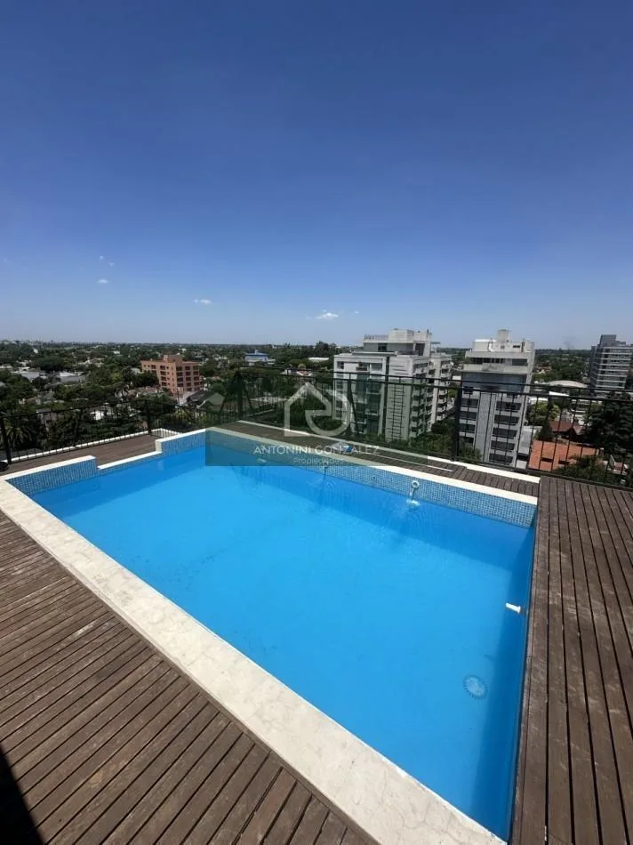 Studio apartment in Gardenias, first-floor, street-facing. Building amenities include security, a communal room (SUM) and a pool. The unit is 100% electric. Rental is for a two-year contract with adjustments every 3 months based on IPC. Rental requirements include a property guarantee or a rental guarantee insurance, plus proof of income (pay slips or documentation of earnings).