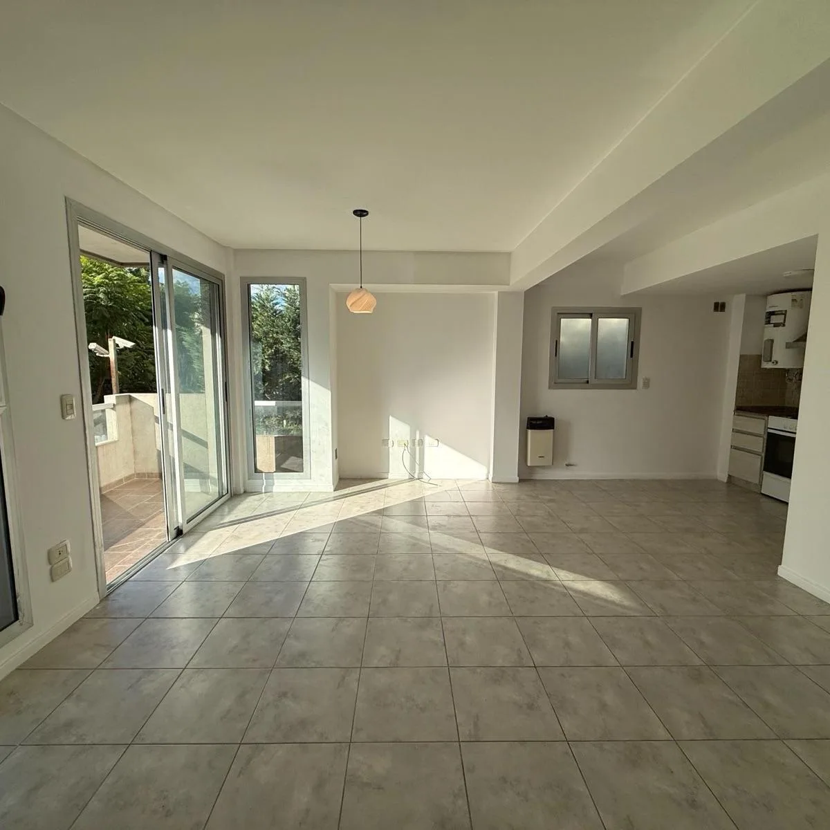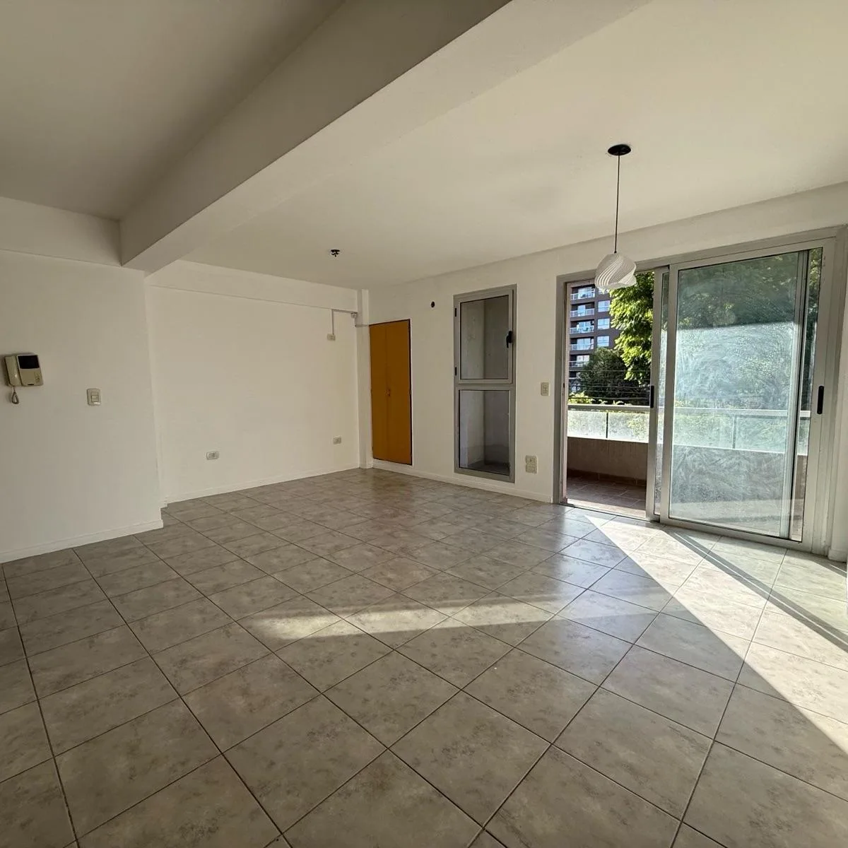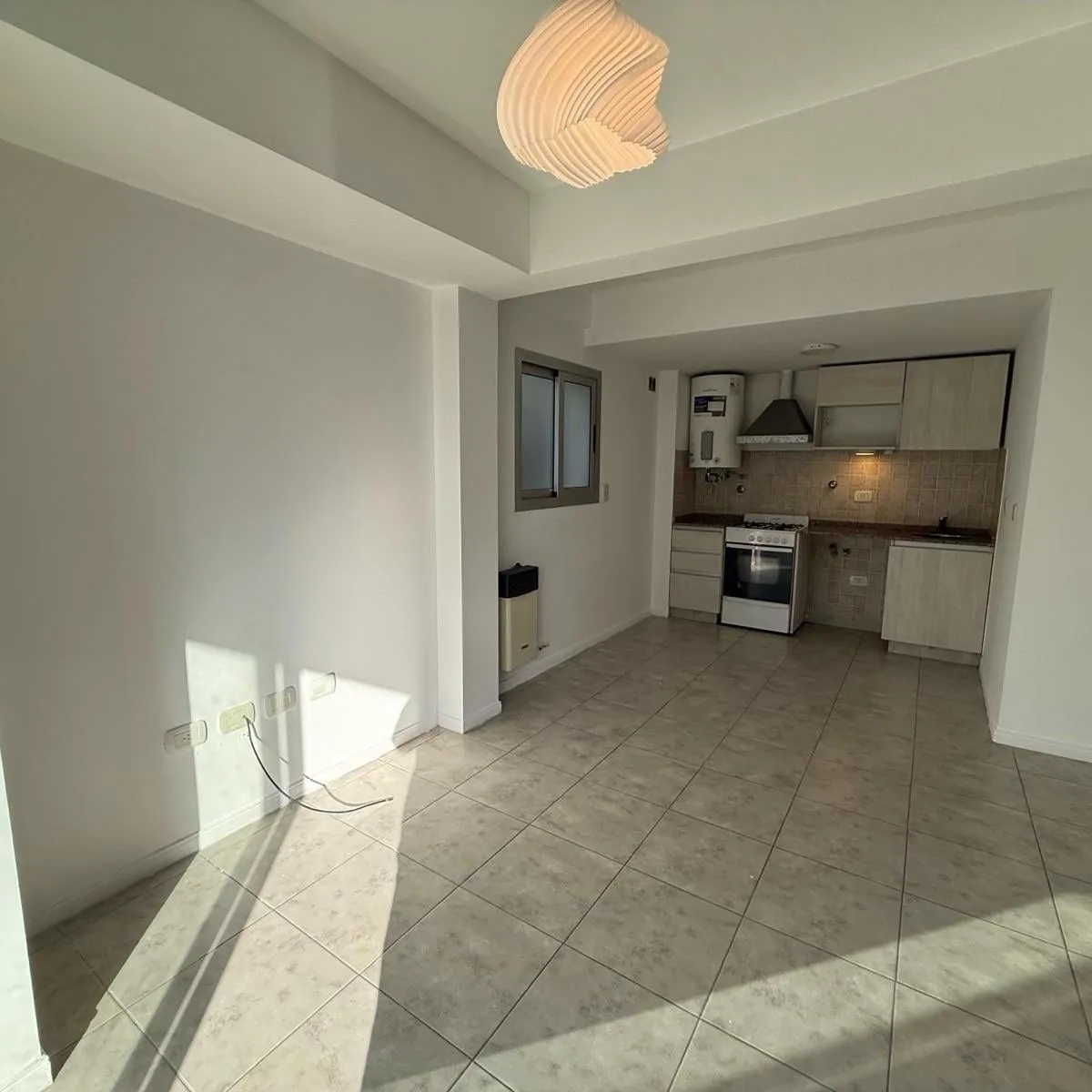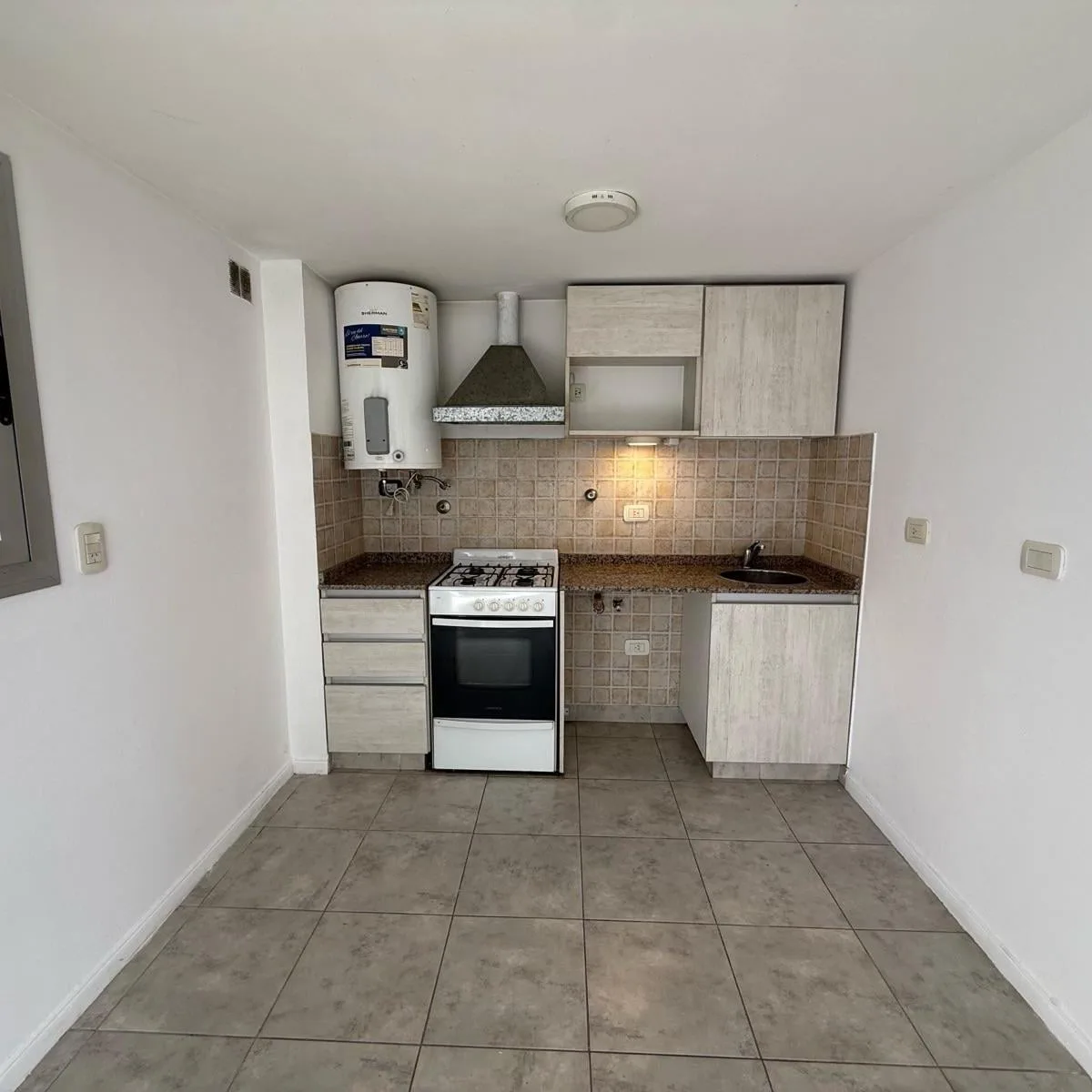 Studio apartment in Ituzaingó Centro with a large balcony. Integrated kitchen, built-in wardrobe, bathroom, and space for a washing machine. The building has a shared roof terrace with an outdoor living area, a grill, and a laundry area, with a doorman. Rent is $470.000 per month; building fees are approximately $115.000, and municipal taxes are not charged. A two-year lease applies with rent increases every four months based on IPC.