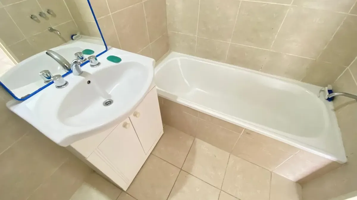 Studio apartment on the 13th floor, courtyard-facing, in La Boca. Separate kitchen with storage space and a full bathroom. Front balcony. Electric heating. Rental contract for 24 months with quarterly increases based on ICL. Building fees and utilities are not specified. No pets allowed.