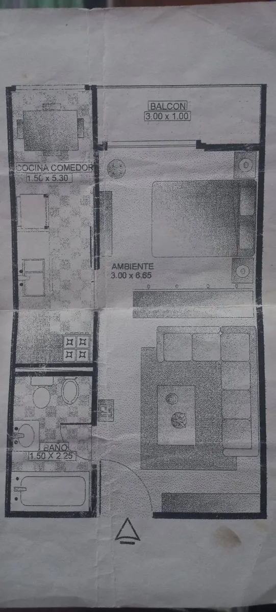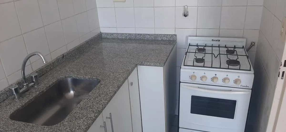 Studio apartment of 36 m² on Av. Almirante Brown in La Boca, on the 6th floor with panoramic views. The unit includes a main room, kitchen with space for daily dining, a balcony, and a full bathroom. Rental terms stated: 1 month’s rent in advance, 1 month’s rent as a deposit, and a rental guarantee bond.