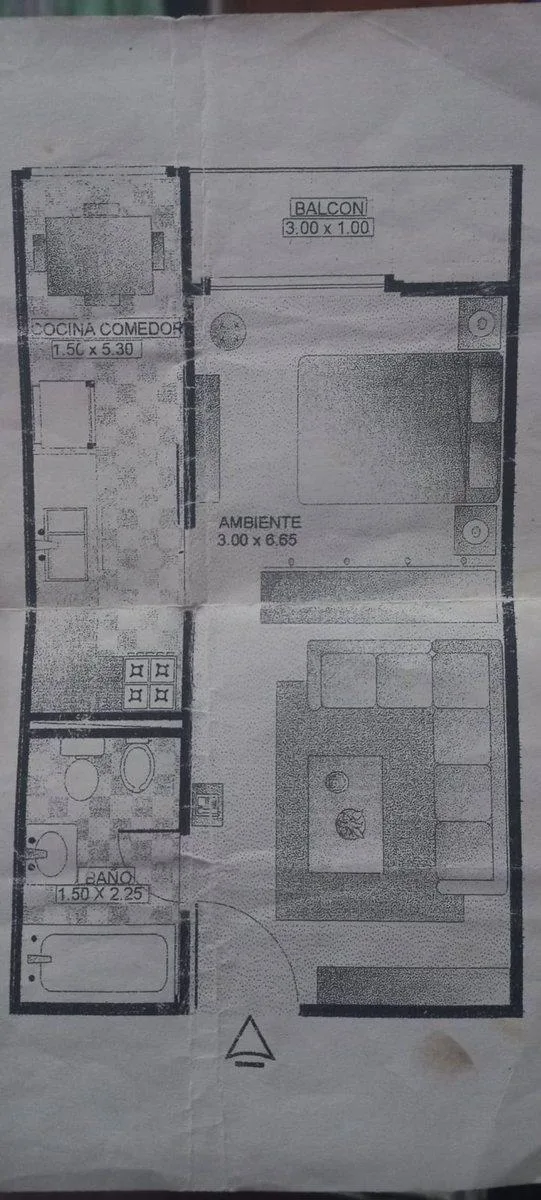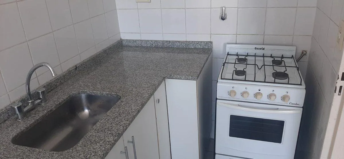 Studio apartment for rent with a balcony, 36 m², on the 6th floor in La Boca. Main room with a kitchen area that includes space for a daily dining table and a full bathroom. Street-facing on Av. Almirante Brown with panoramic views of the surrounding urban area.