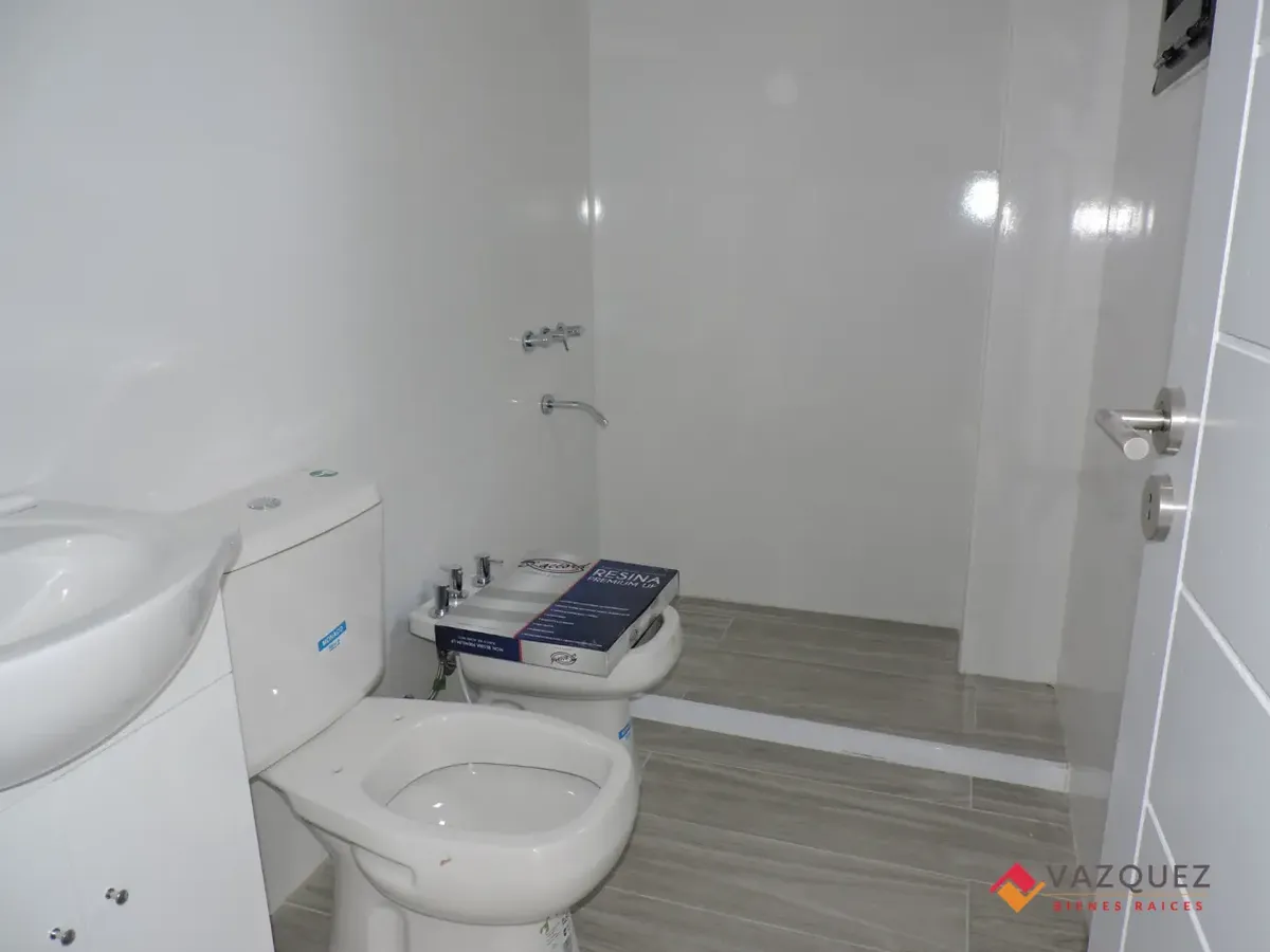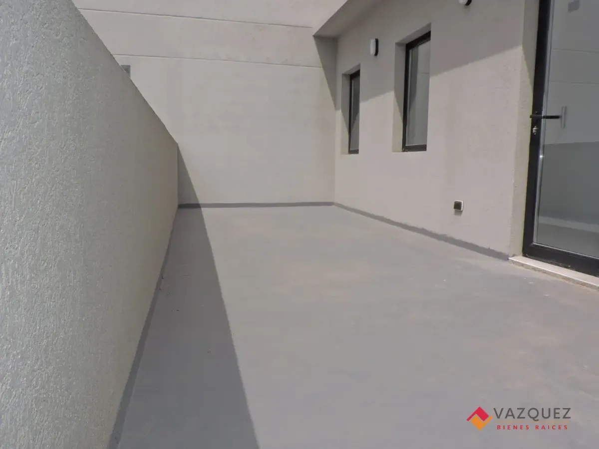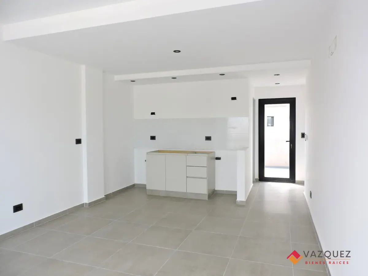 New studio apartment at the rear of the building (contrafrente) in the centre of San Justo, La Matanza. It has a single combined living/sleeping room with an integrated kitchen and a bathroom. The apartment includes private terrace access, double-glazed windows (DVH), radiant floor heating (loza radiante), and pre-installation for air conditioning in all rooms; it is fully electric. Covered or uncovered parking is available as an option.